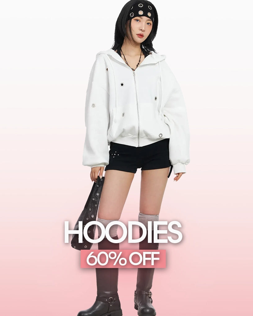 NEW 🤍 60% OFF: HEARTSlim-Fit Gromment Detail Hoodie CJ523