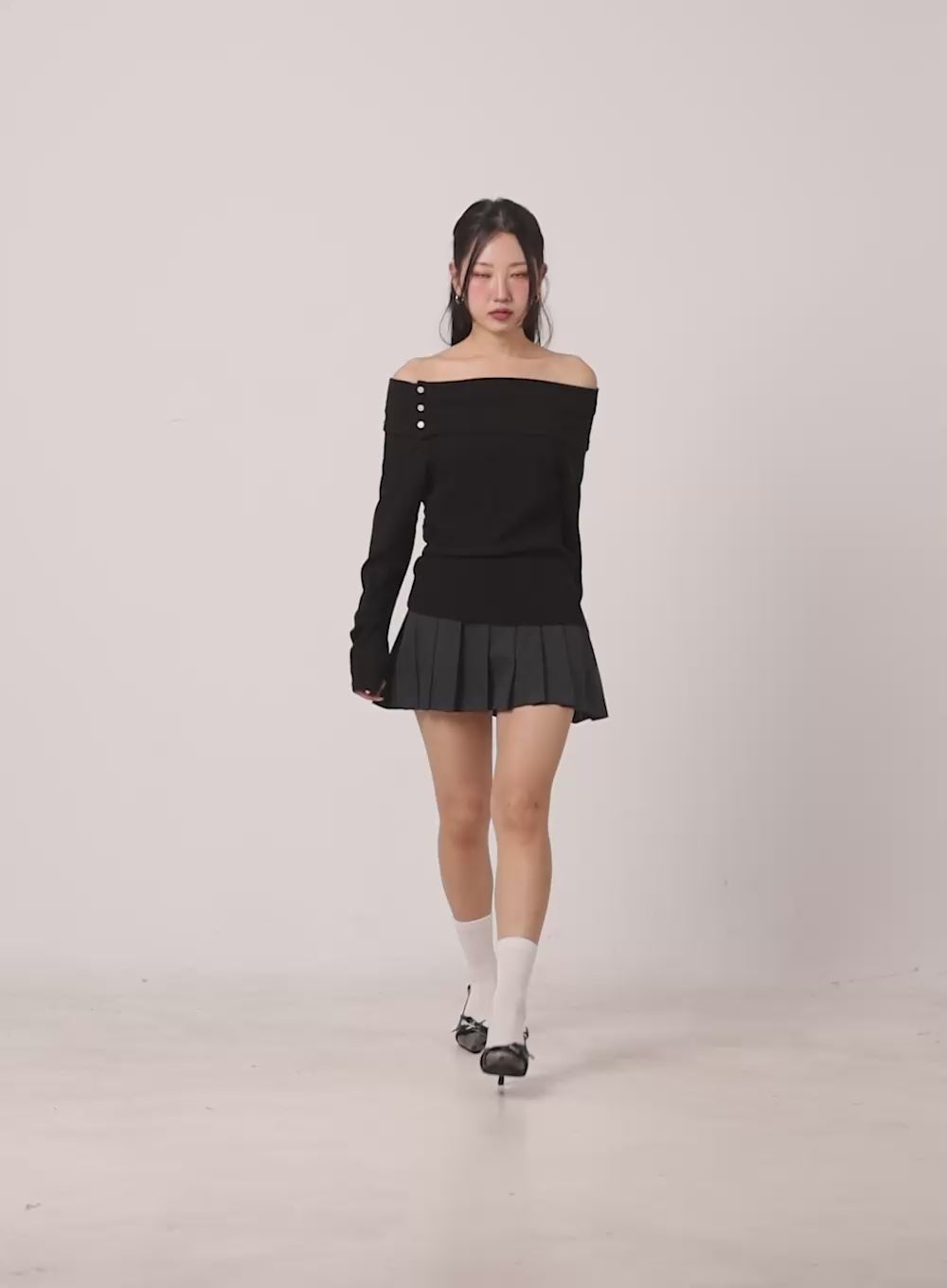 Snow white off-shoulder sweater radiates delicate charm with its ribbon accents, giving a subtle nod to coquette styling.