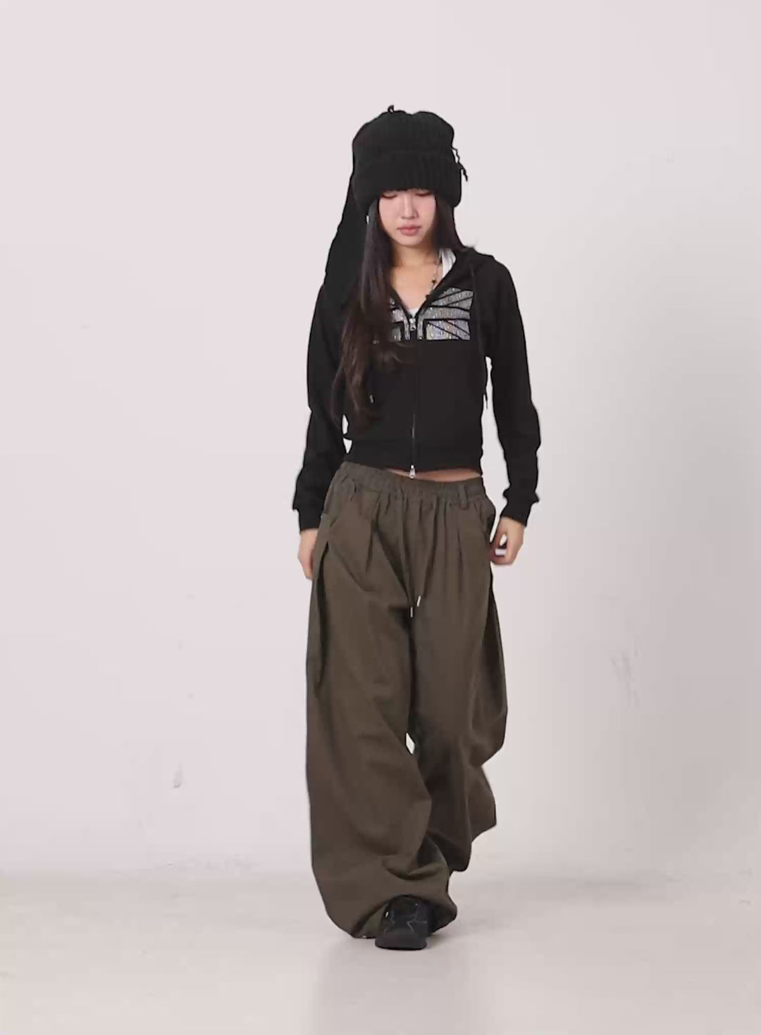 pigment-cargo-wide-leg-pants-cn506 / Black