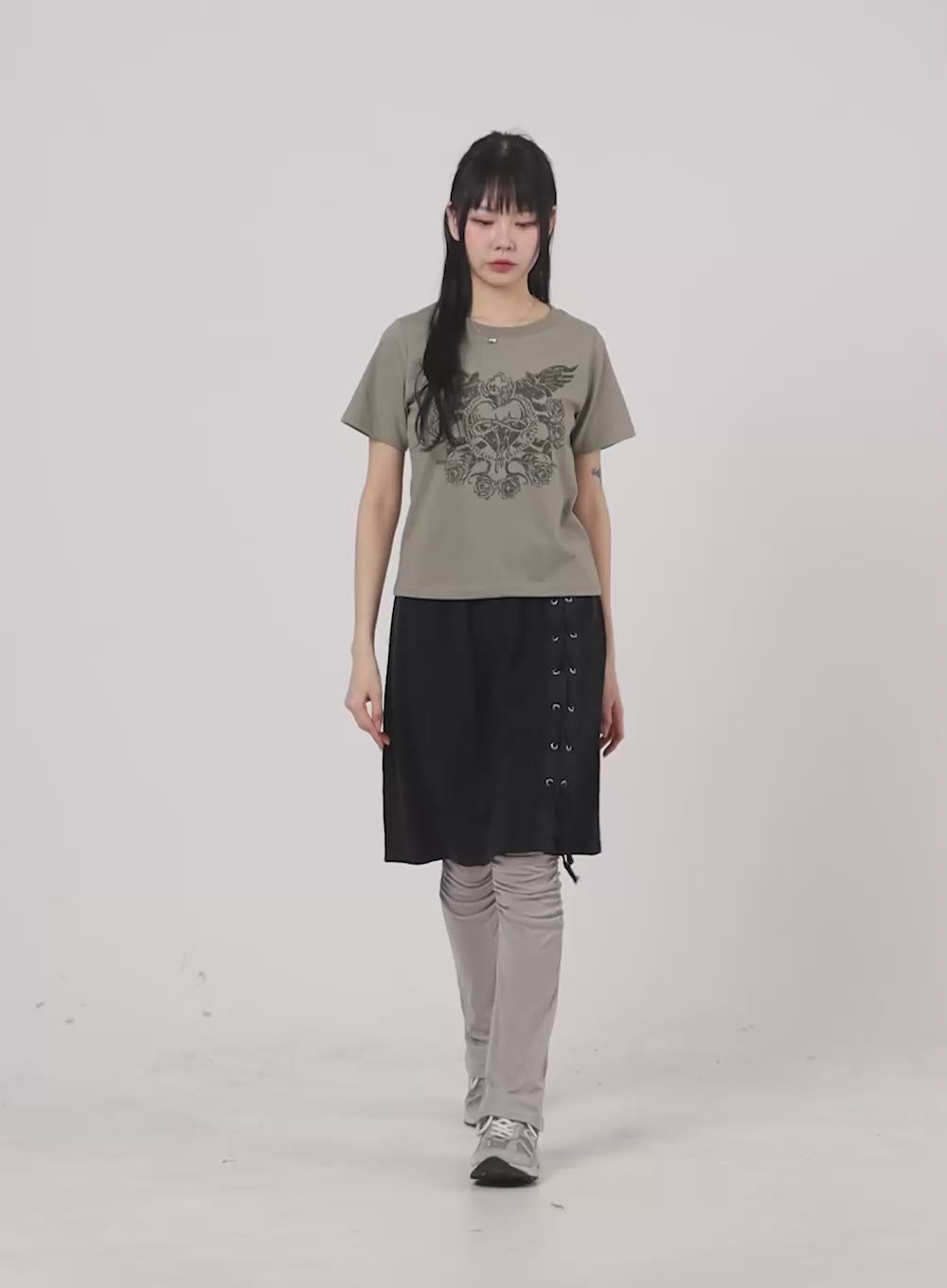 strap-midi-skirt-ca404 / Dark gray