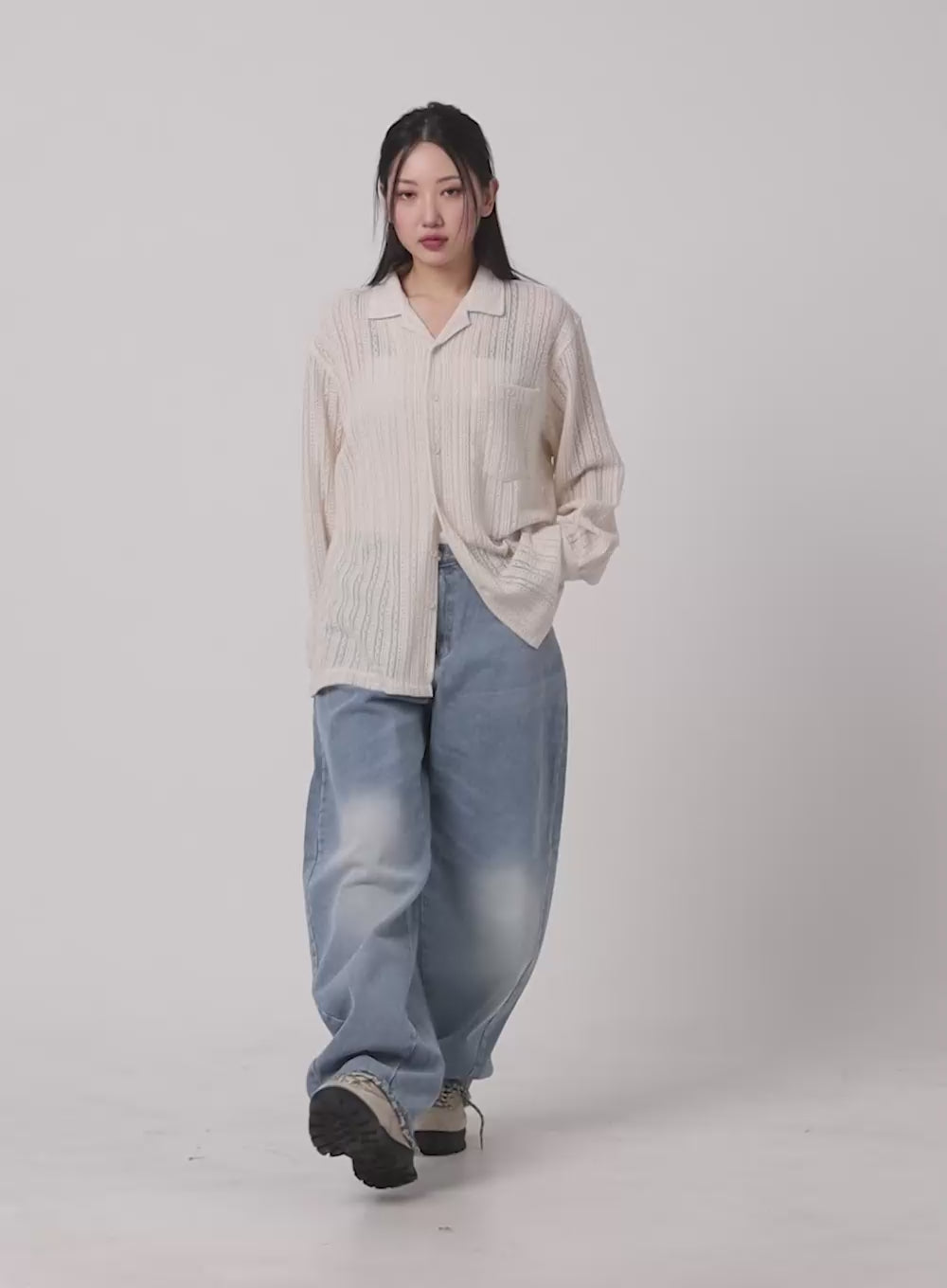 wavy-button-up-cardigan-cm429 / Light beige