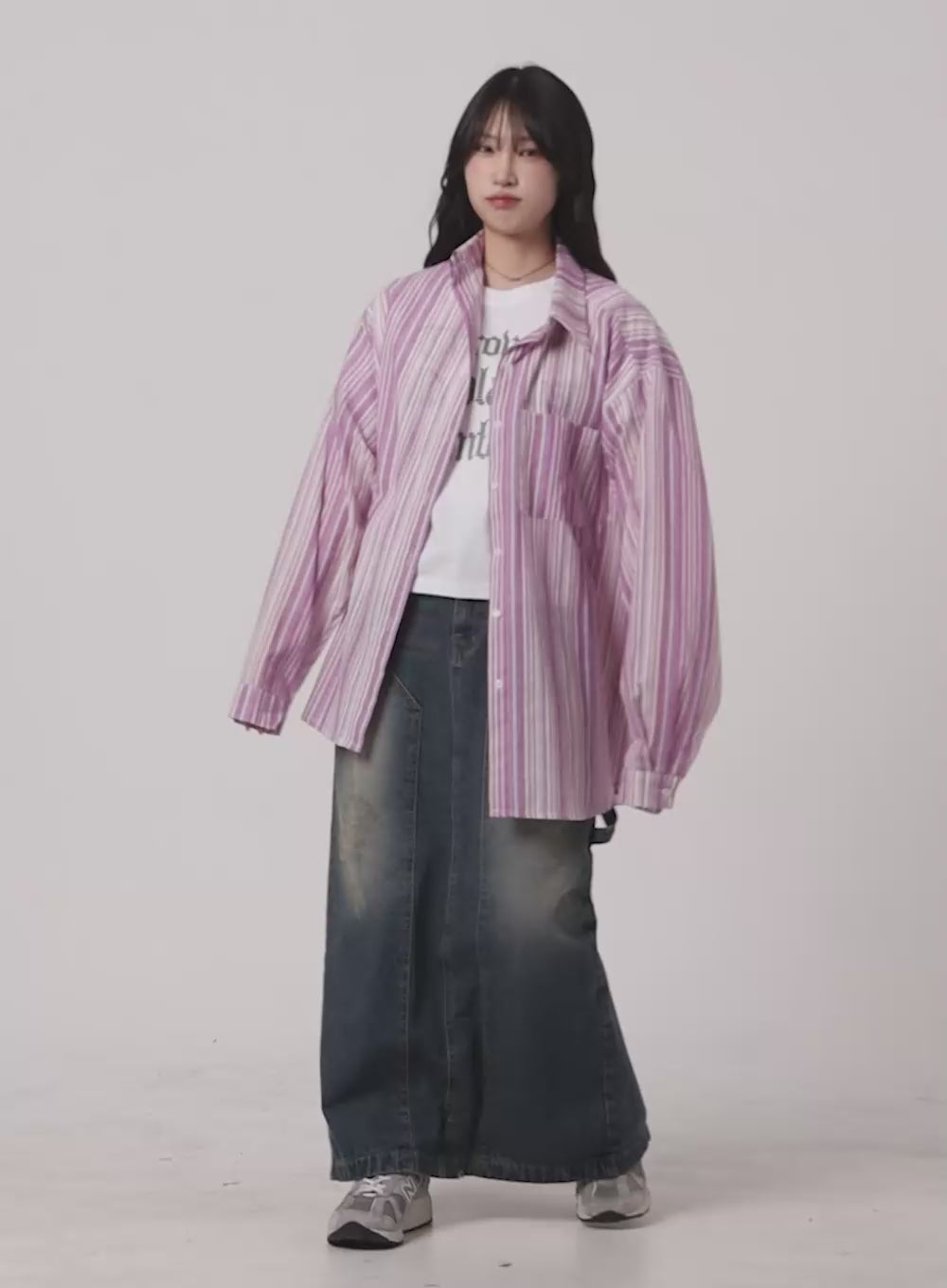 oversized-stripe-cotton-shirt-ca408 / Purple