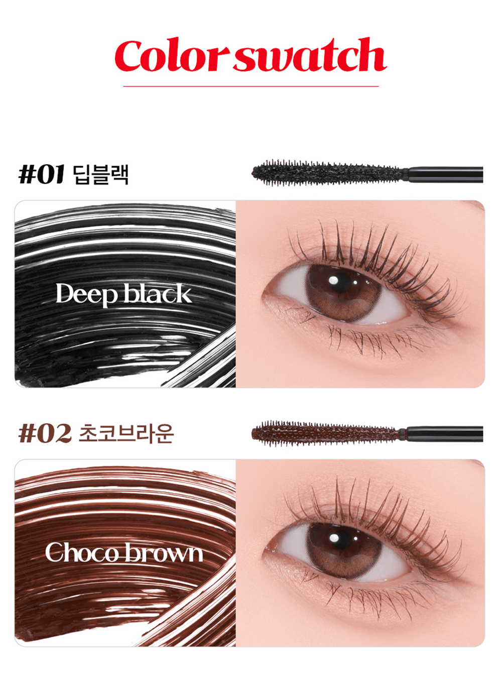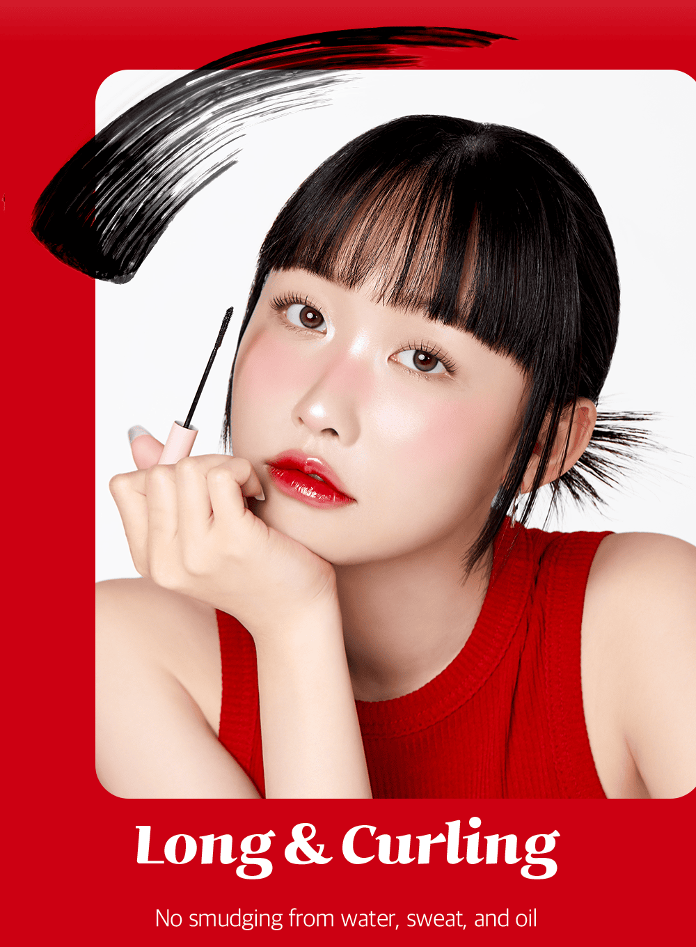 Long & curling skinny mascara with smudge-proof, all-day wear.