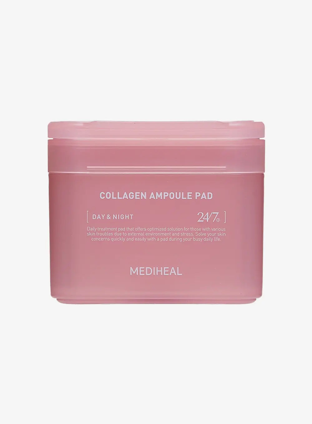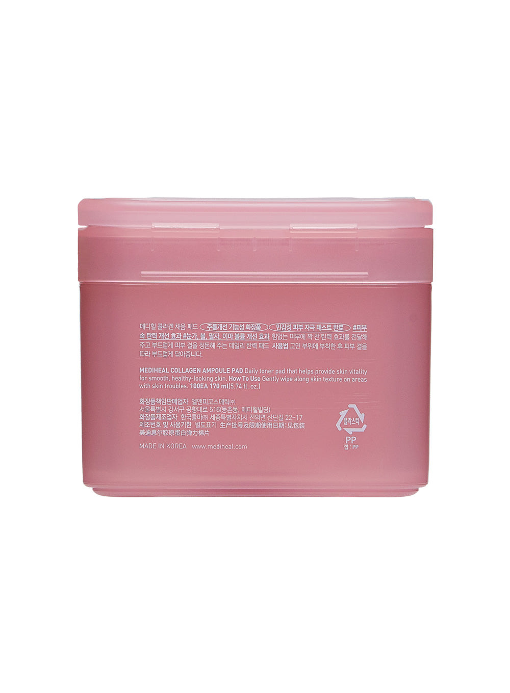 - Enriched with natural ingredients like Collagen, Ceramide, and Milk Protein, Mediheal Collagen Ampoule Pad helps improve skin depression in various facial areas, including the eye area, cheeks, smile lines, and forehead.