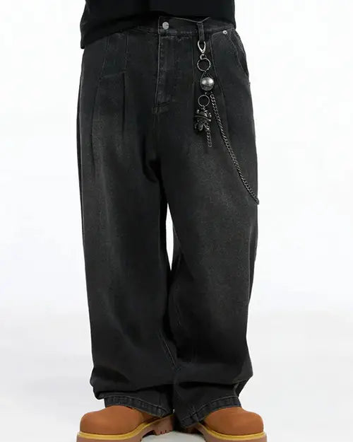 NEWMen's Smoky Faded Wide Denim Jeans IO517