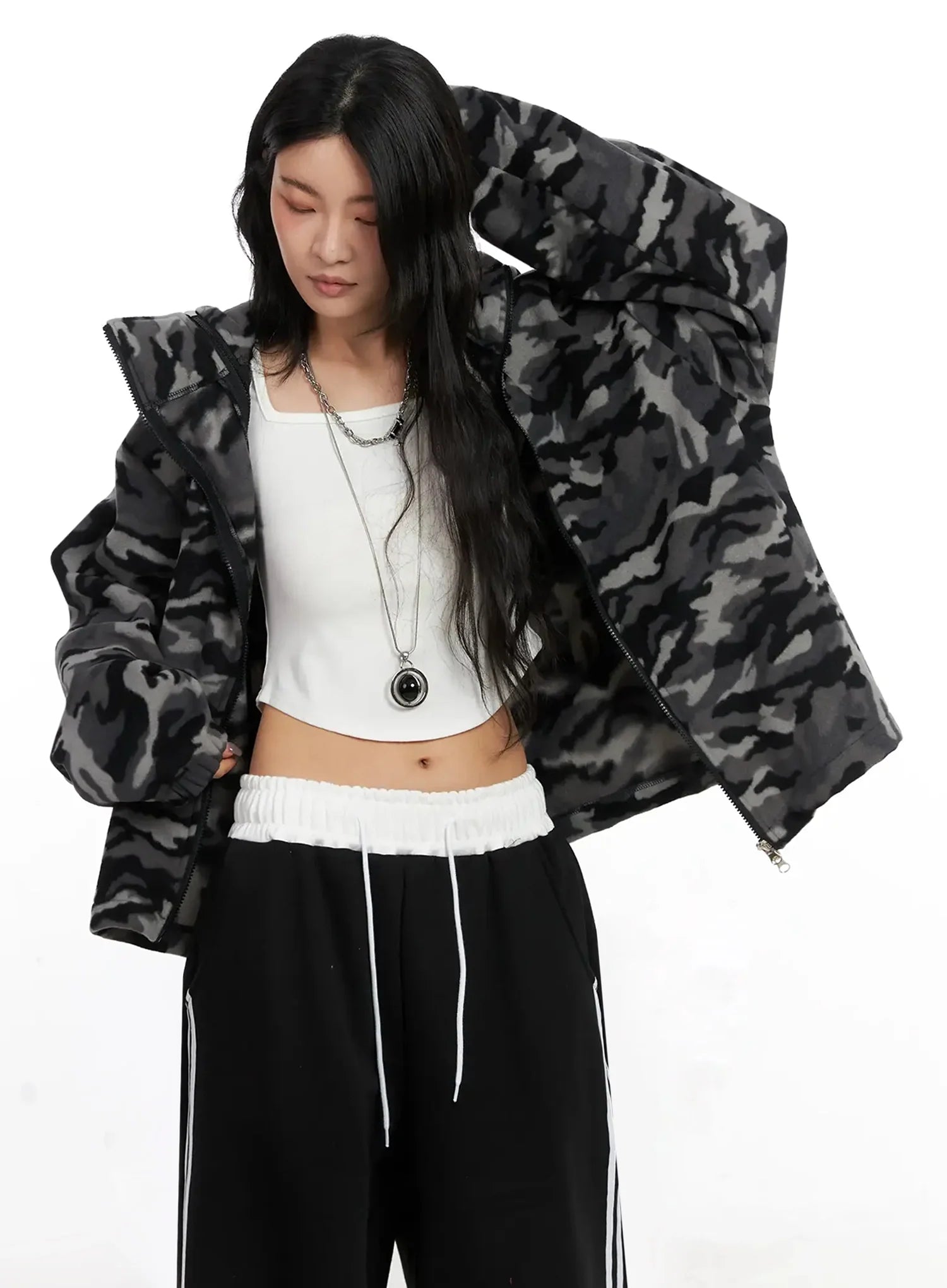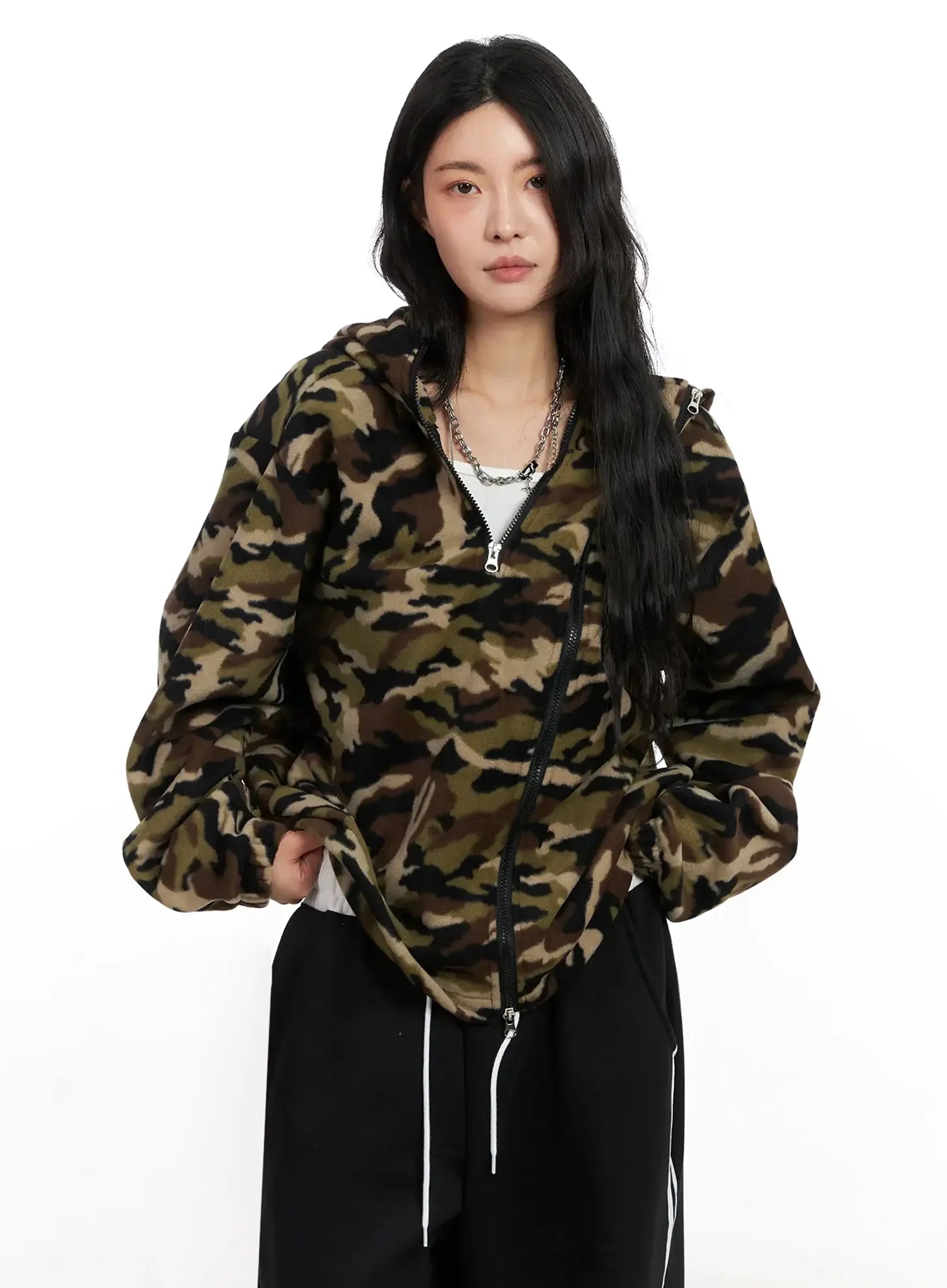 Abstract Print Double-Zip Fleece Hoodie IN528
