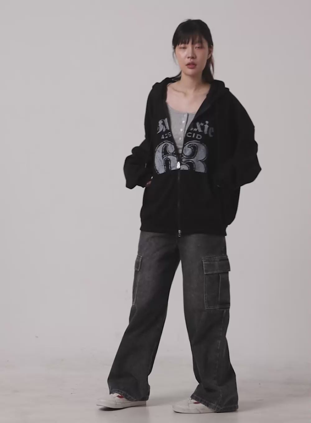 Acubi Graphic Oversized Zip-Up Hoodie IY410