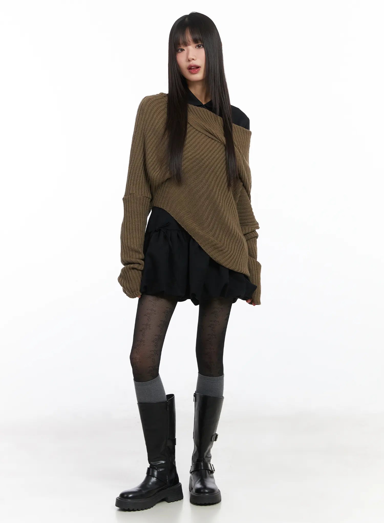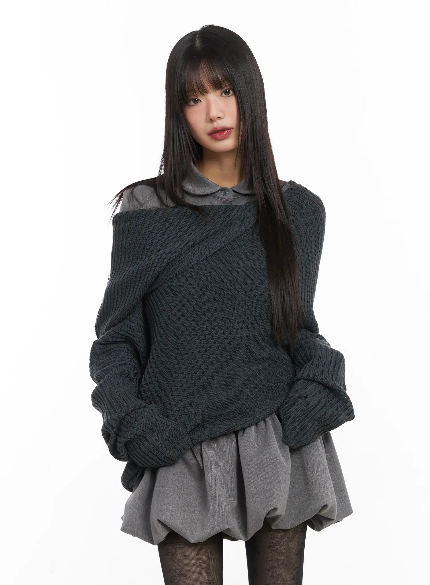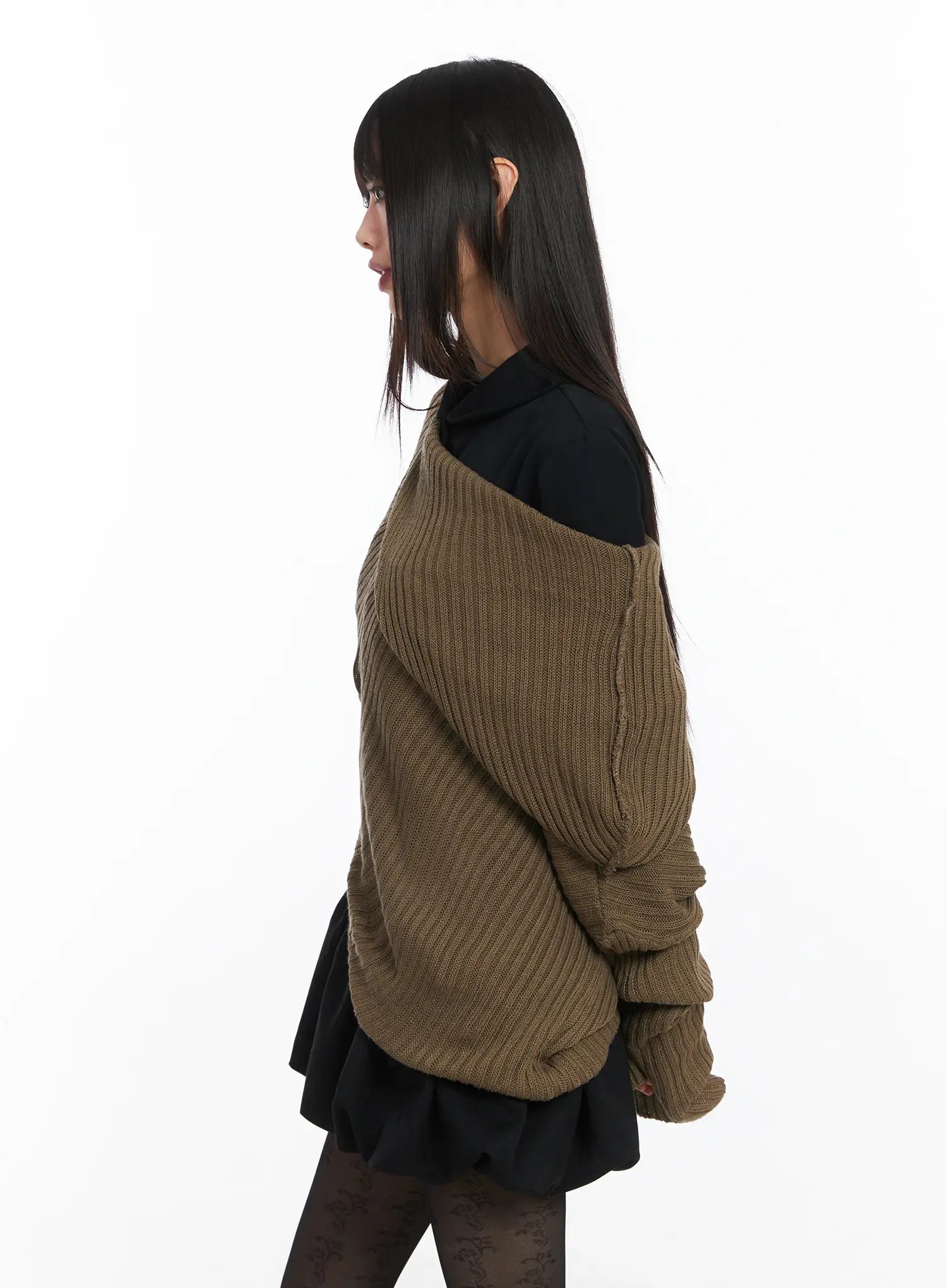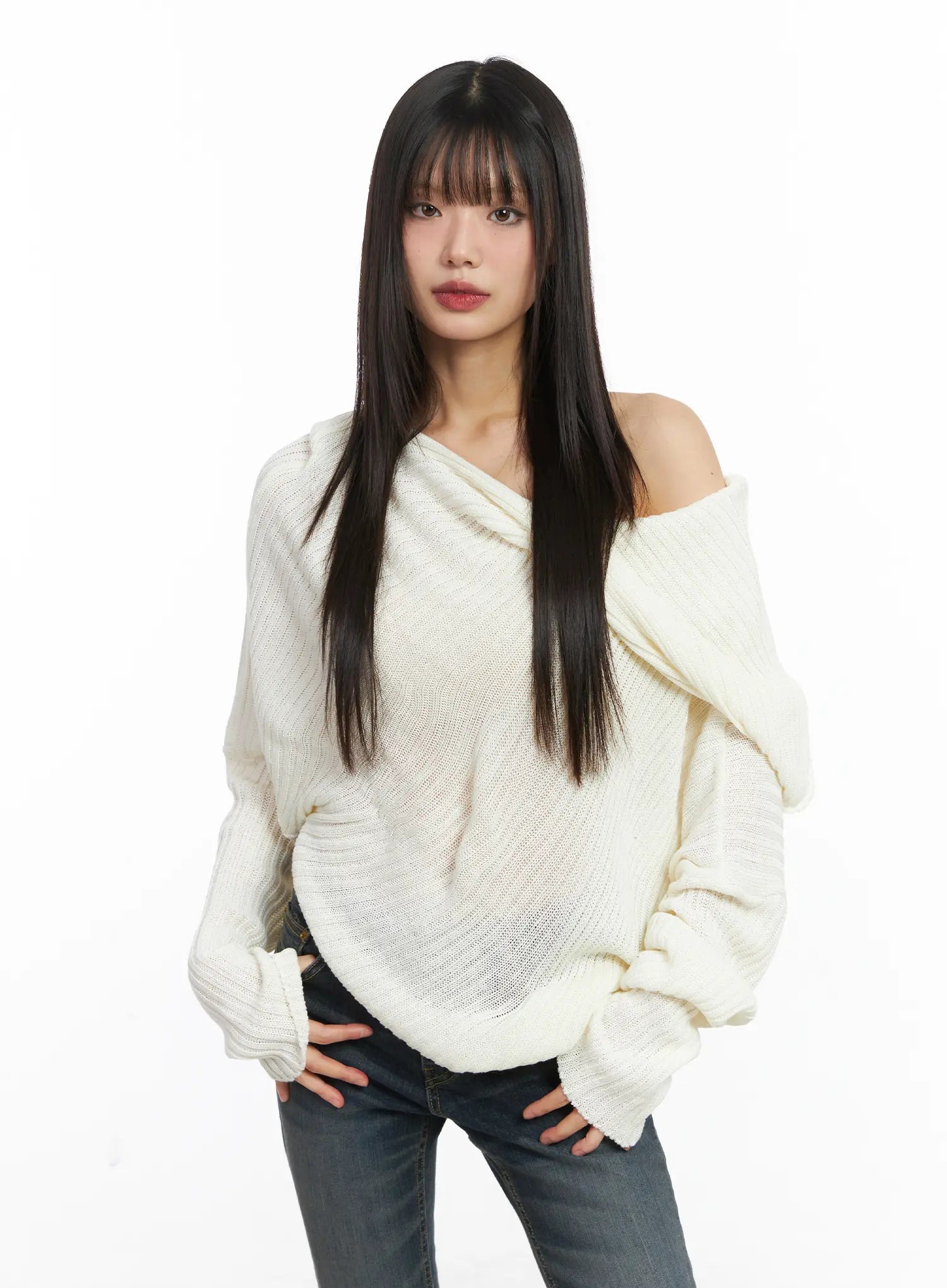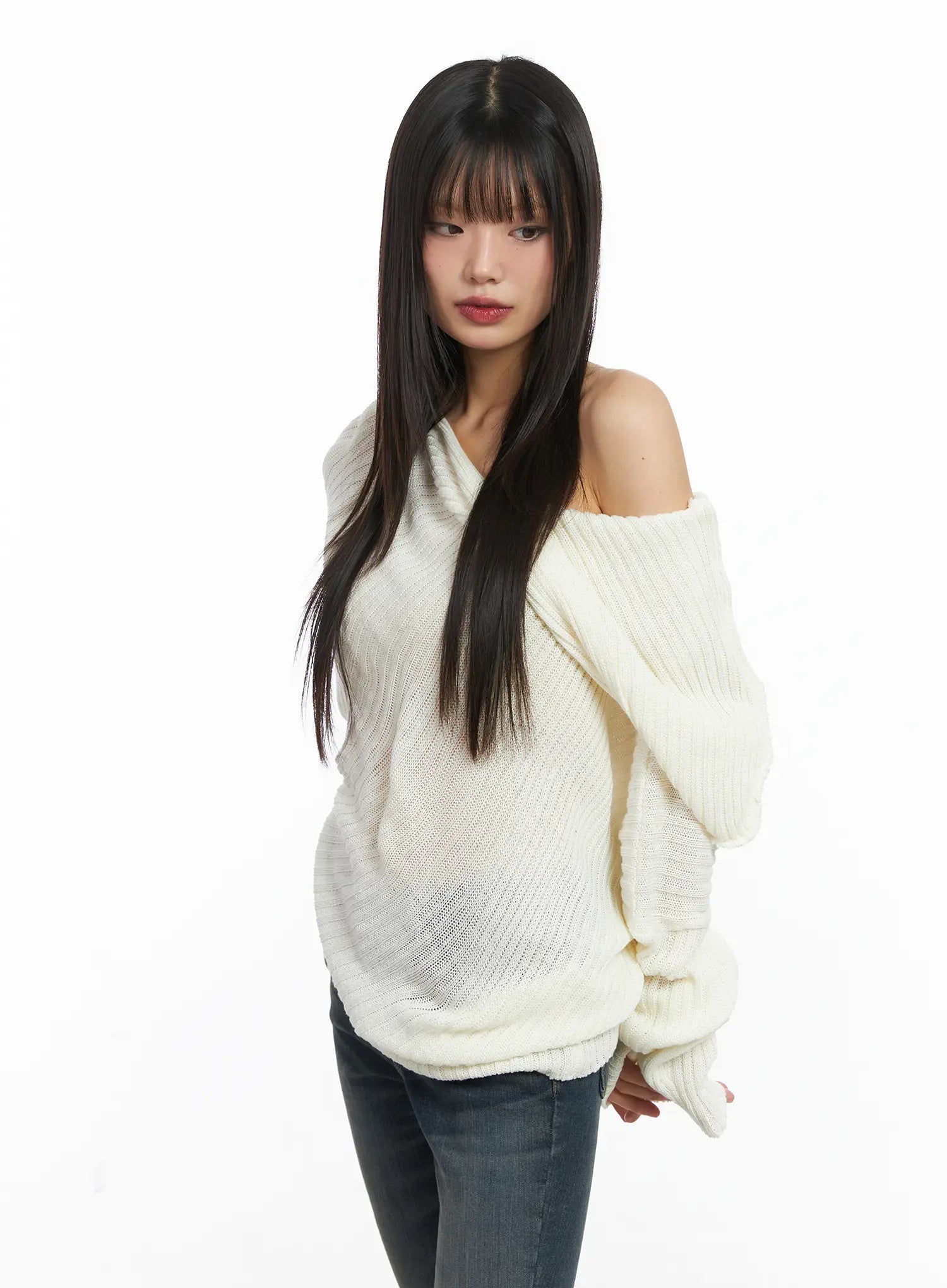 Asymmetric Off-Shoulder Knit Top CD518