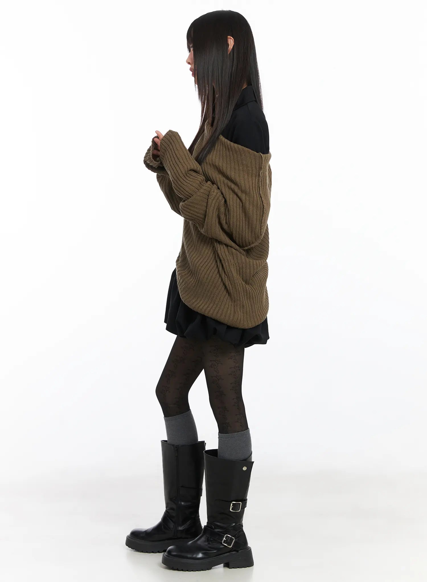 Model is wearing size M/L and the color Dark beige.
