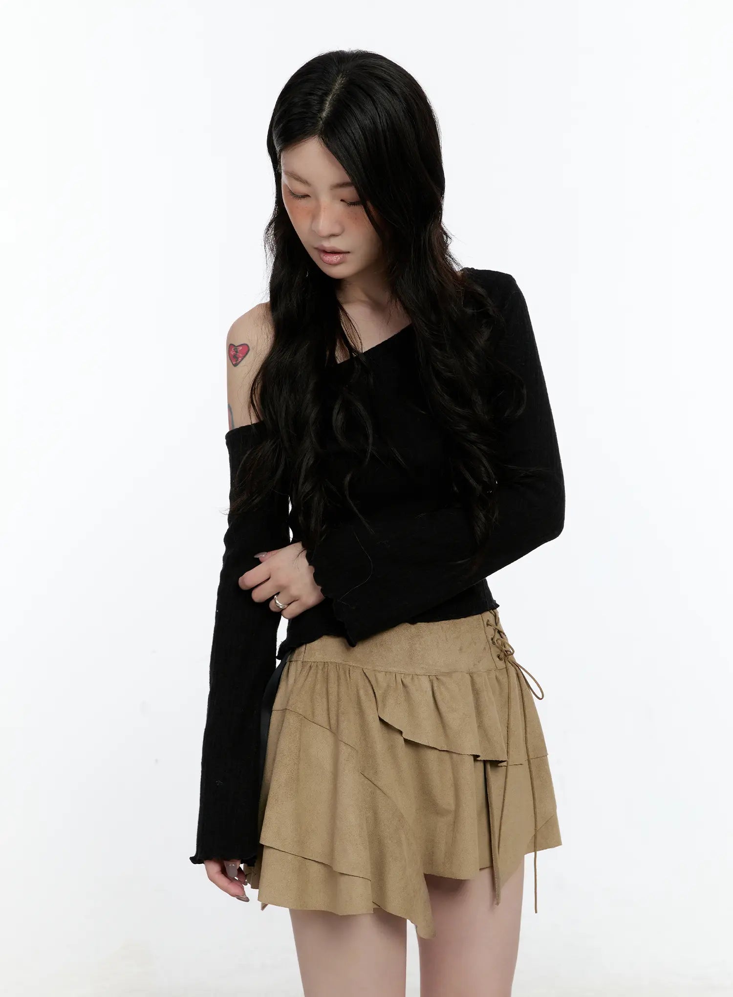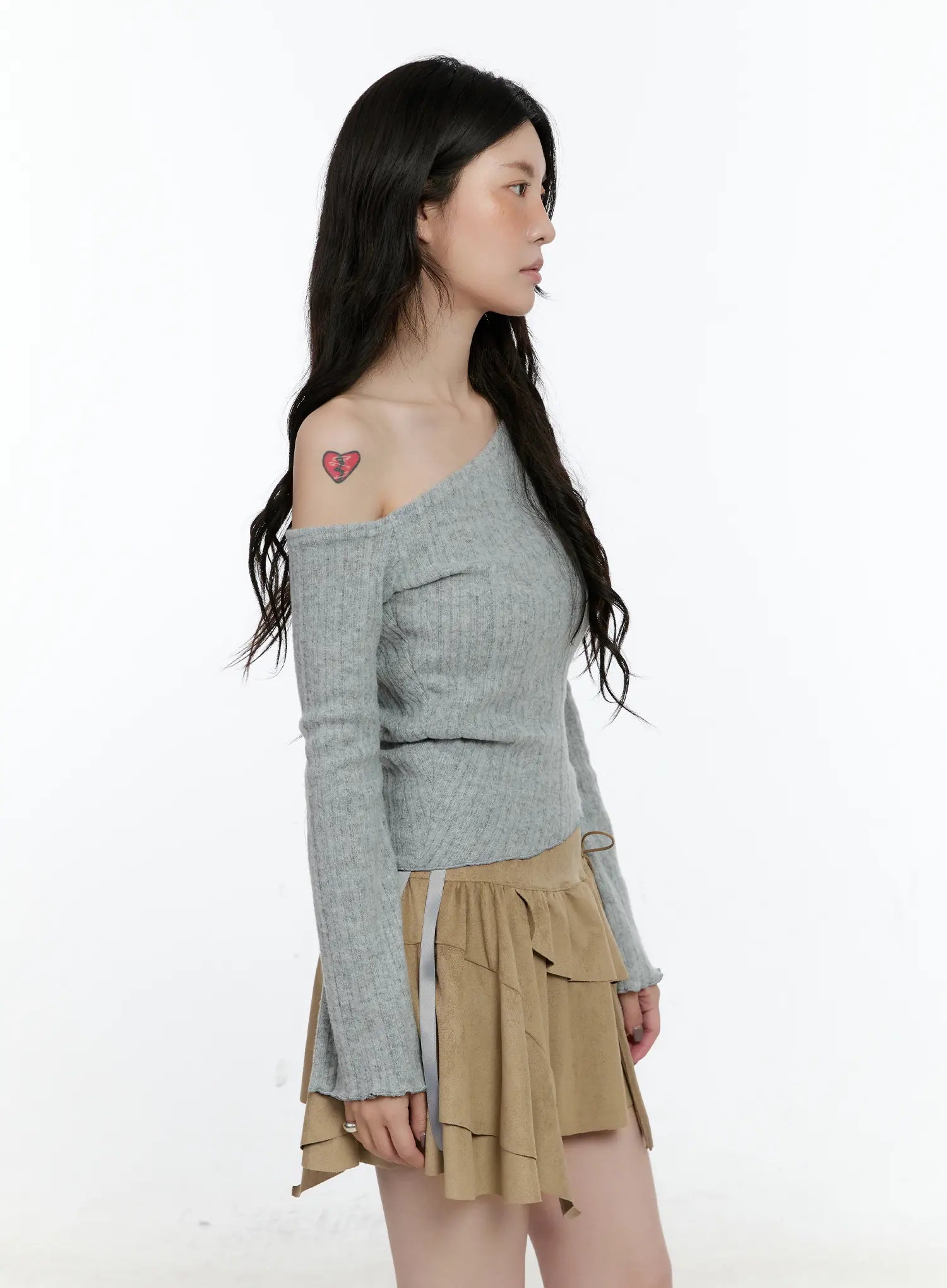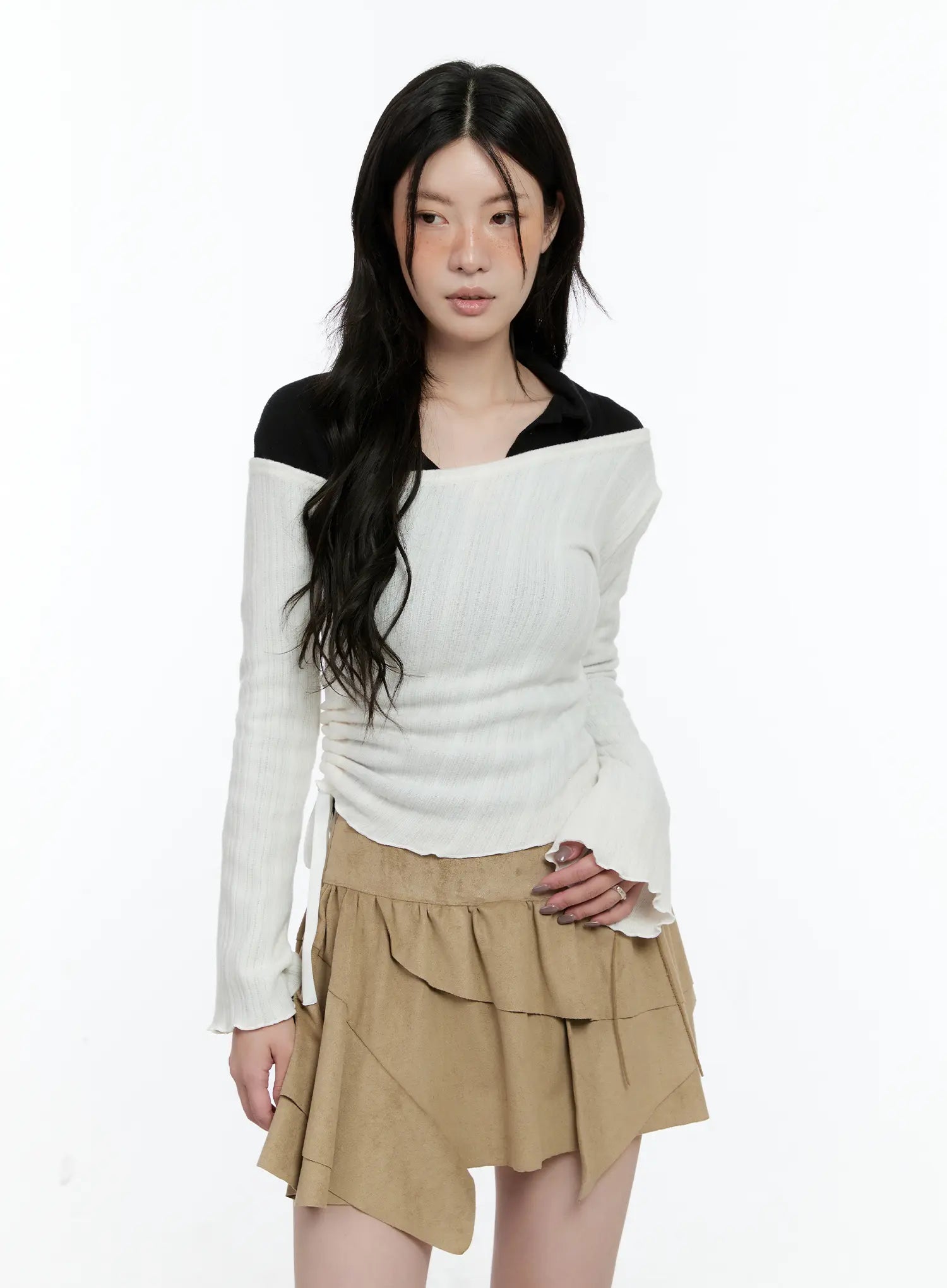 Asymmetric Ribbed Knit Long Sleeve Top CN517