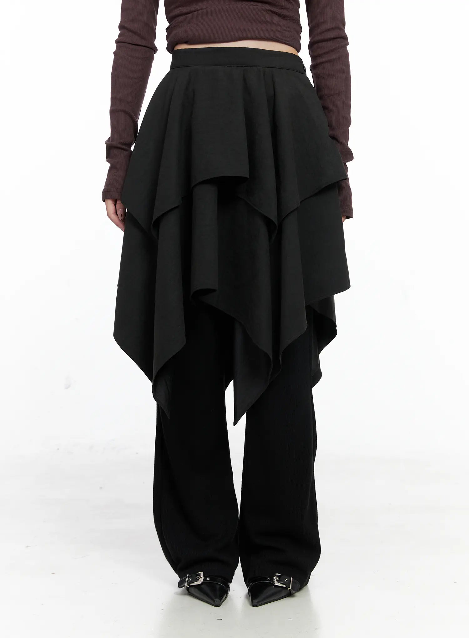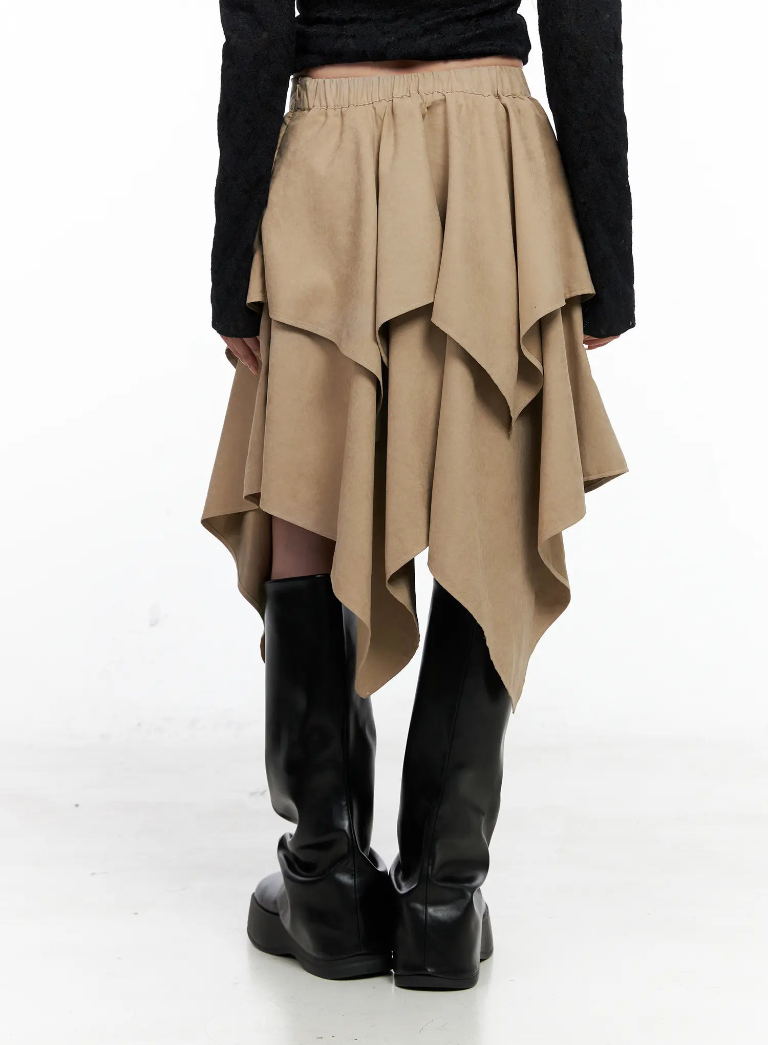 Asymmetric Suede Ruffle Midi Skirt CO521