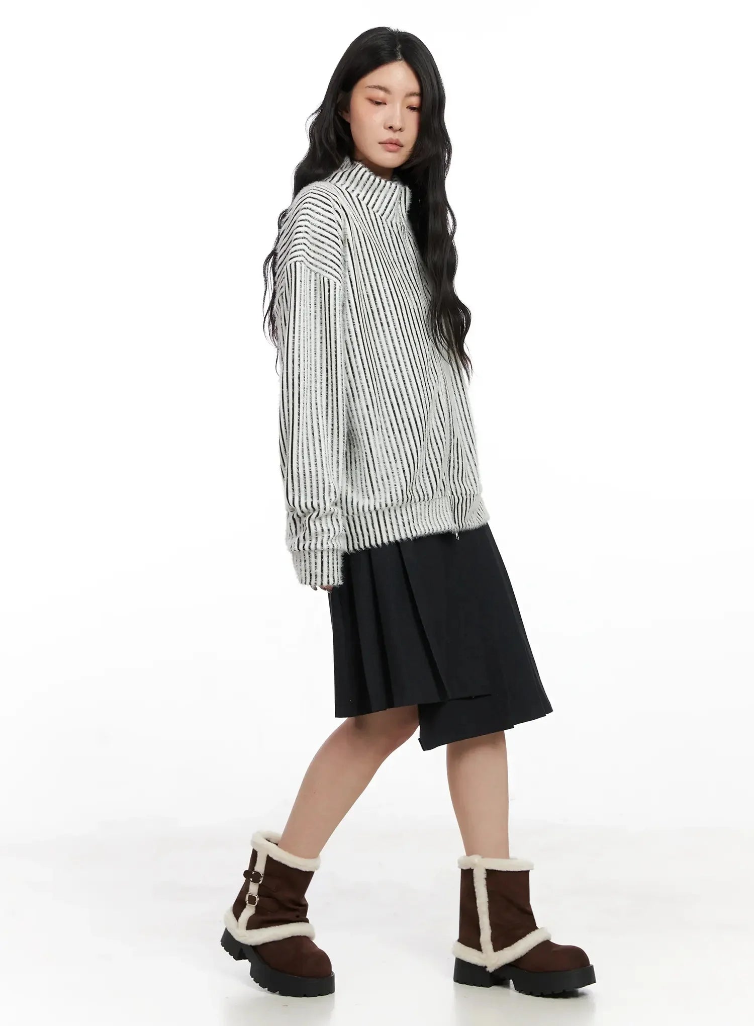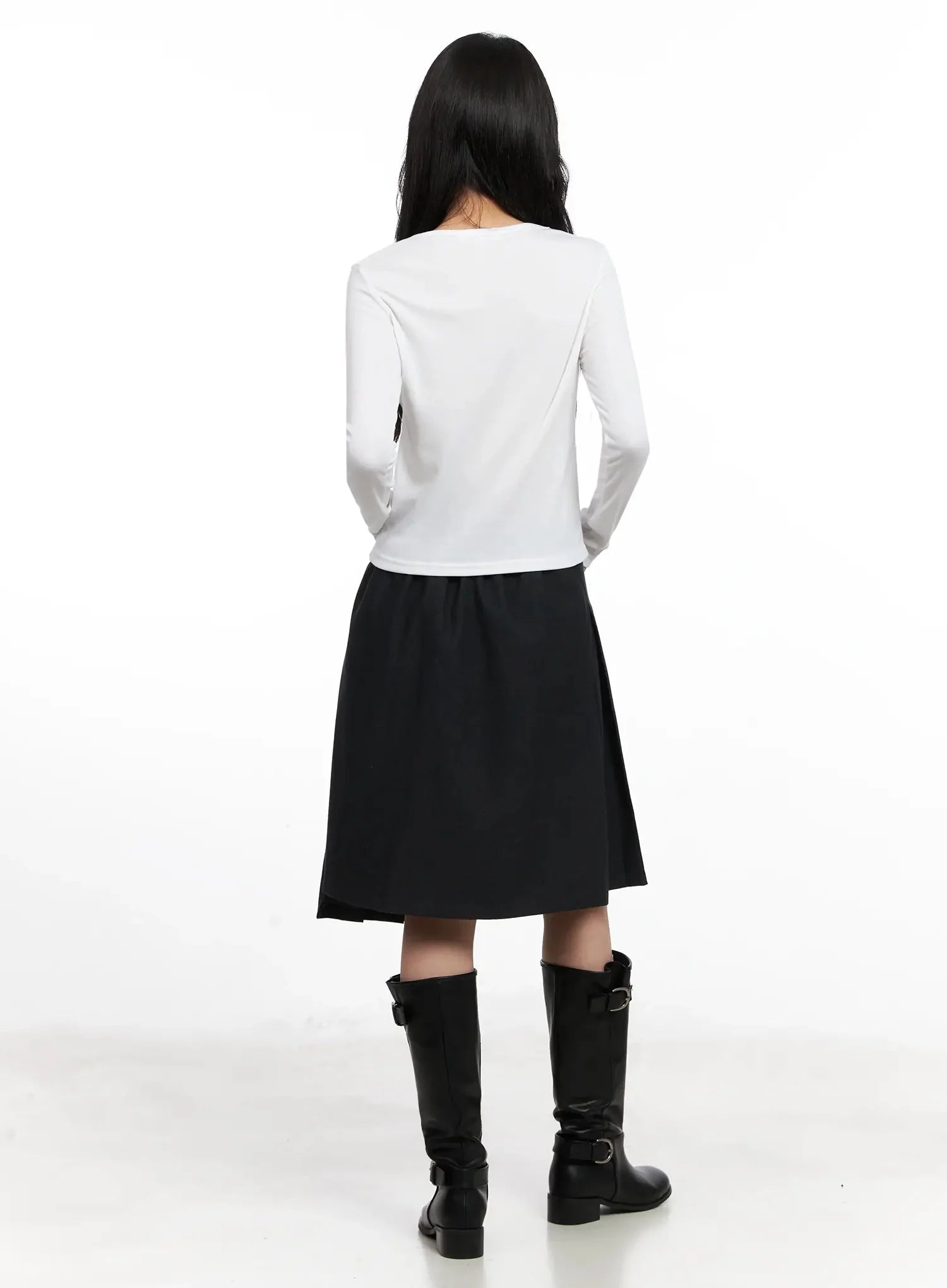 Asymmetrical Pleated Midi Skirt IN528