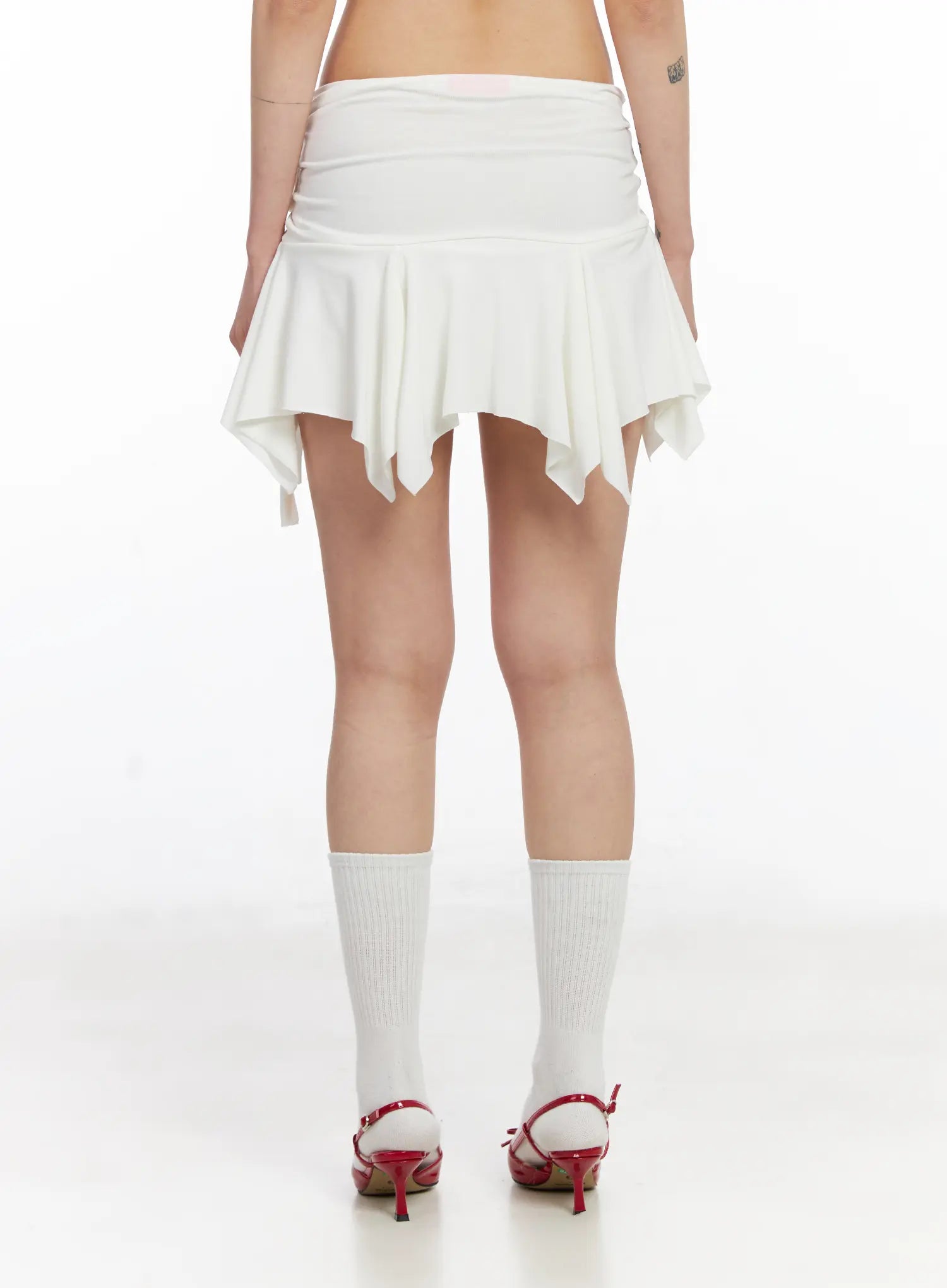 Asymmetrical Ruched Flared Mini Skirt CJ522