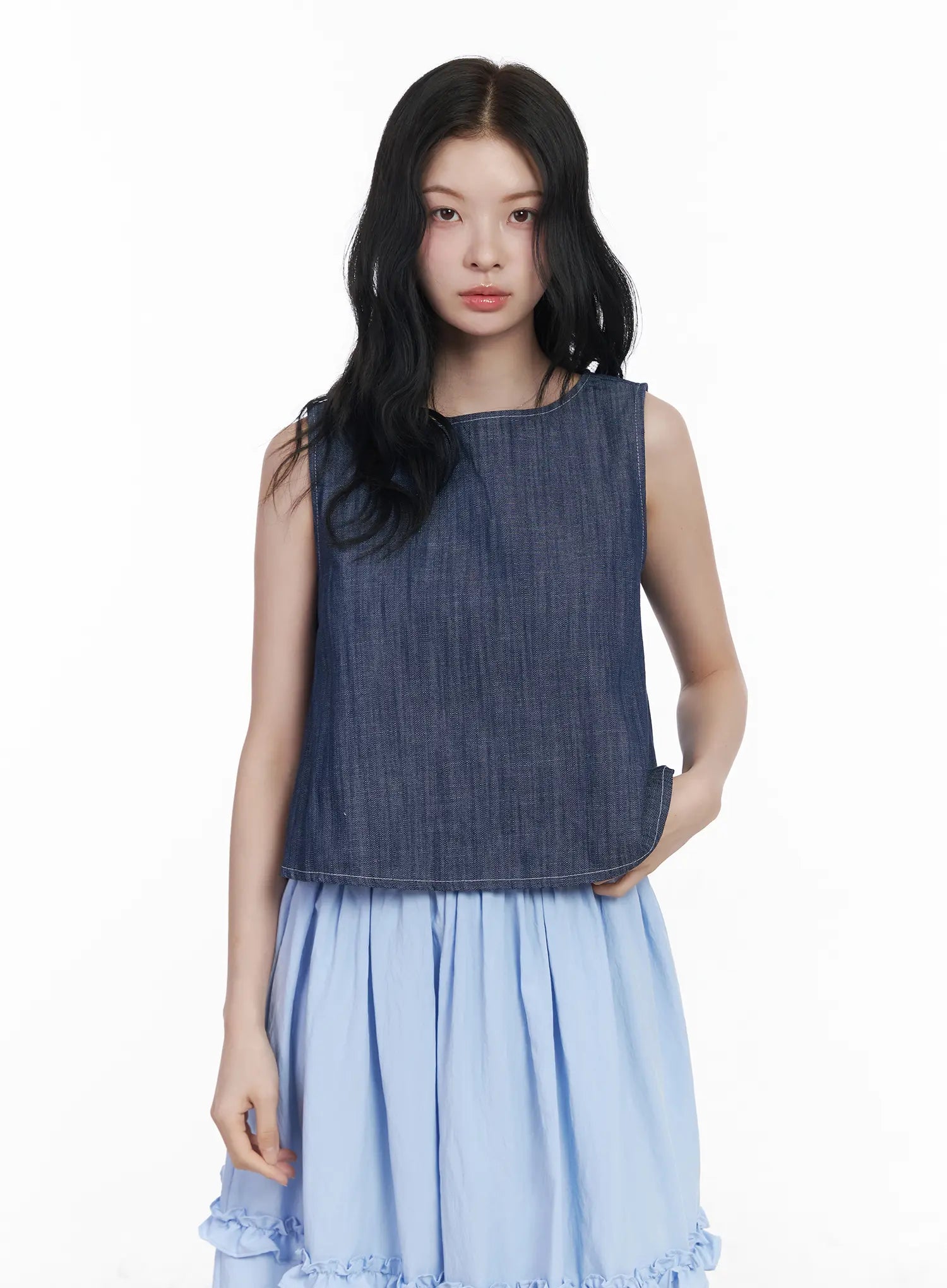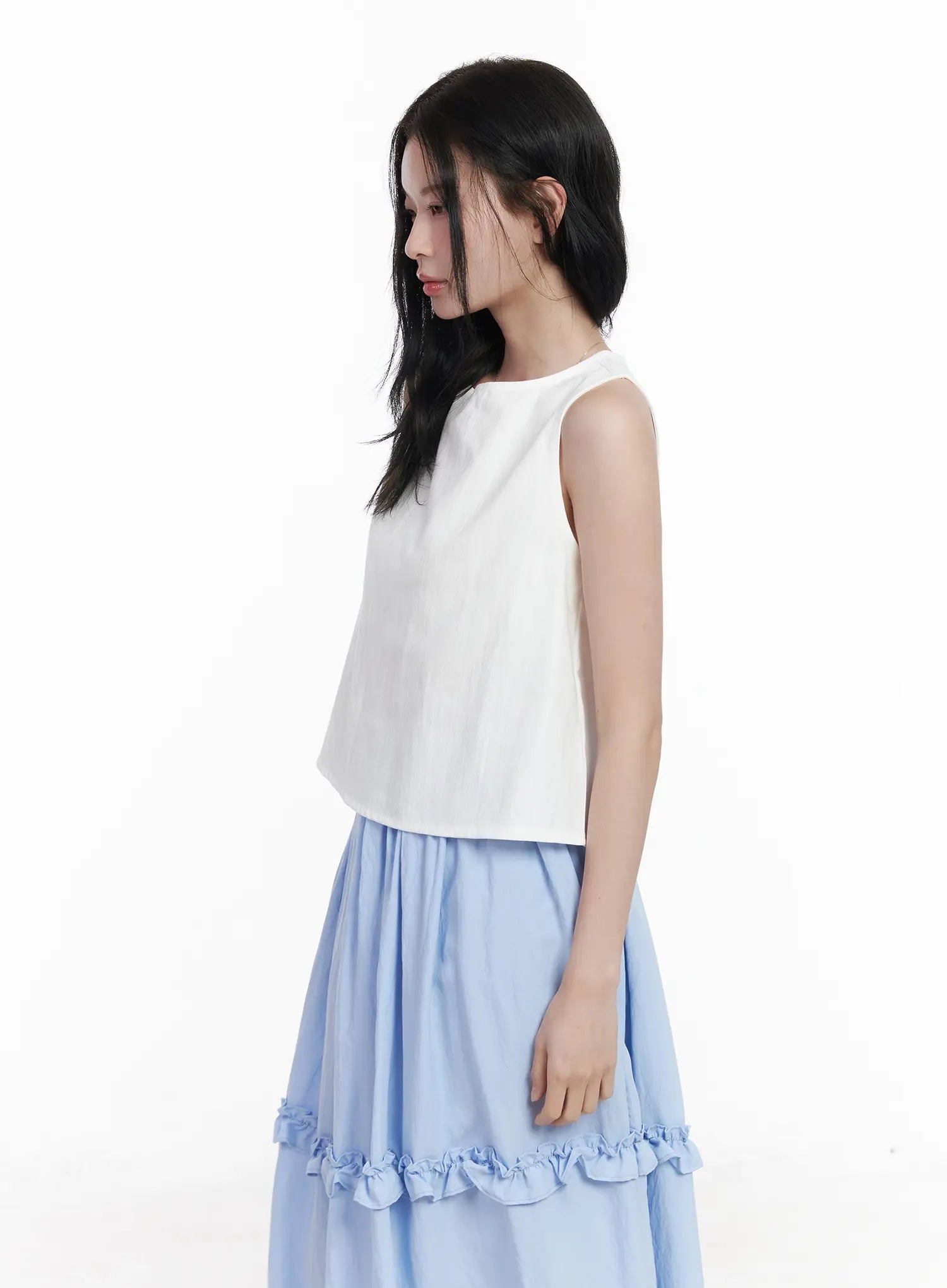 Back Button Sleeveless Top CA509