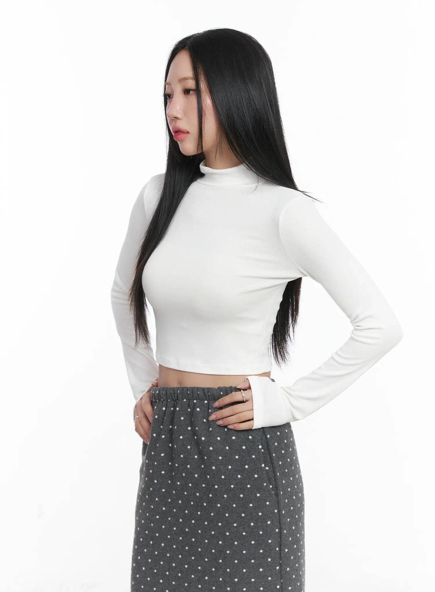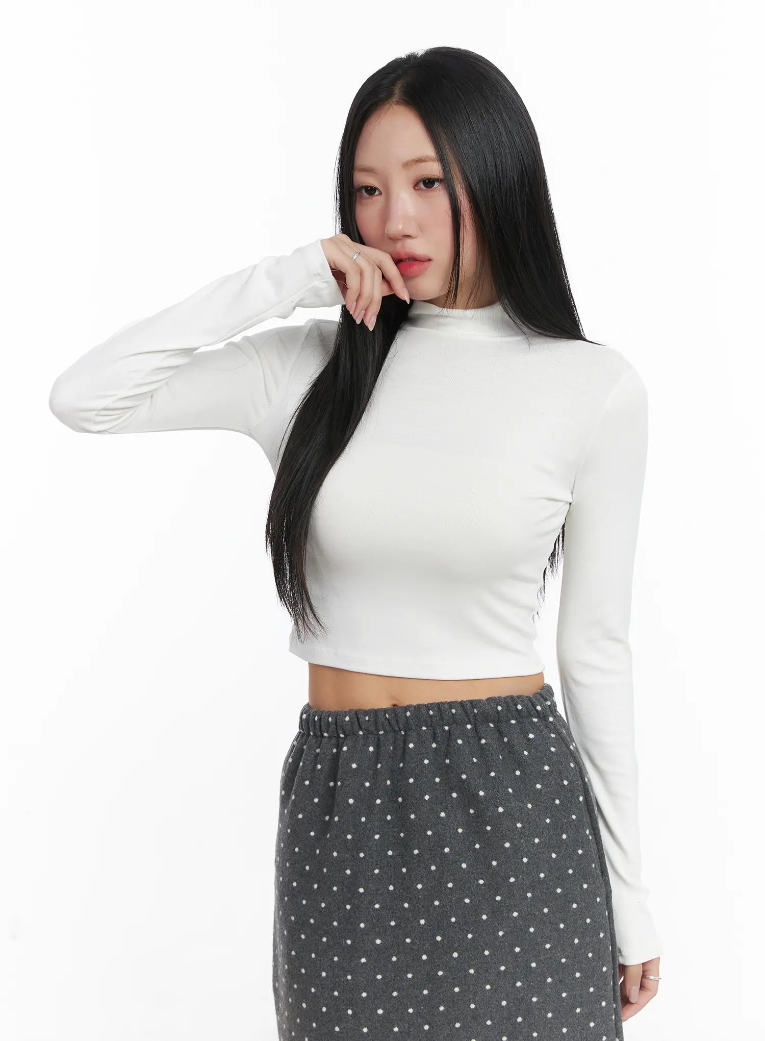 Basic Mock Neck Long Sleeve Crop Top CD529