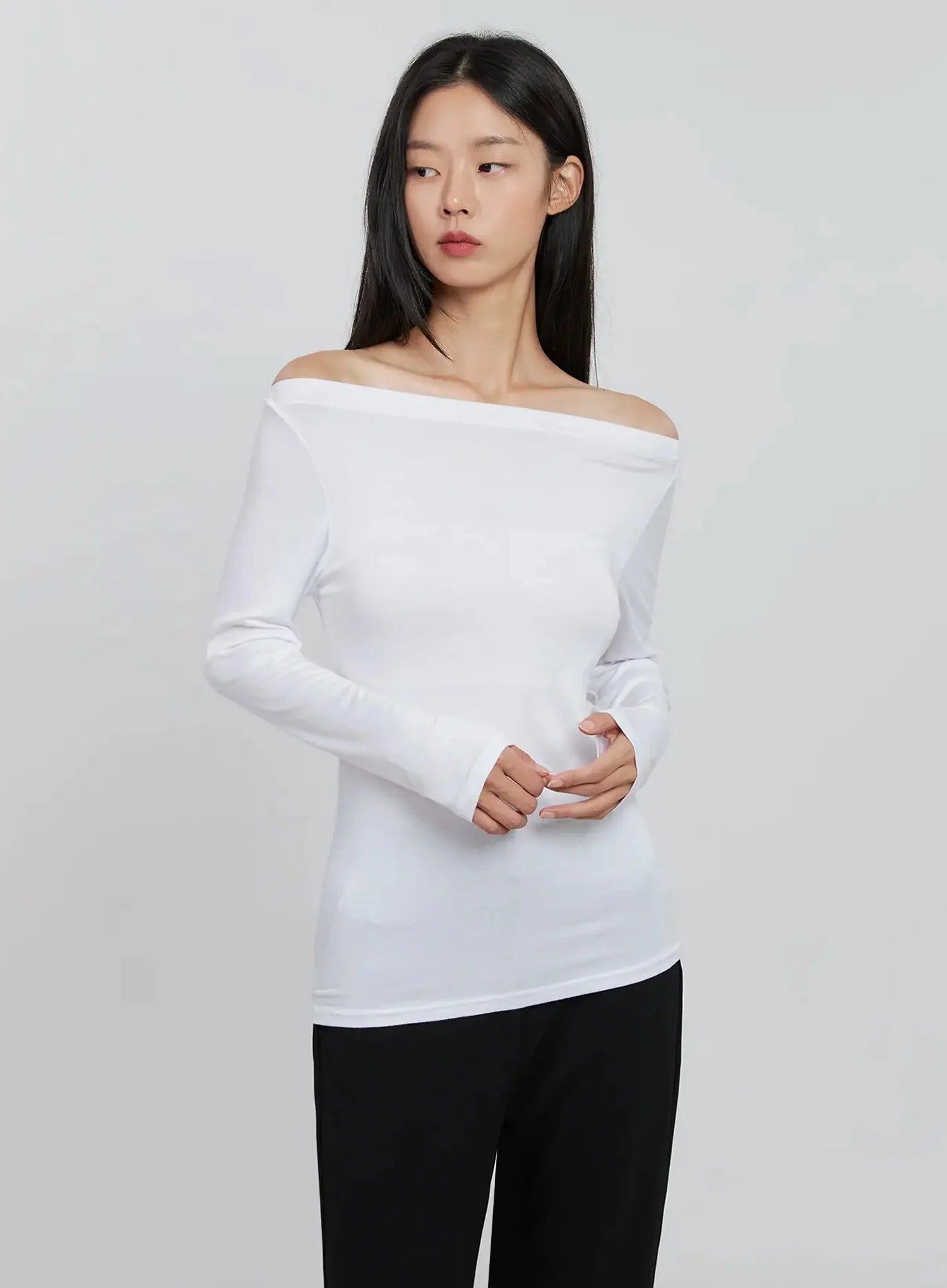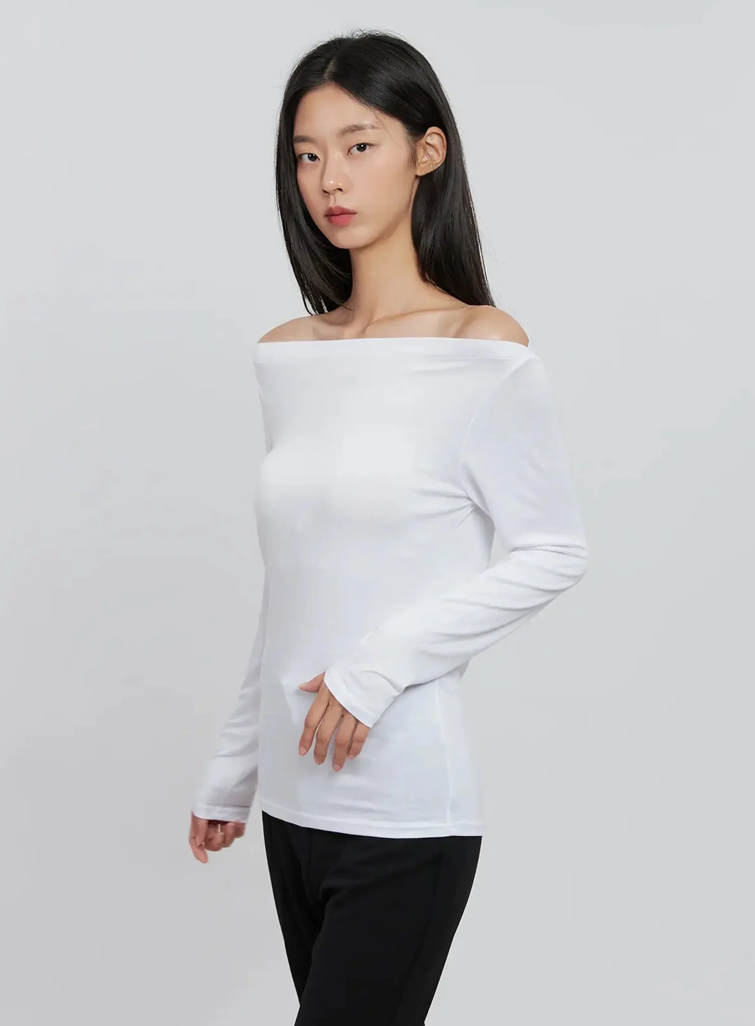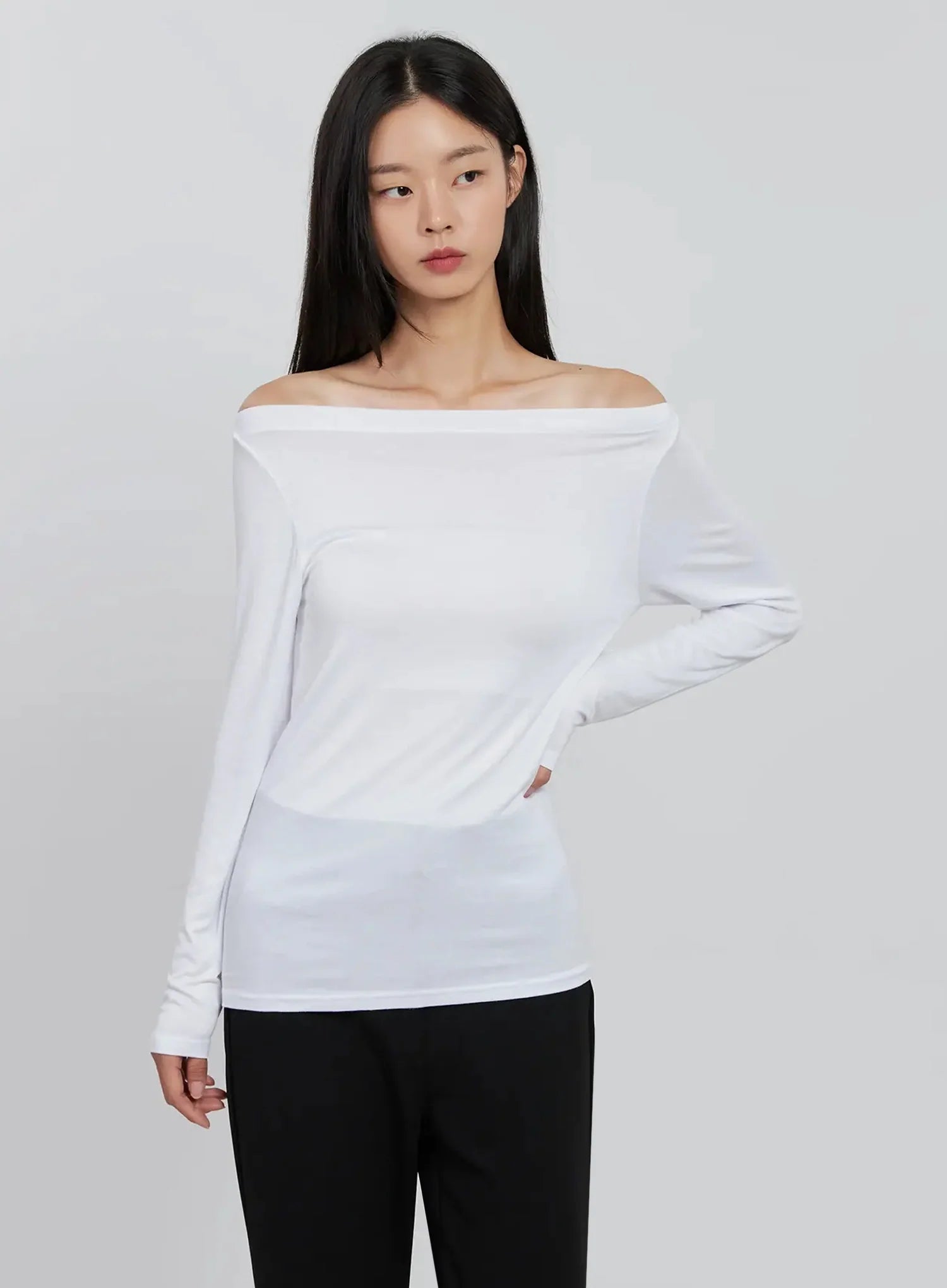 Basic Off-Shoulder Long Tee IN507