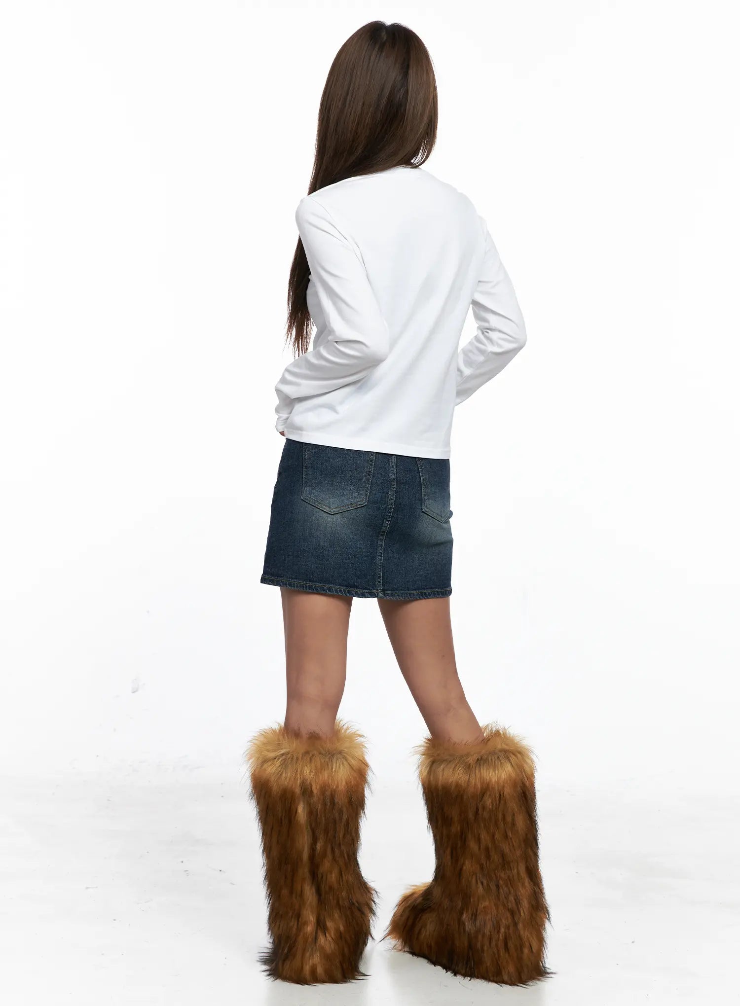 Basic Round Neck Cropped Long Sleeve Top CO513