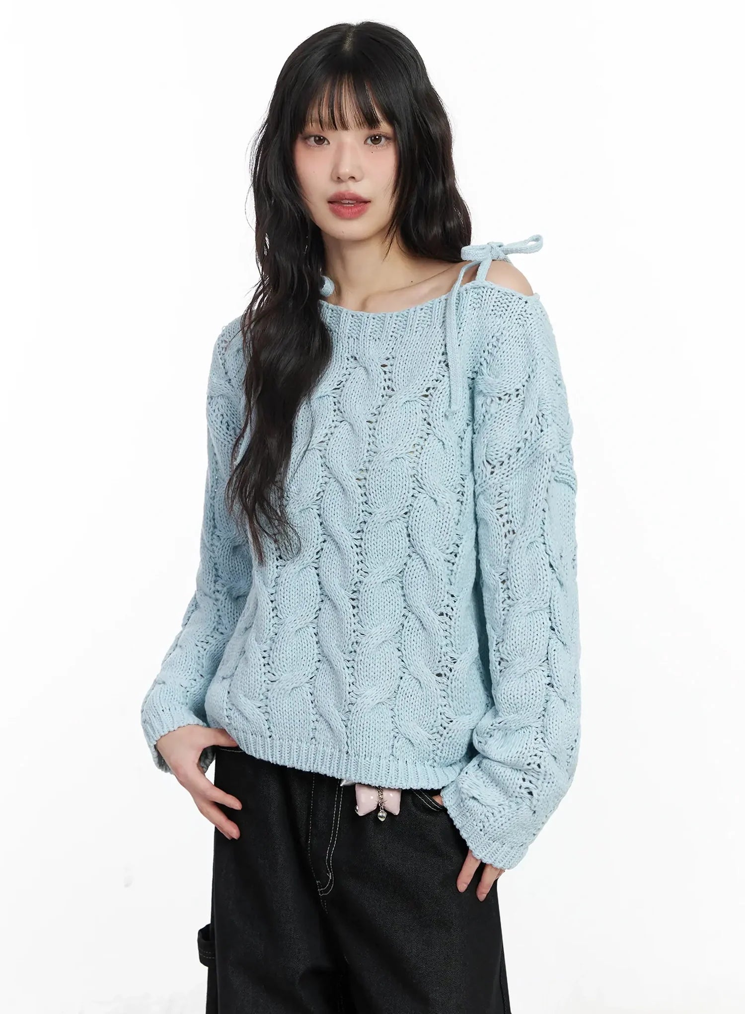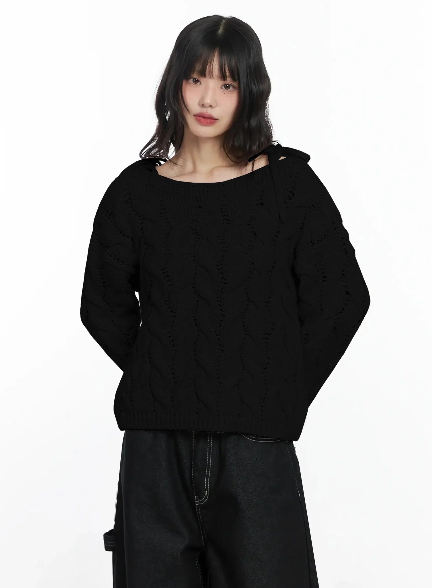 Boat Neck Cable Knit Top IF505