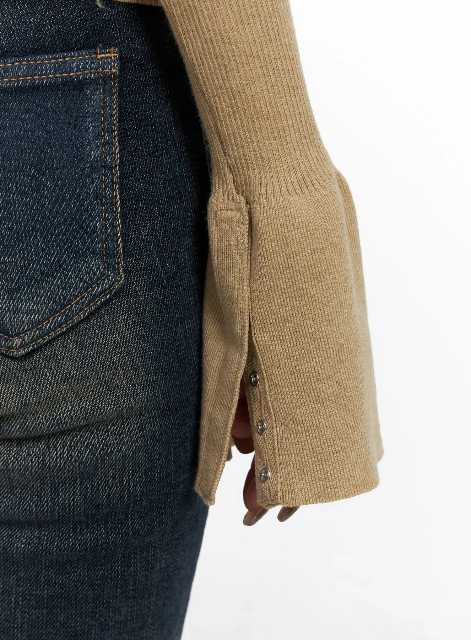 Model is wearing size S/M and the color Beige.