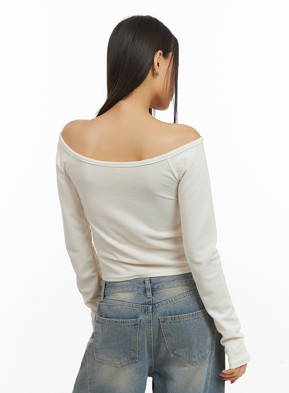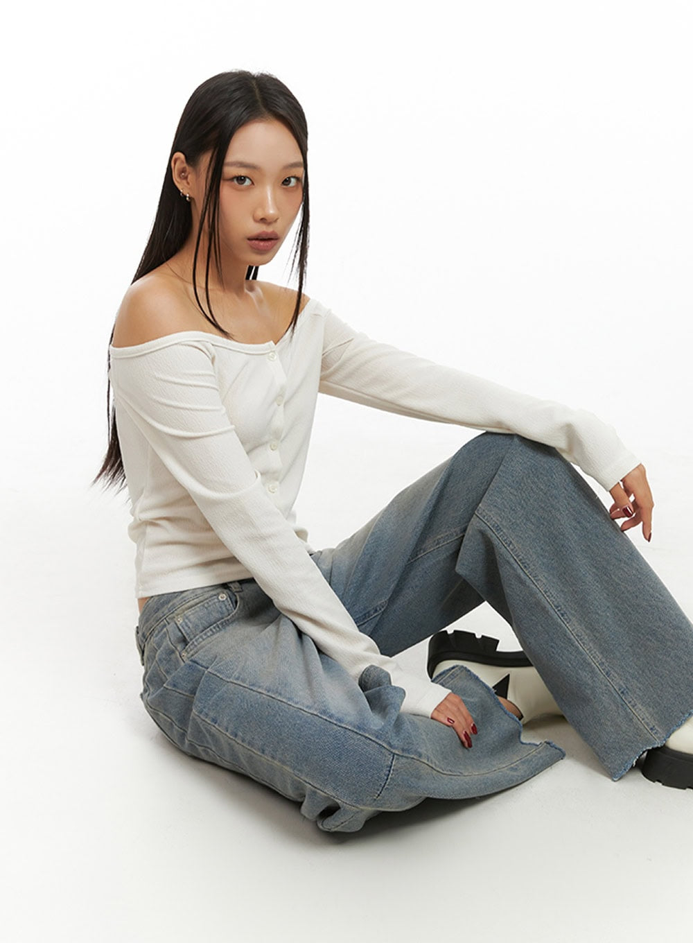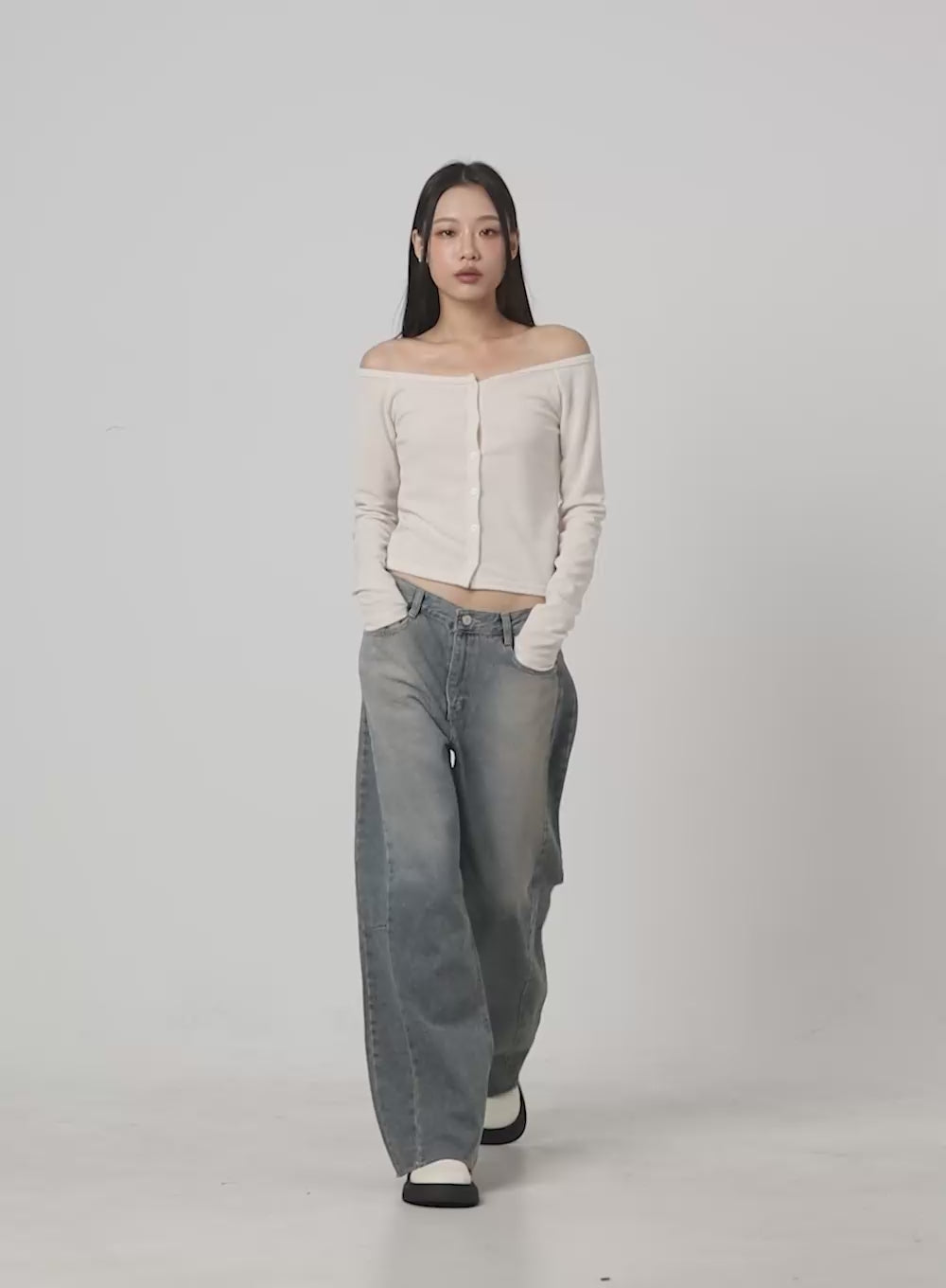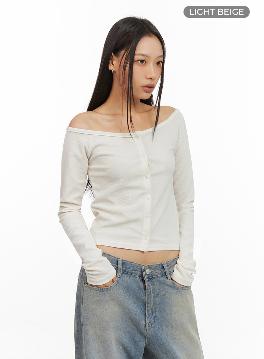 Buttoned Off-Shoulder Cotton Cardigan IS427