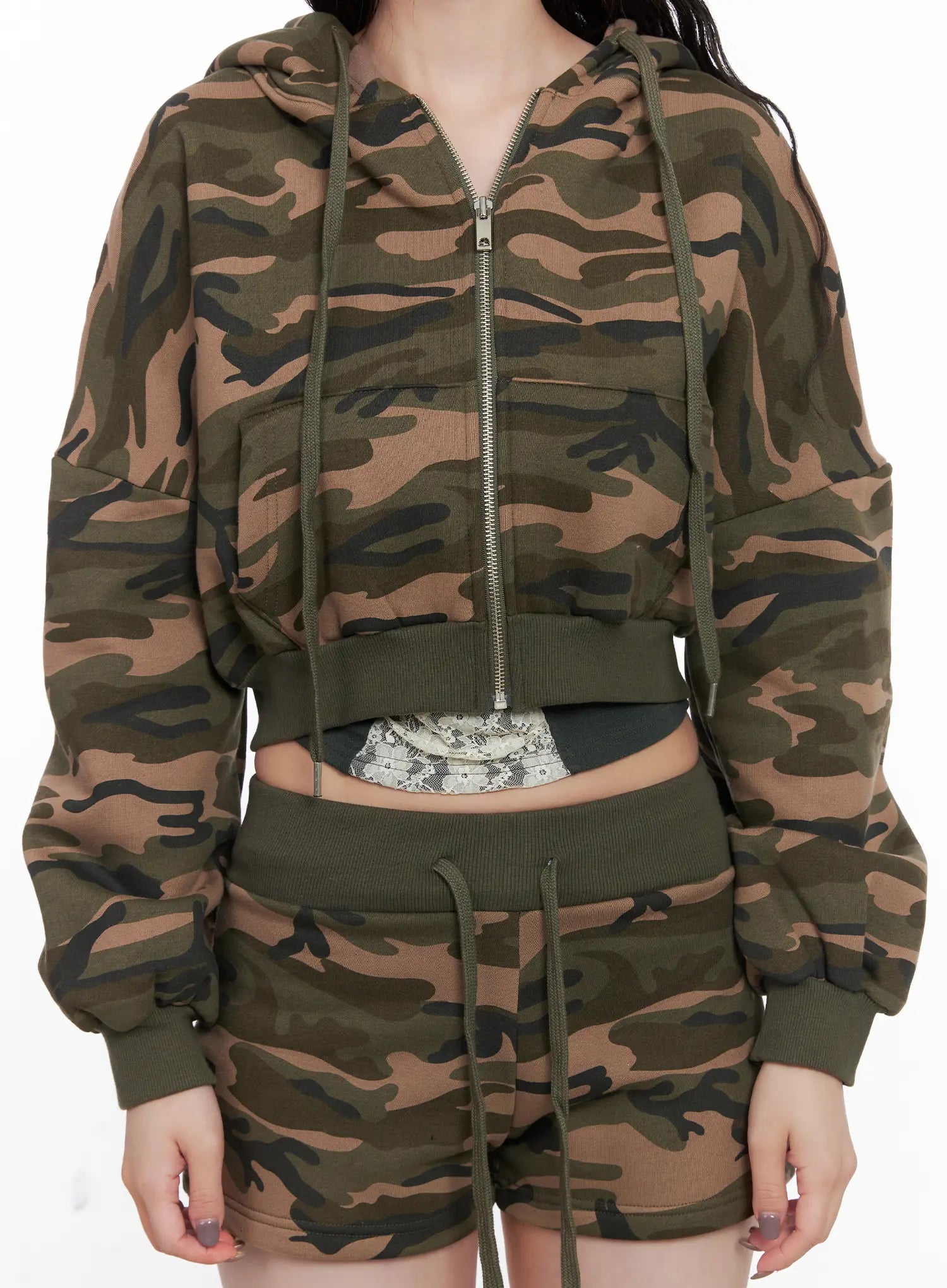 Camo Graphic Crop Hoodie CN513