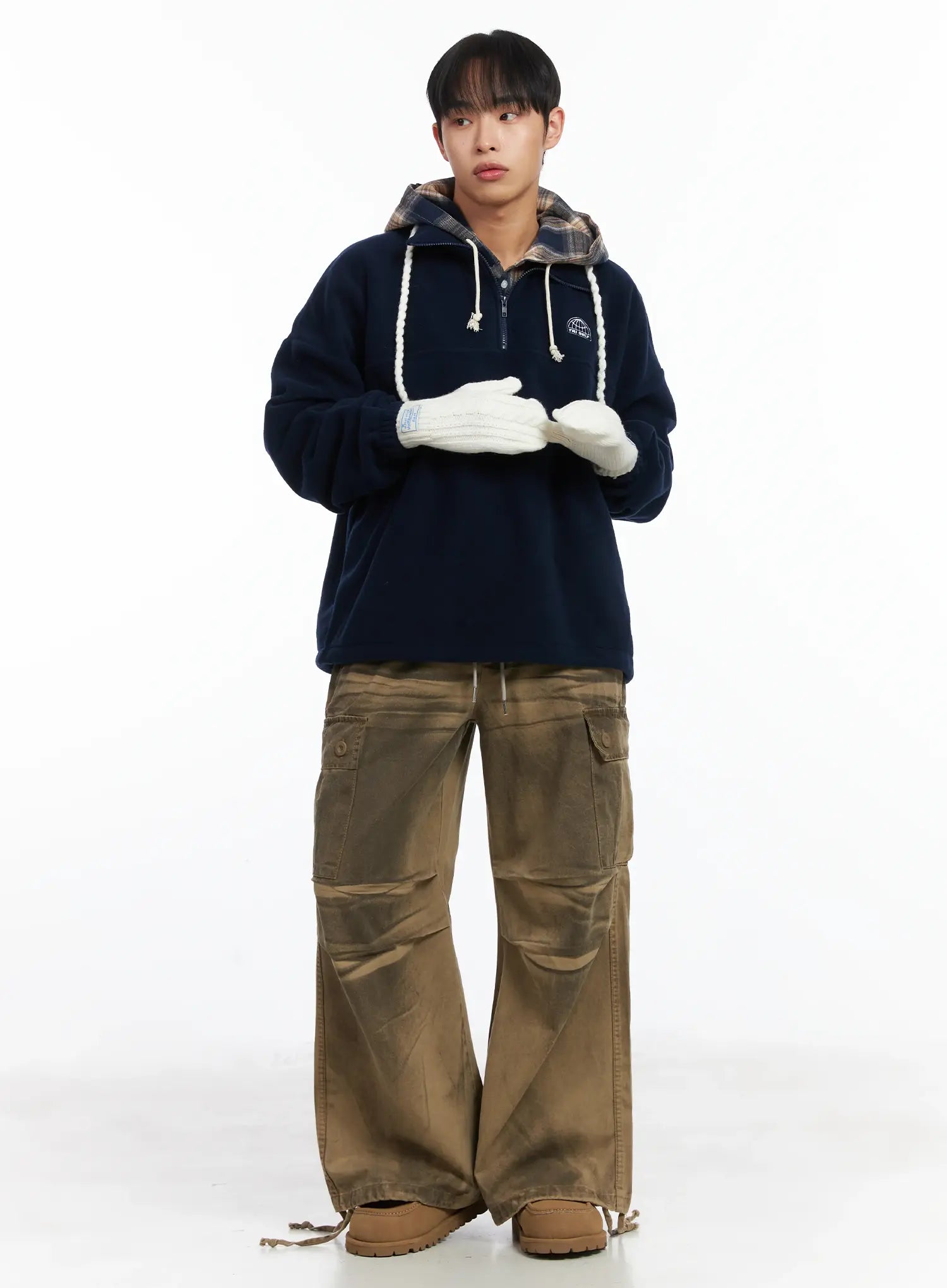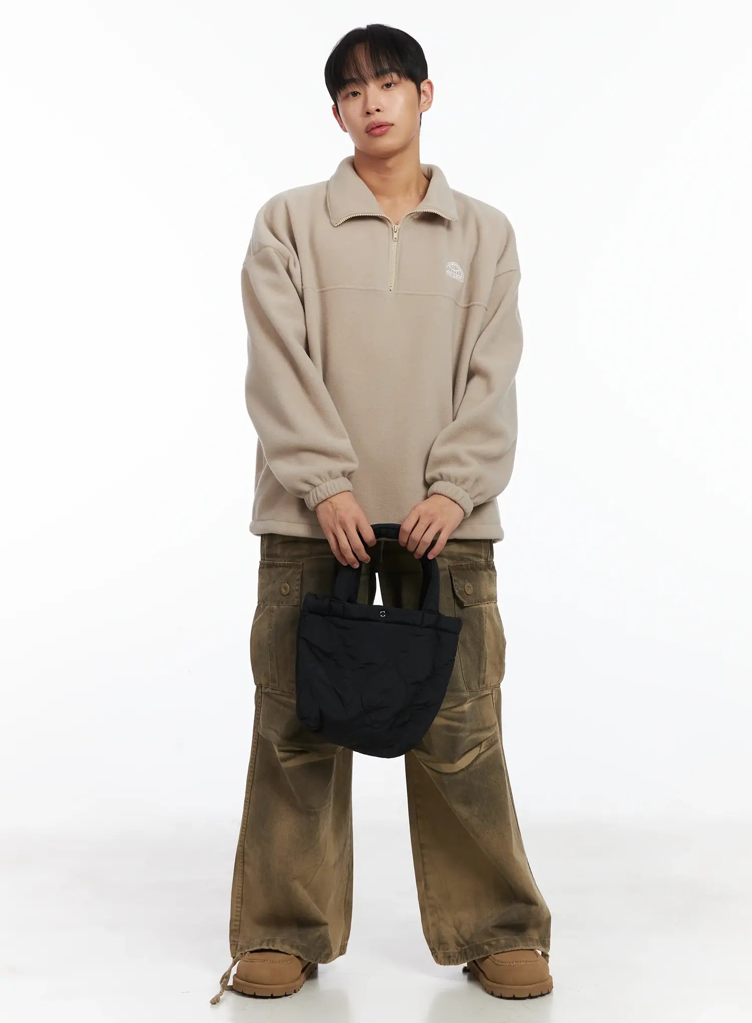 Model is wearing the color Beige.