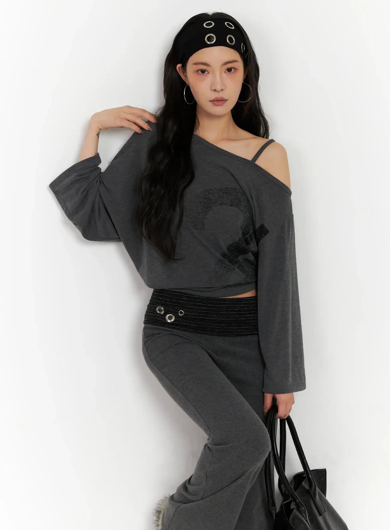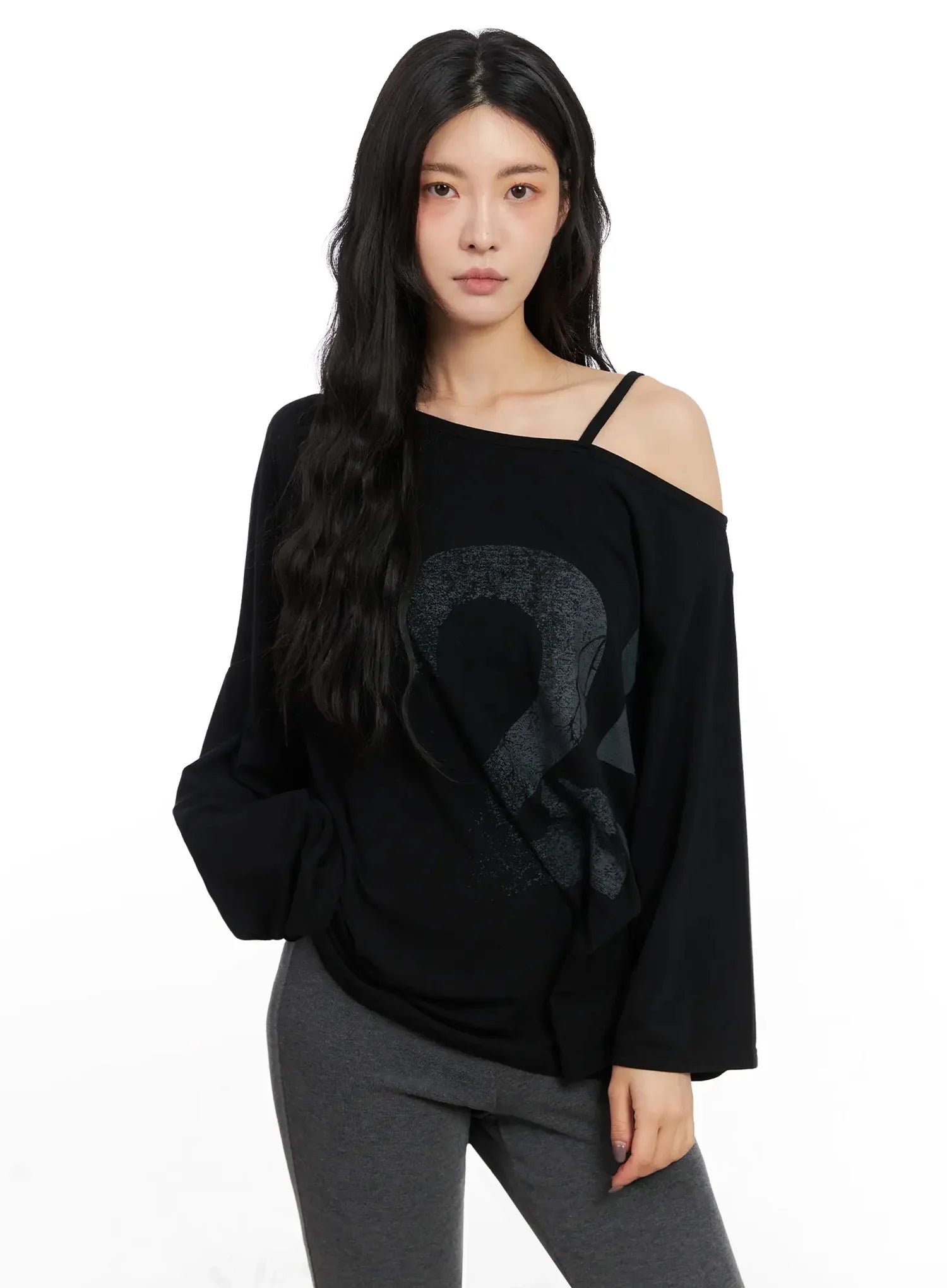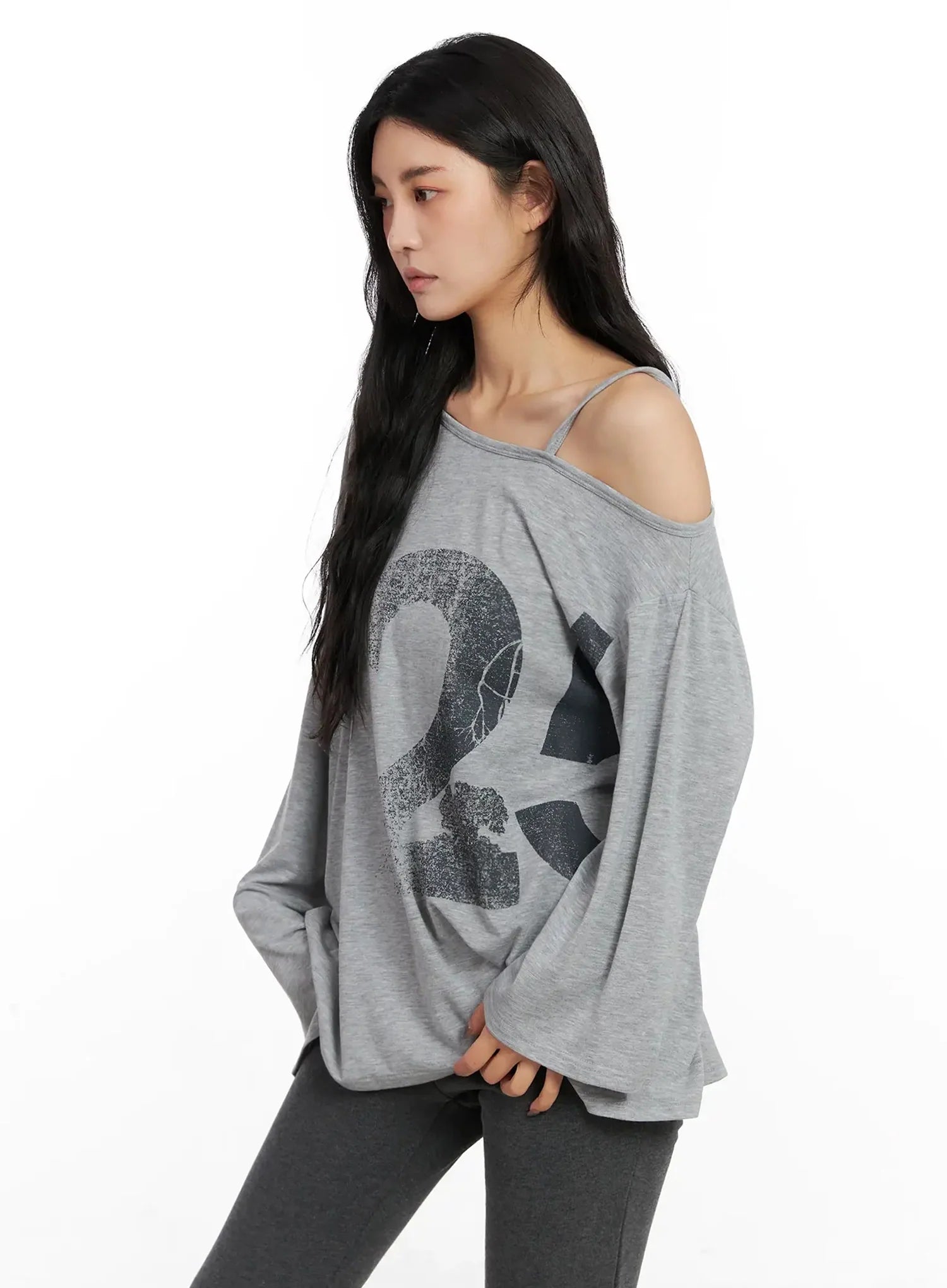 Casual Graphic Long Sleeve Off-Shoulder Top IN528