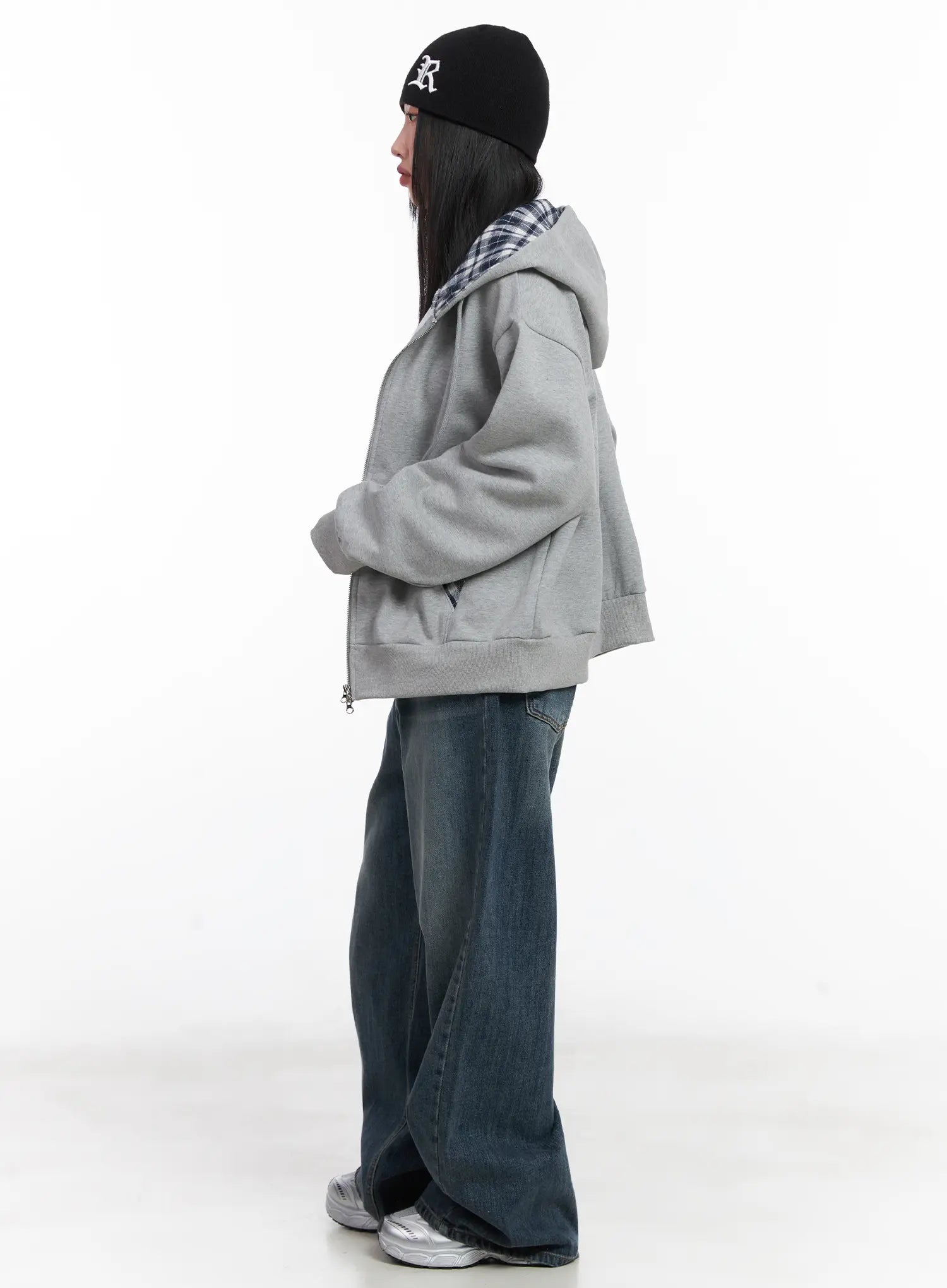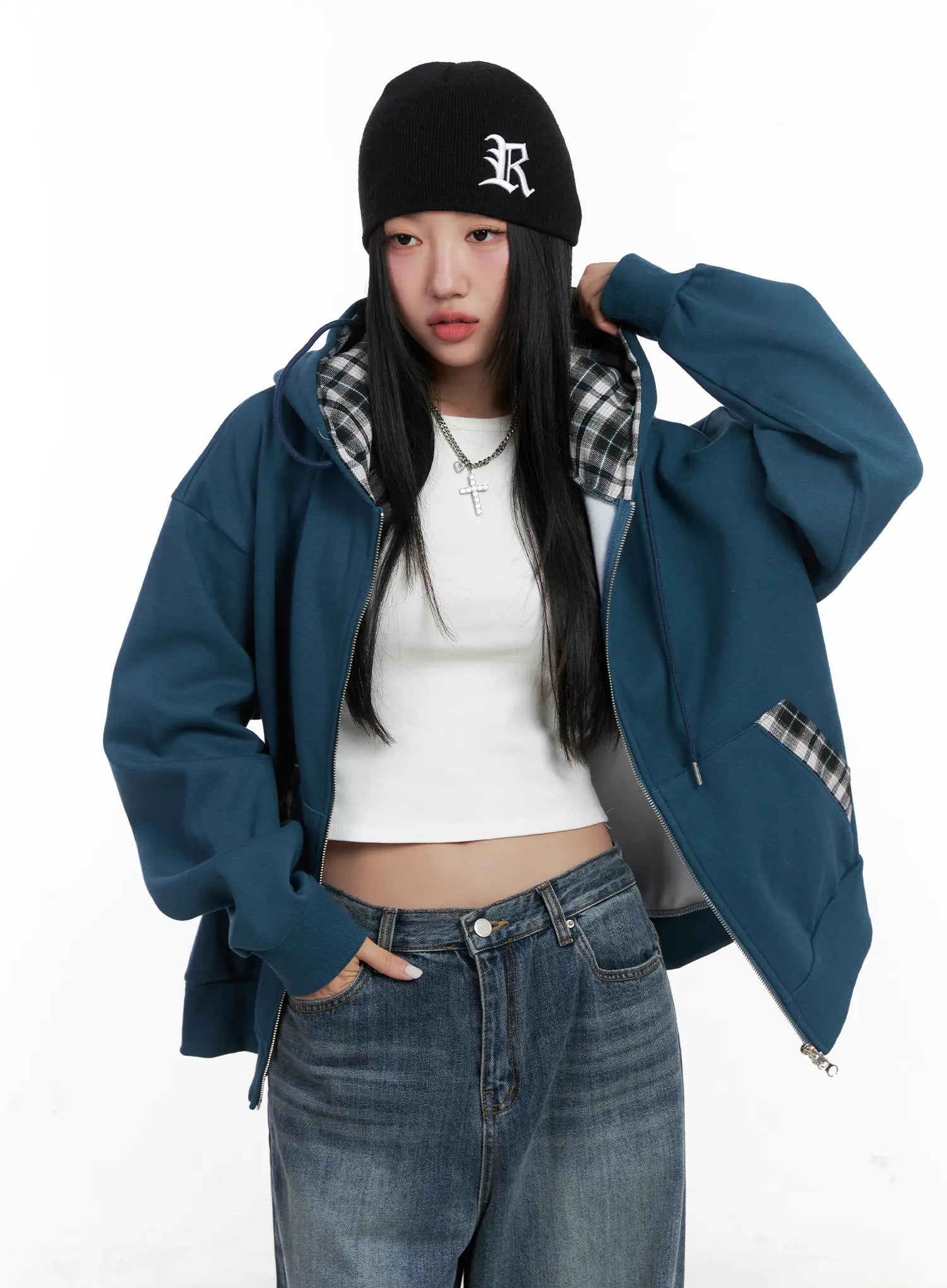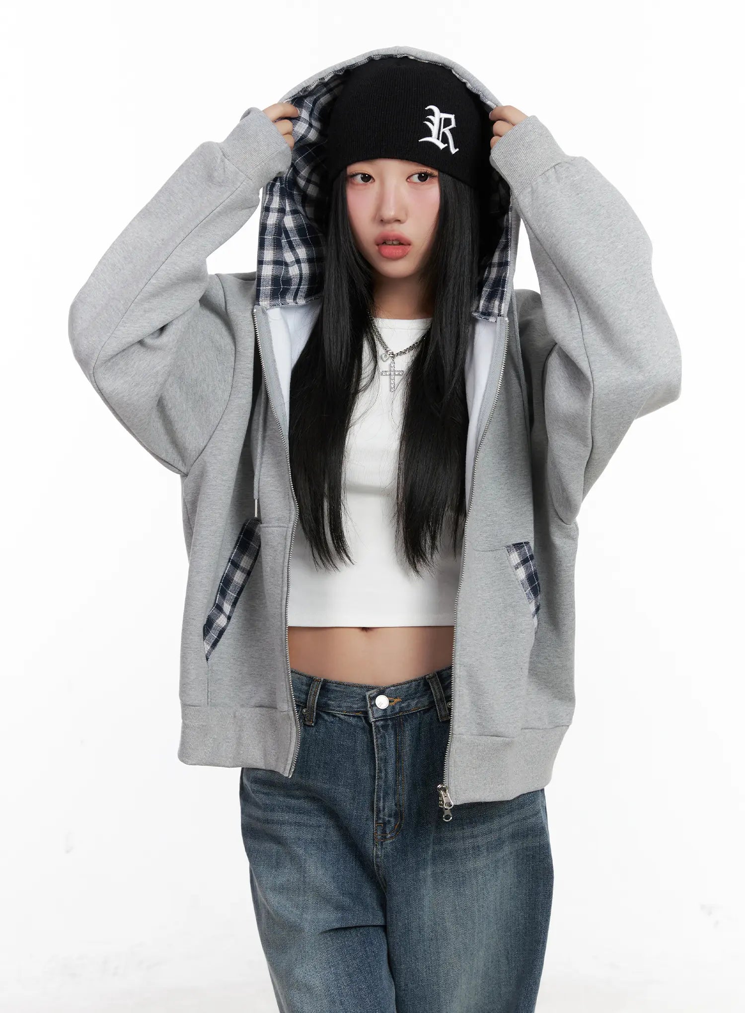 Checkered detail Zip-Up Hoodie CN528