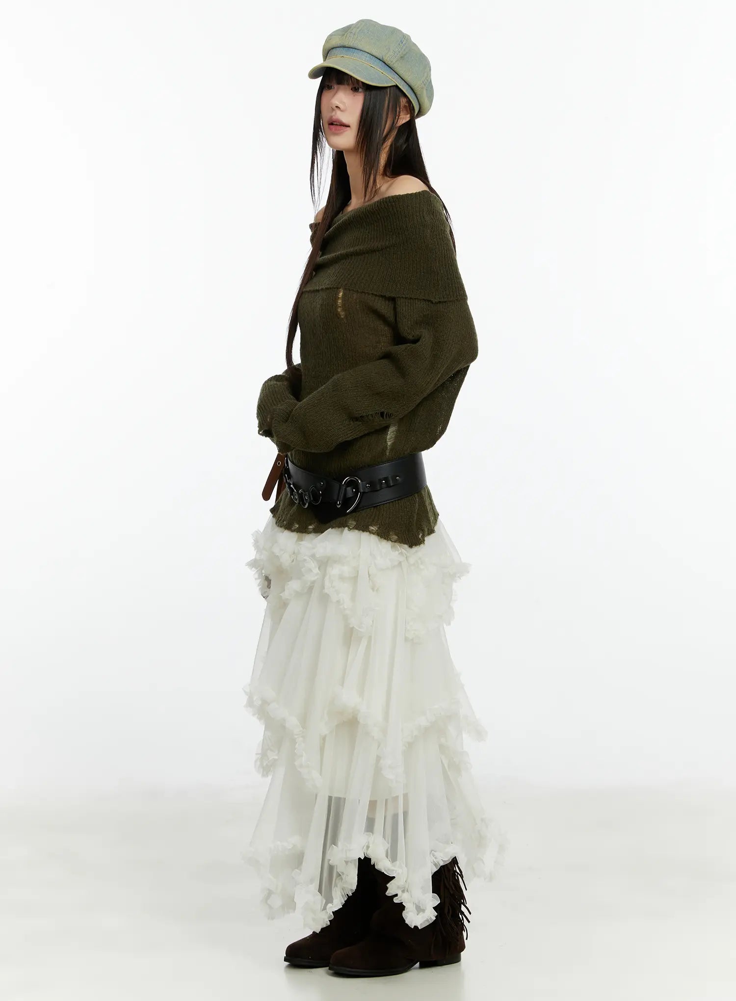 Chiffon Lace Maxi Skirt CF510