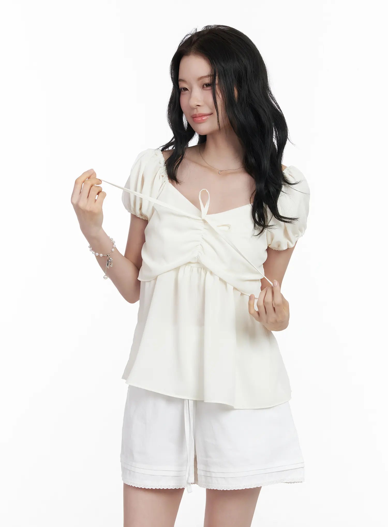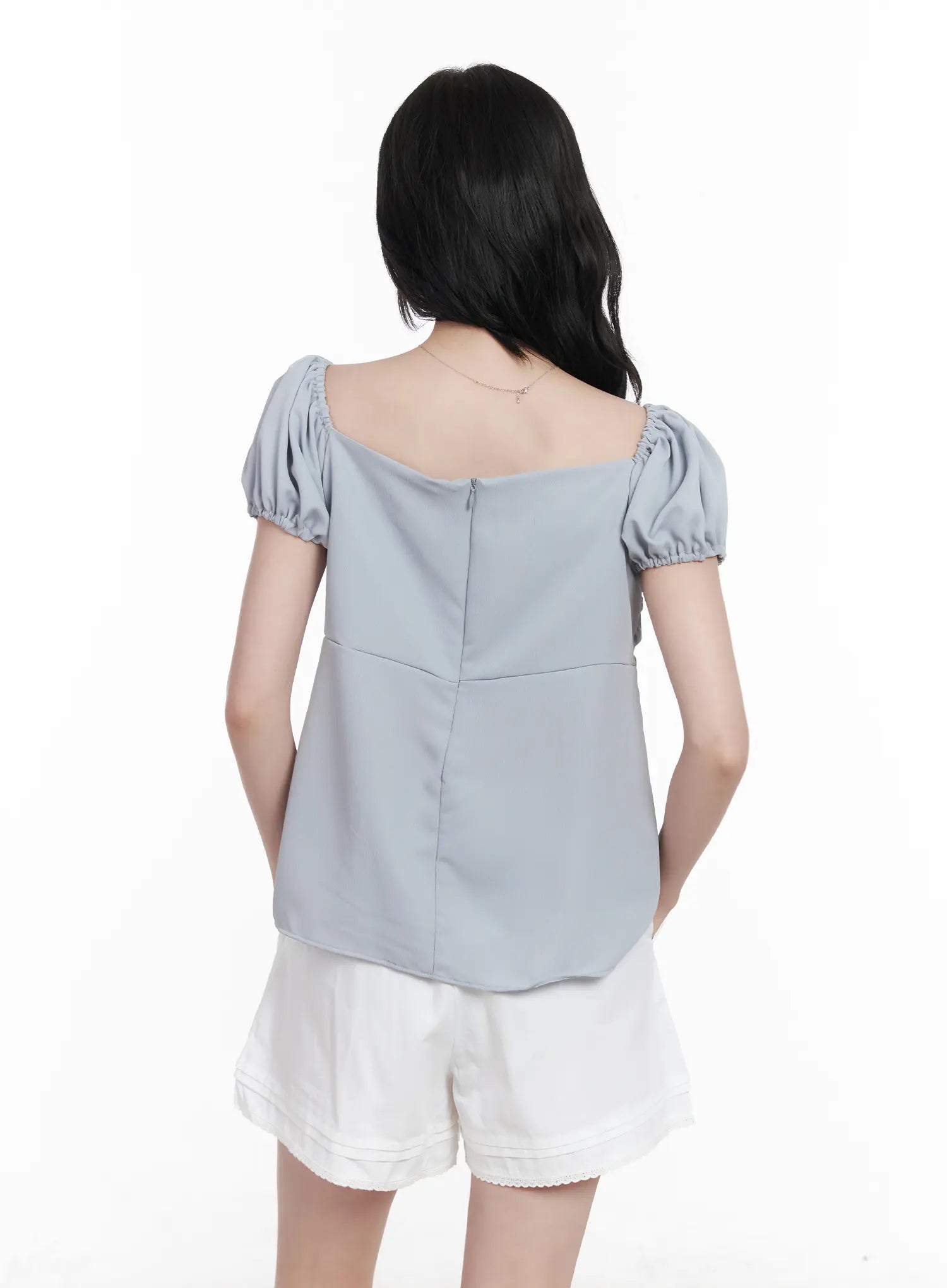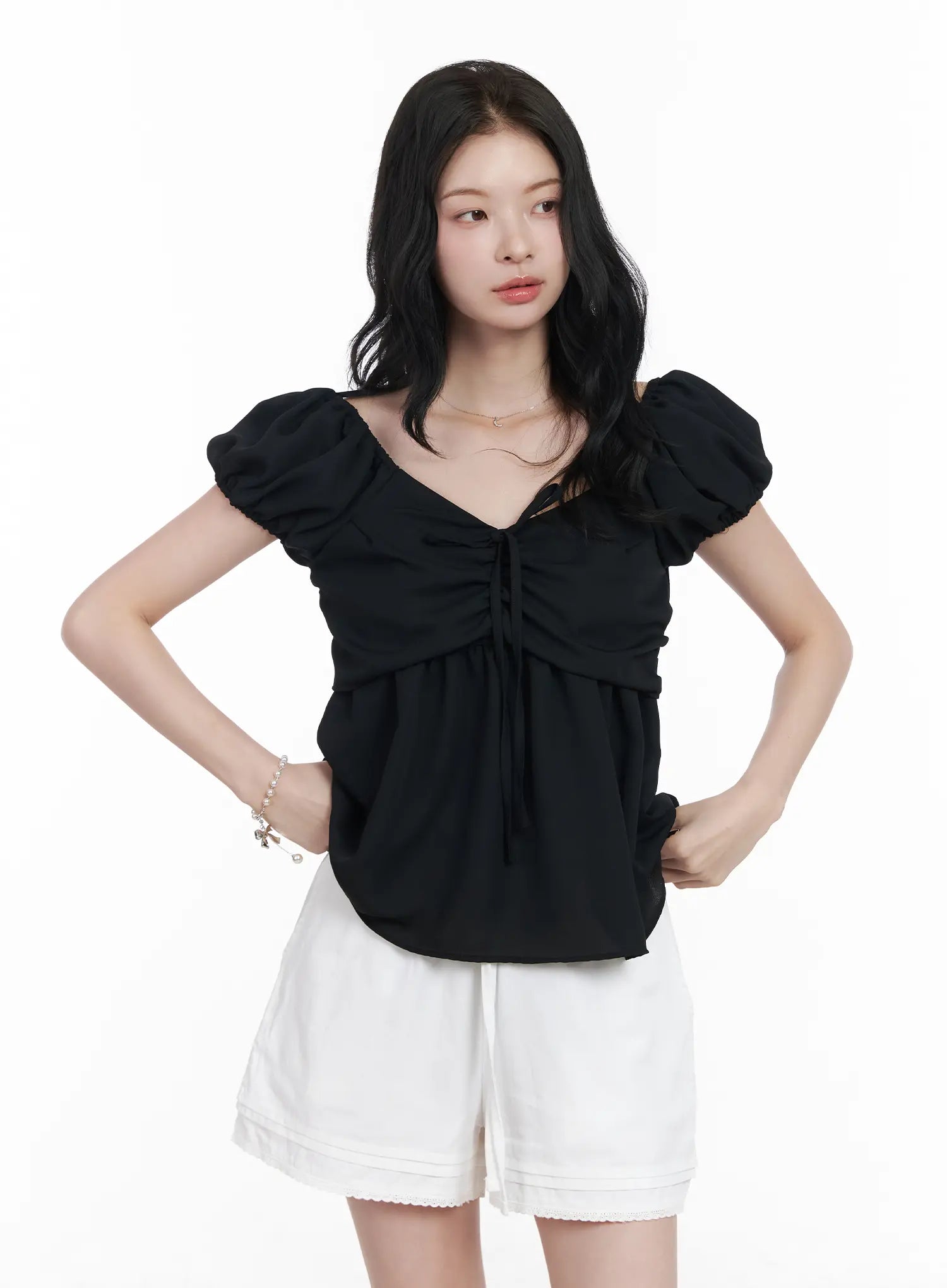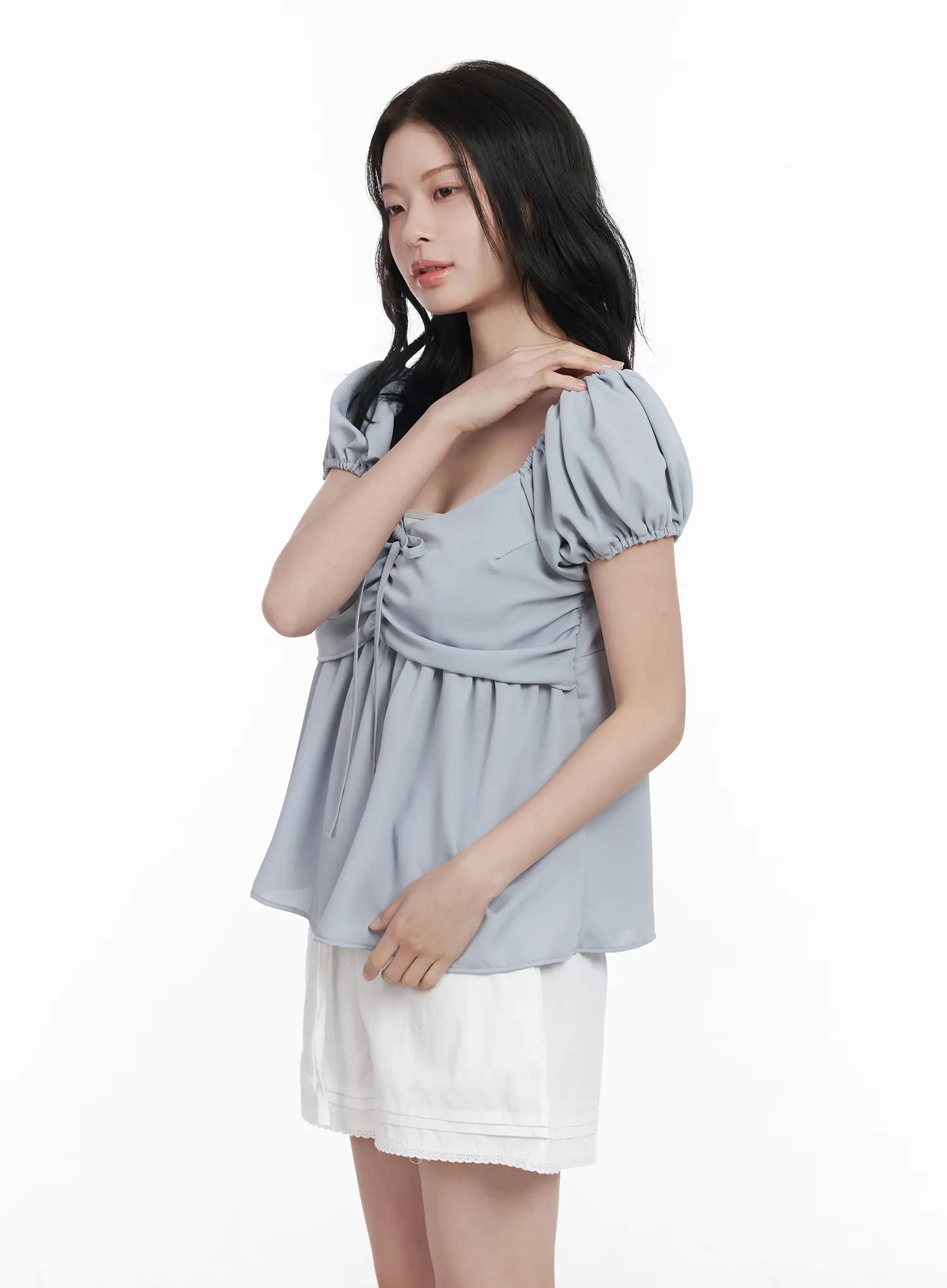 Chiffon Ruched Puff Sleeve Blouse CA510