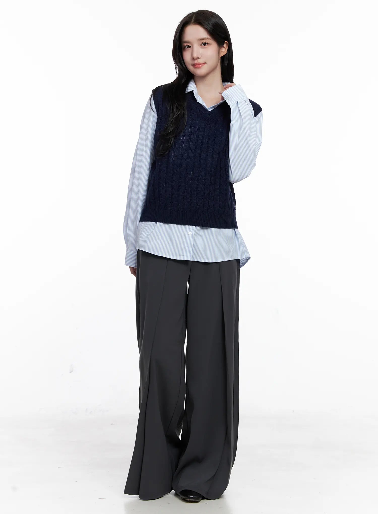 Model is wearing size S/M and the color Dark blue.