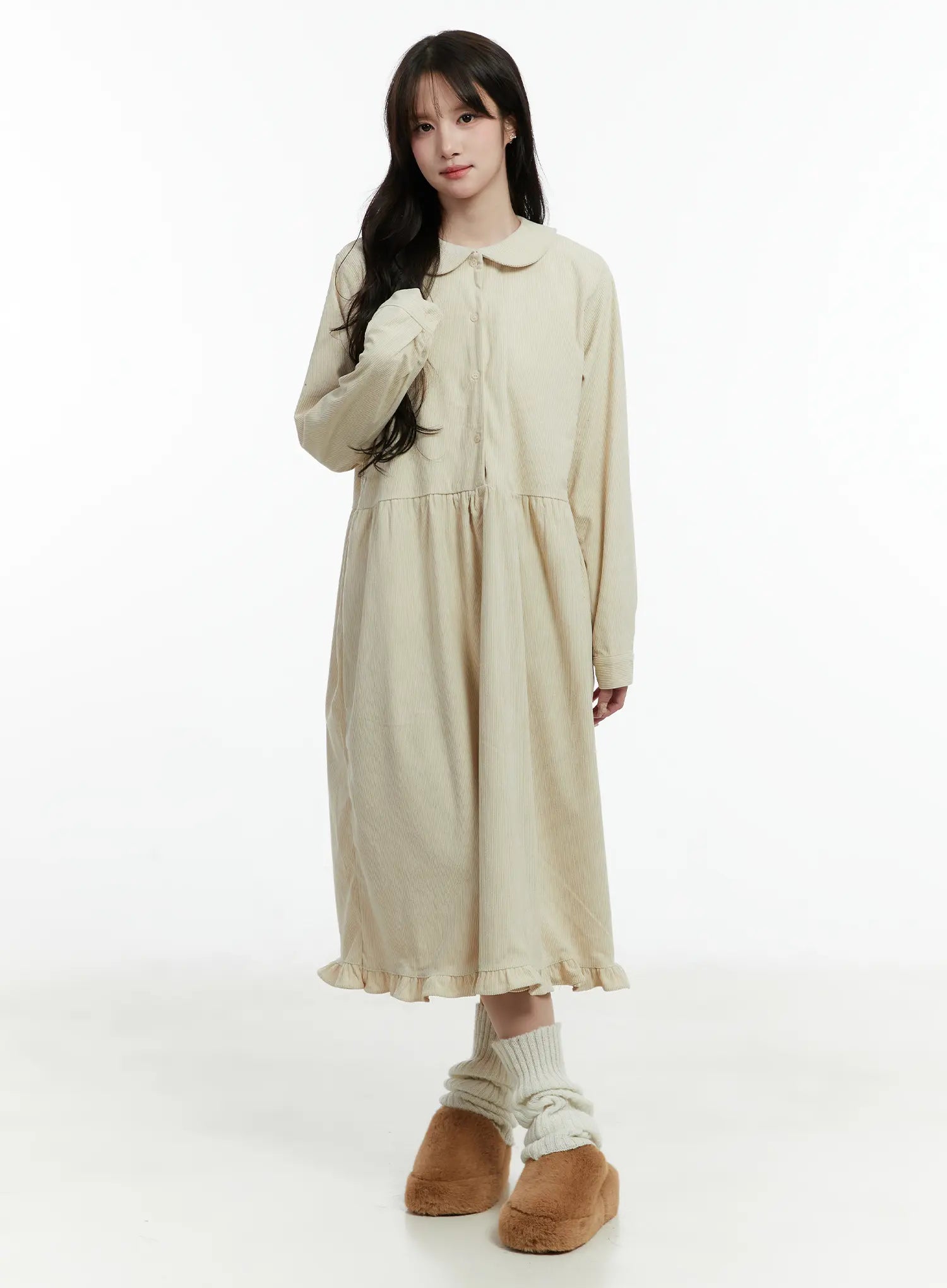 Collared Corduroy Long Sleeve Maxi Dress CD523