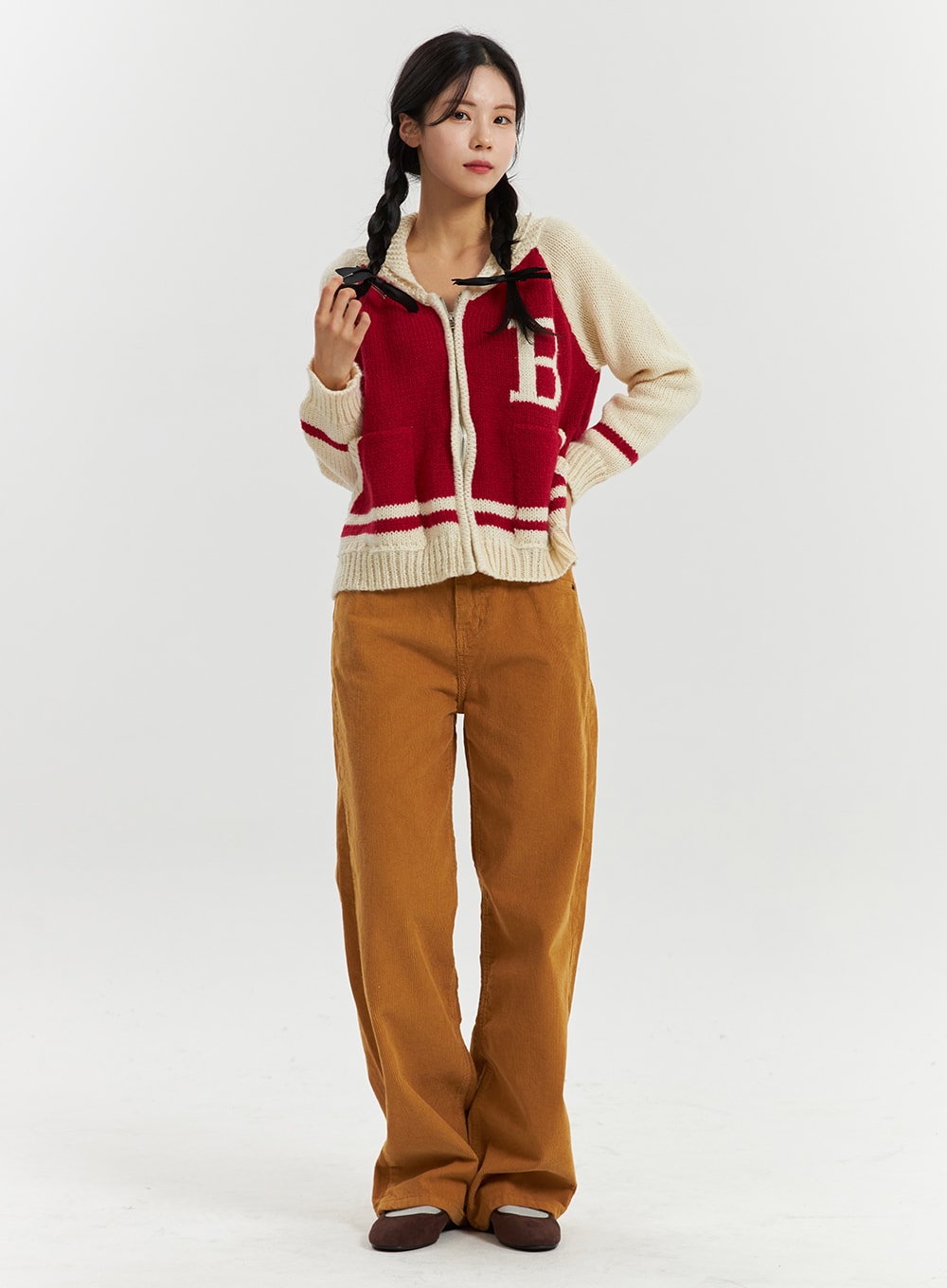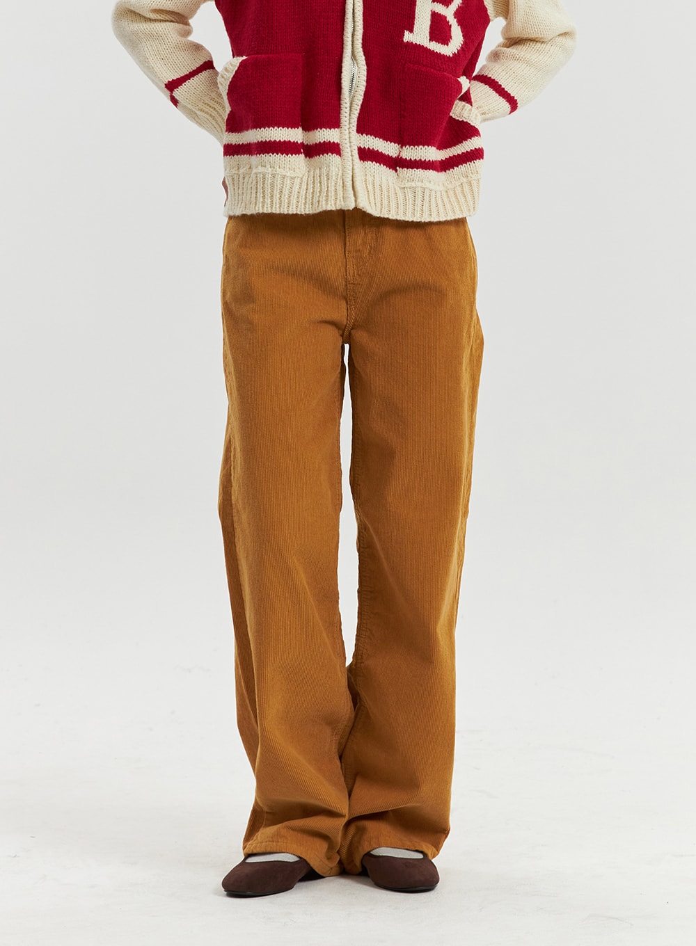 Corduroy Mid-Waist Solid Straight Pants OD320