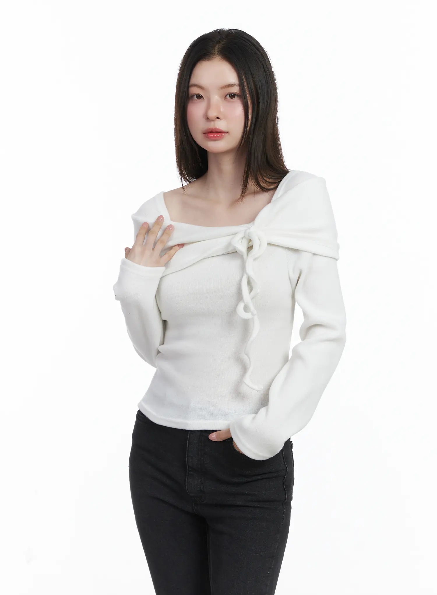 Cozy Fleece Off-Shoulder Shirred Top CJ506