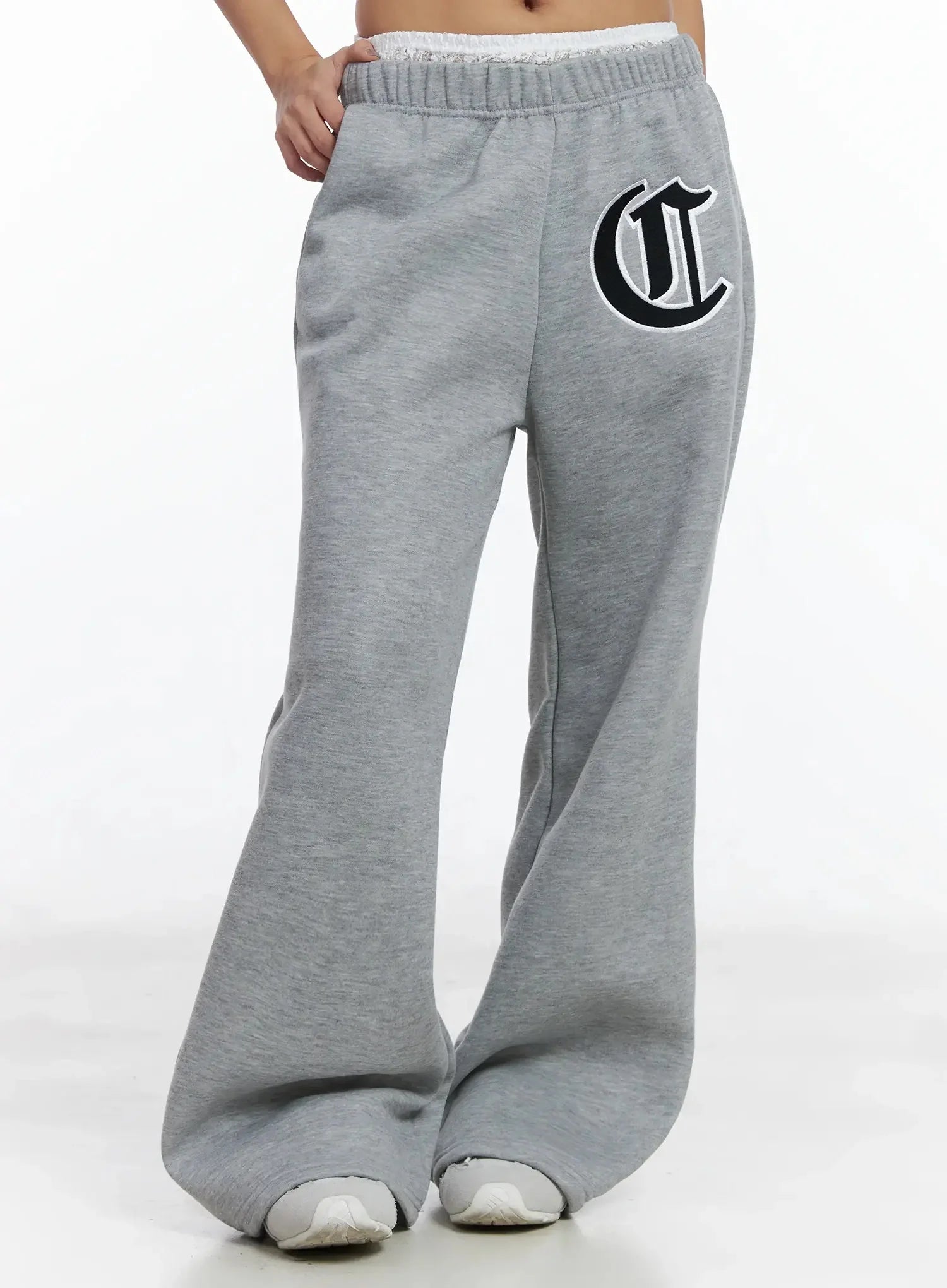 Cozy Graphic Thermal Wide-Leg Sweatpants IN528