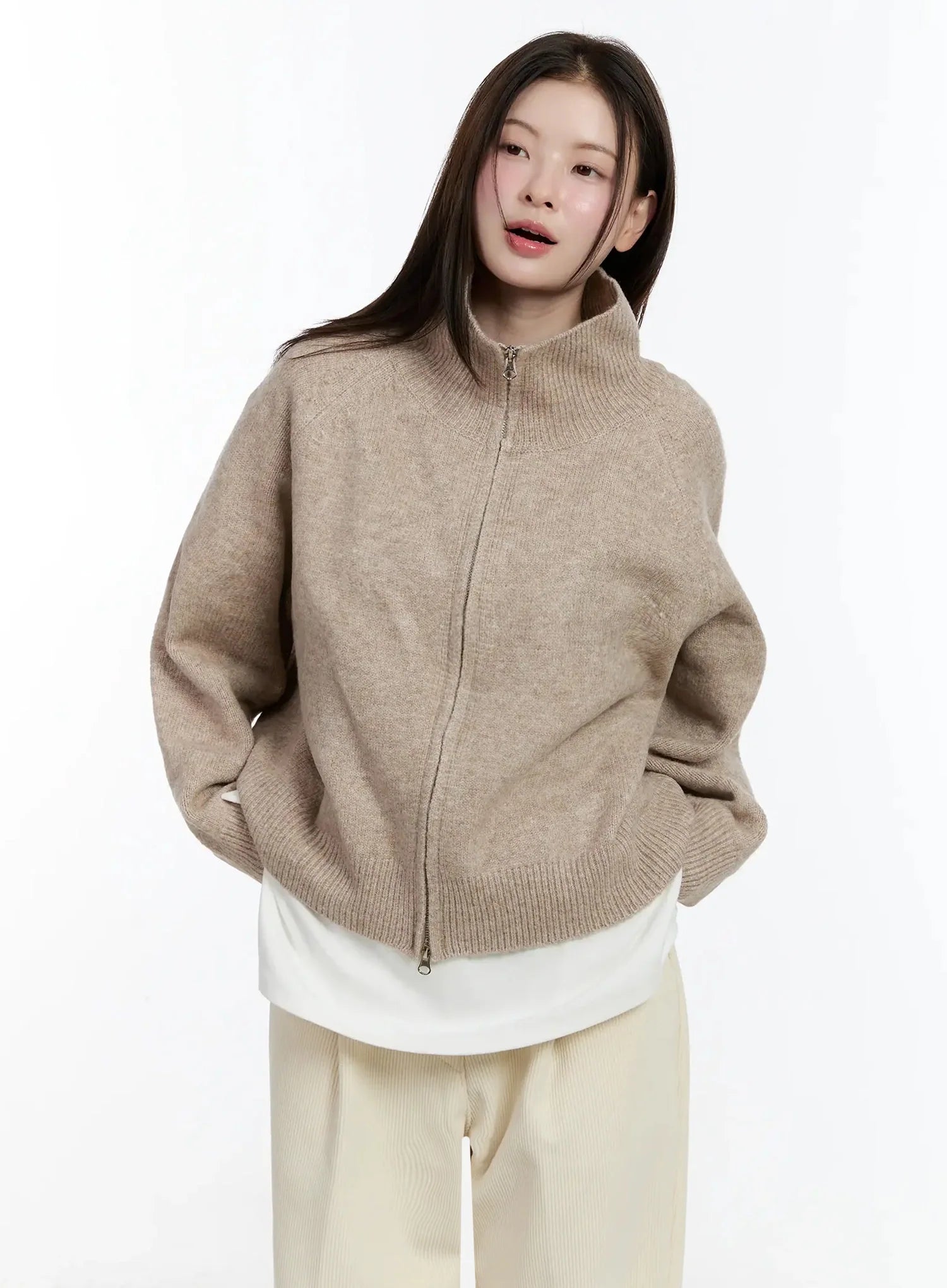 Cozy Zip-Up Turtleneck Cardigan ID526