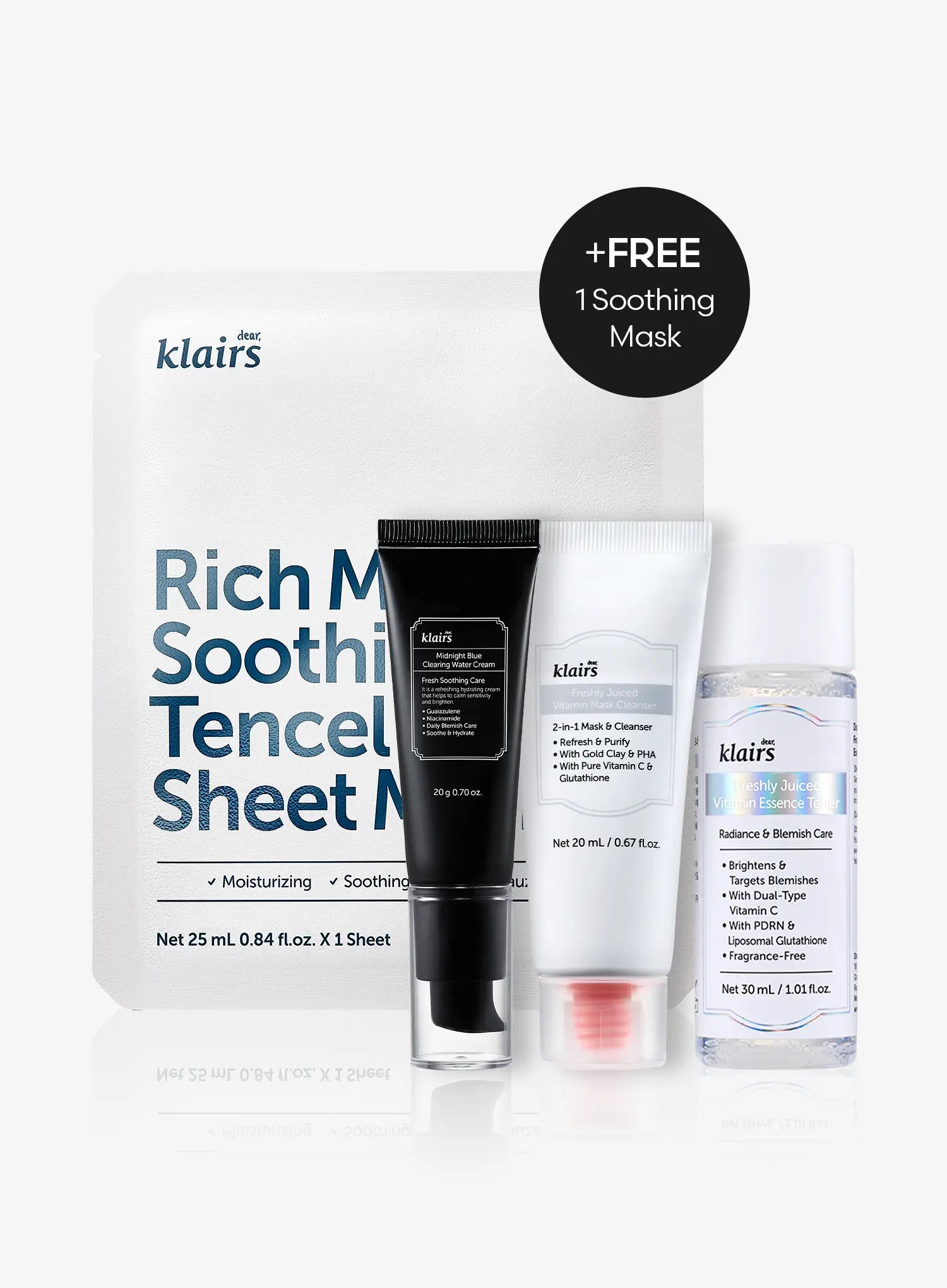 A 4-step brightening & soothing mini routine set, perfect for discovering Klairs favorites or gifting K-beauty beginners.