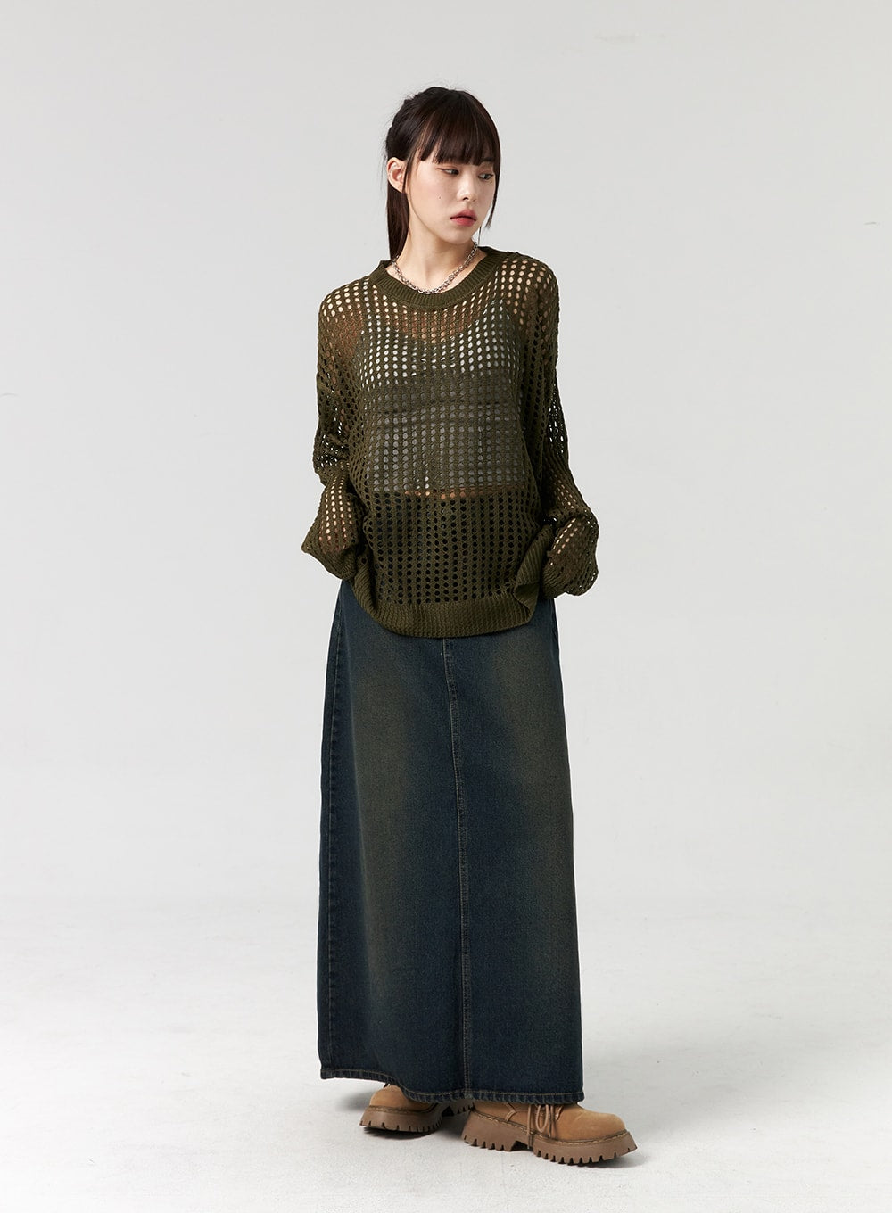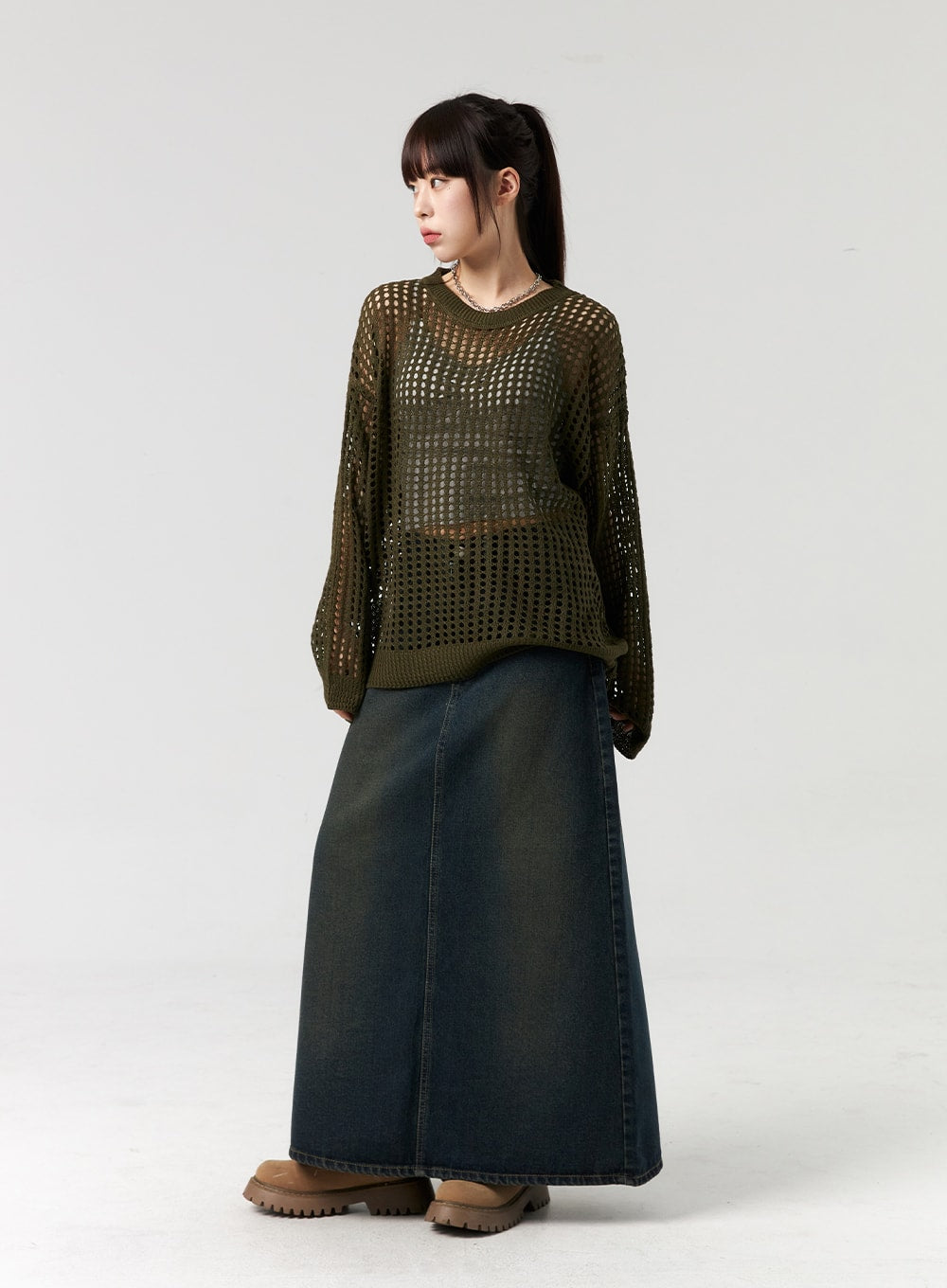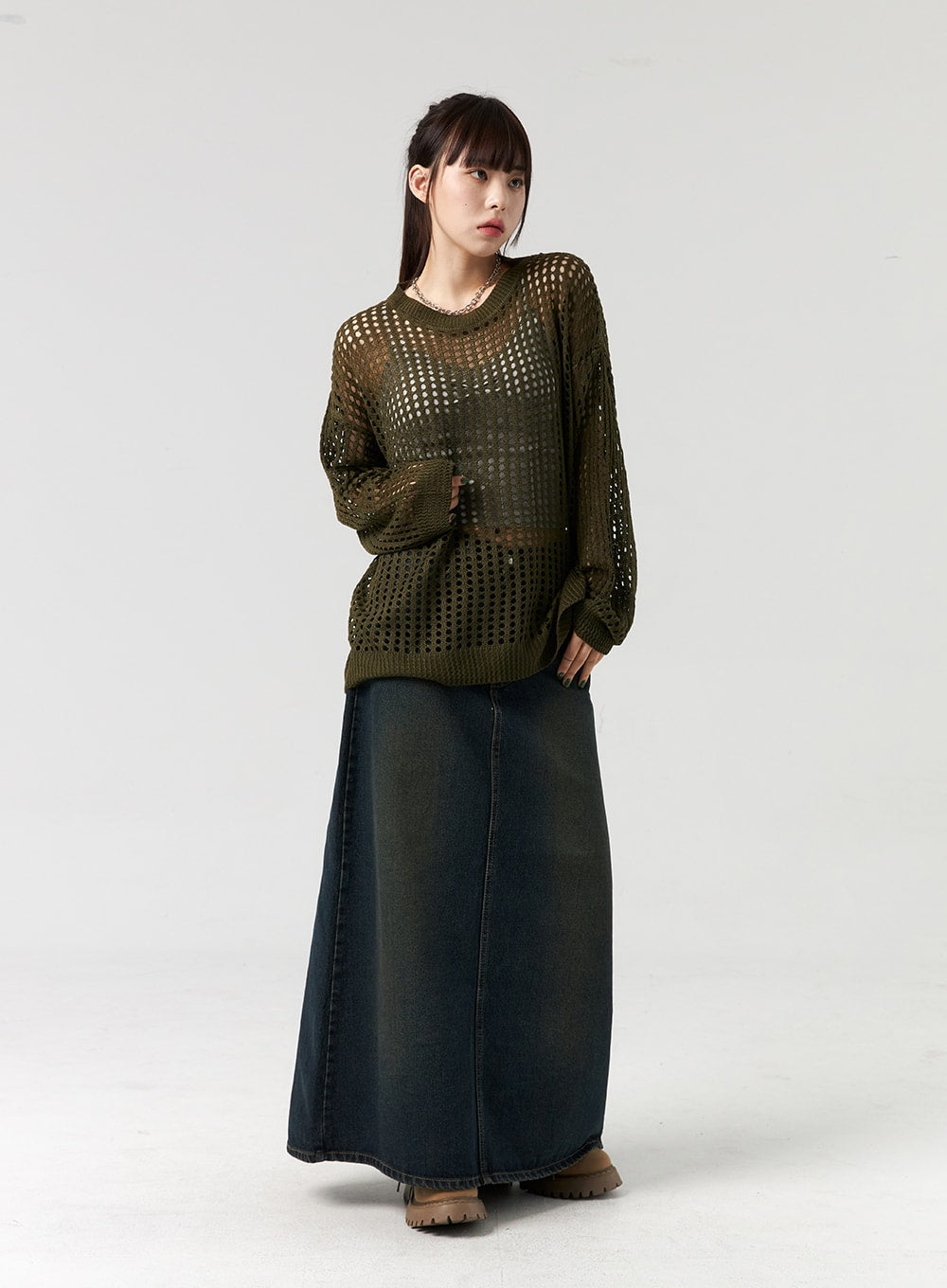 Denim A-Line Maxi Skirt CL327