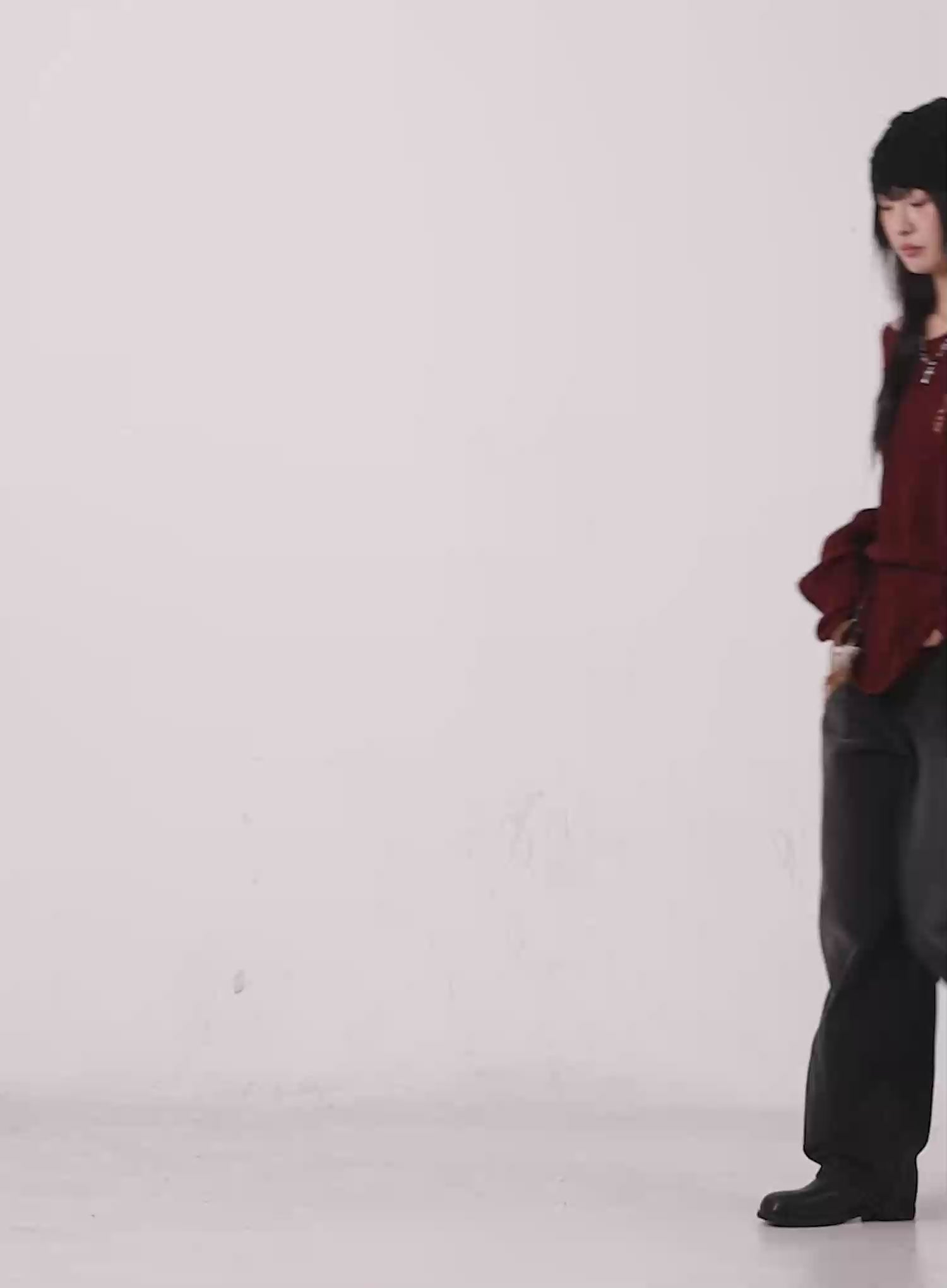 Model is wearing size M/L and the color Dark red.