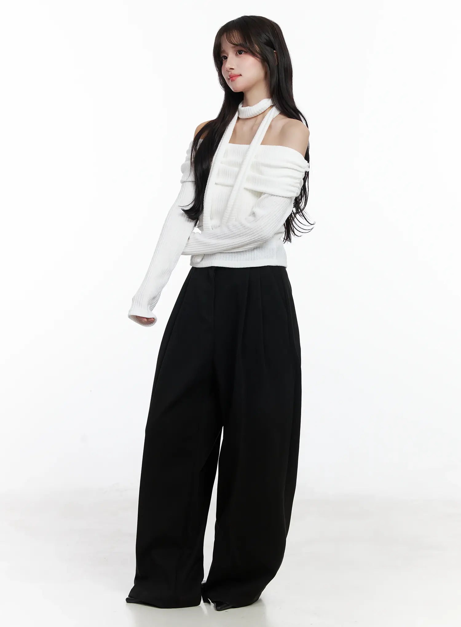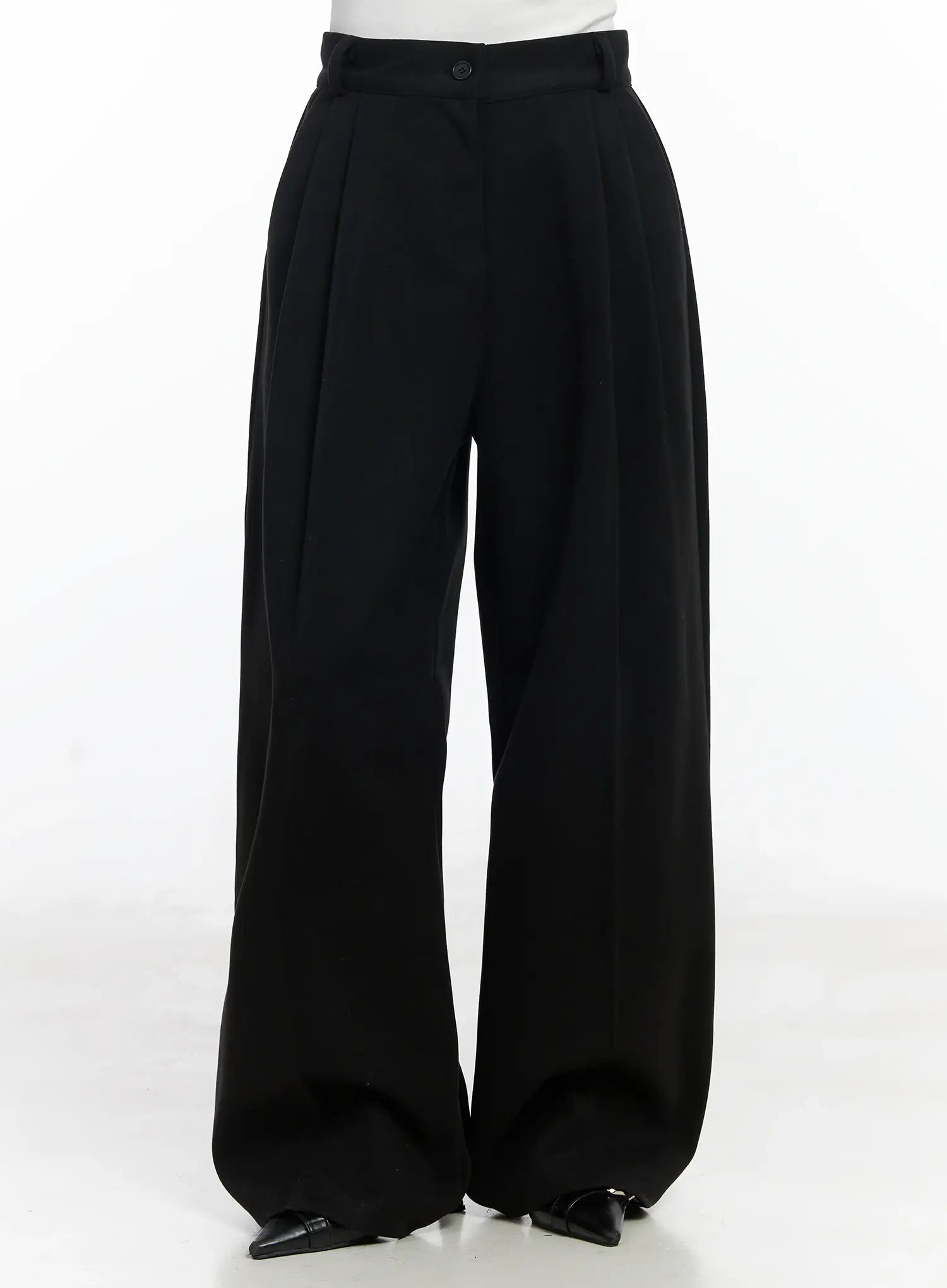 Double-Pleated Wide Fleece-Lined Slacks IJ529