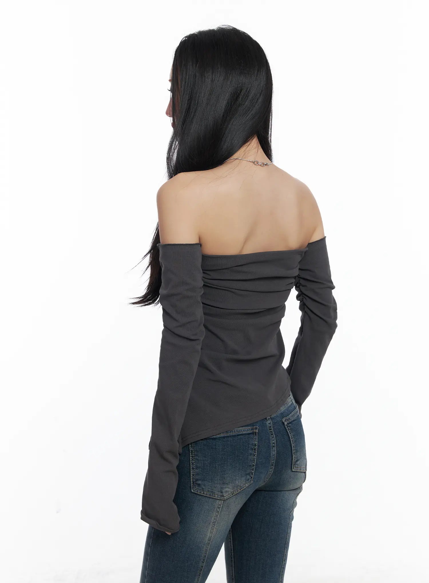 Elegant Off-Shoulder Shirred Top CJ515