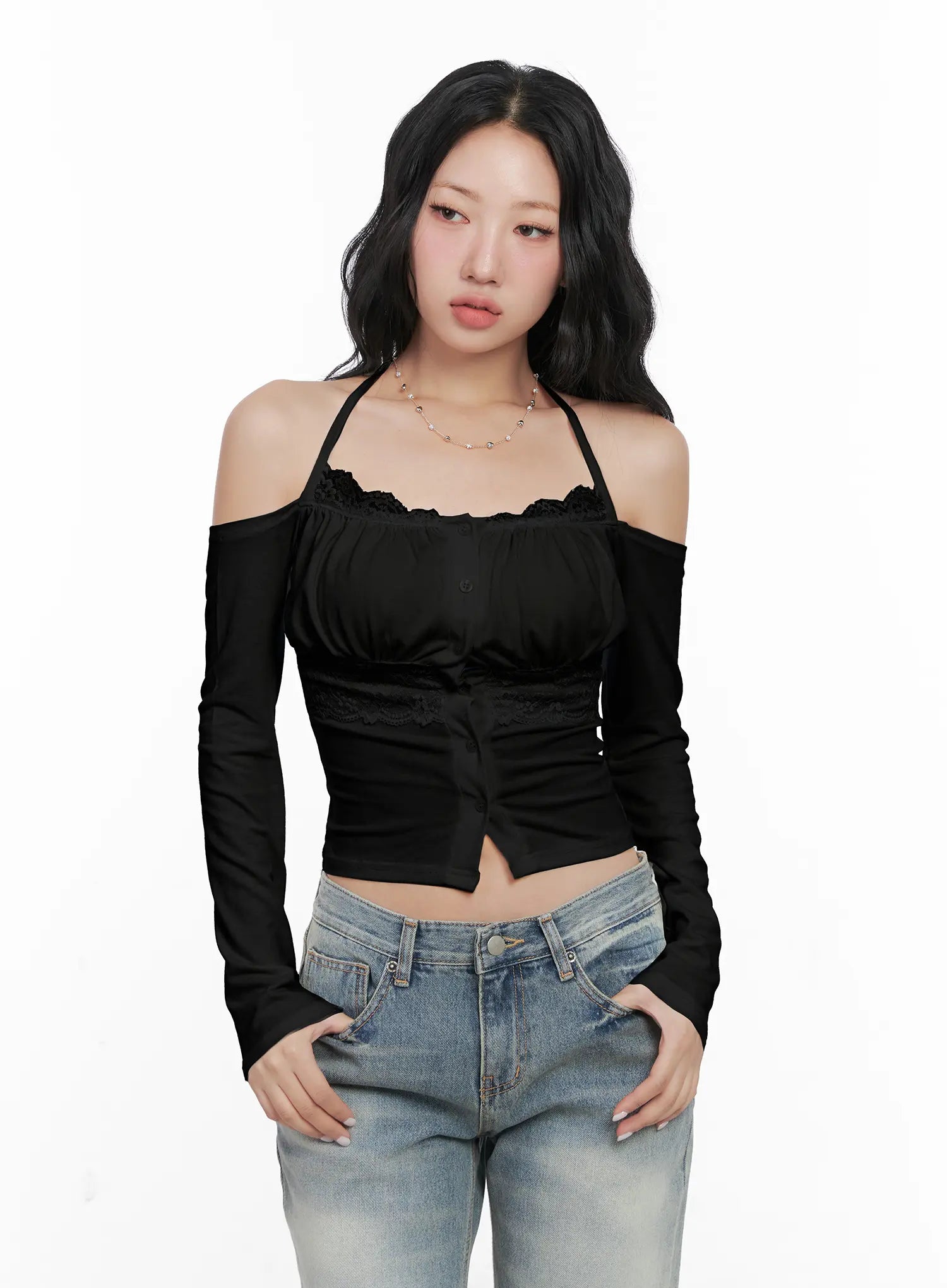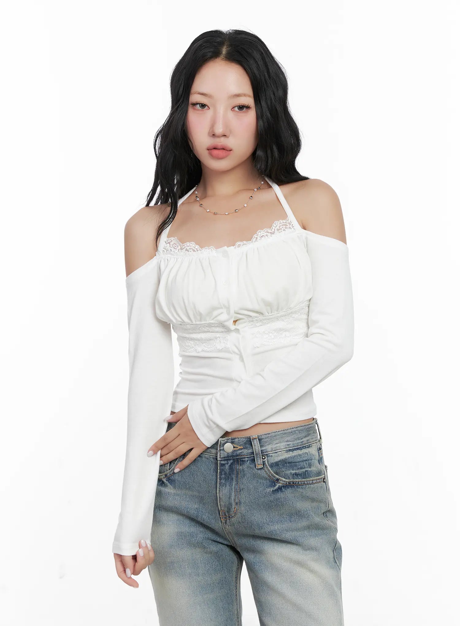 Elegant Ribbon Off-Shoulder Blouse CN514