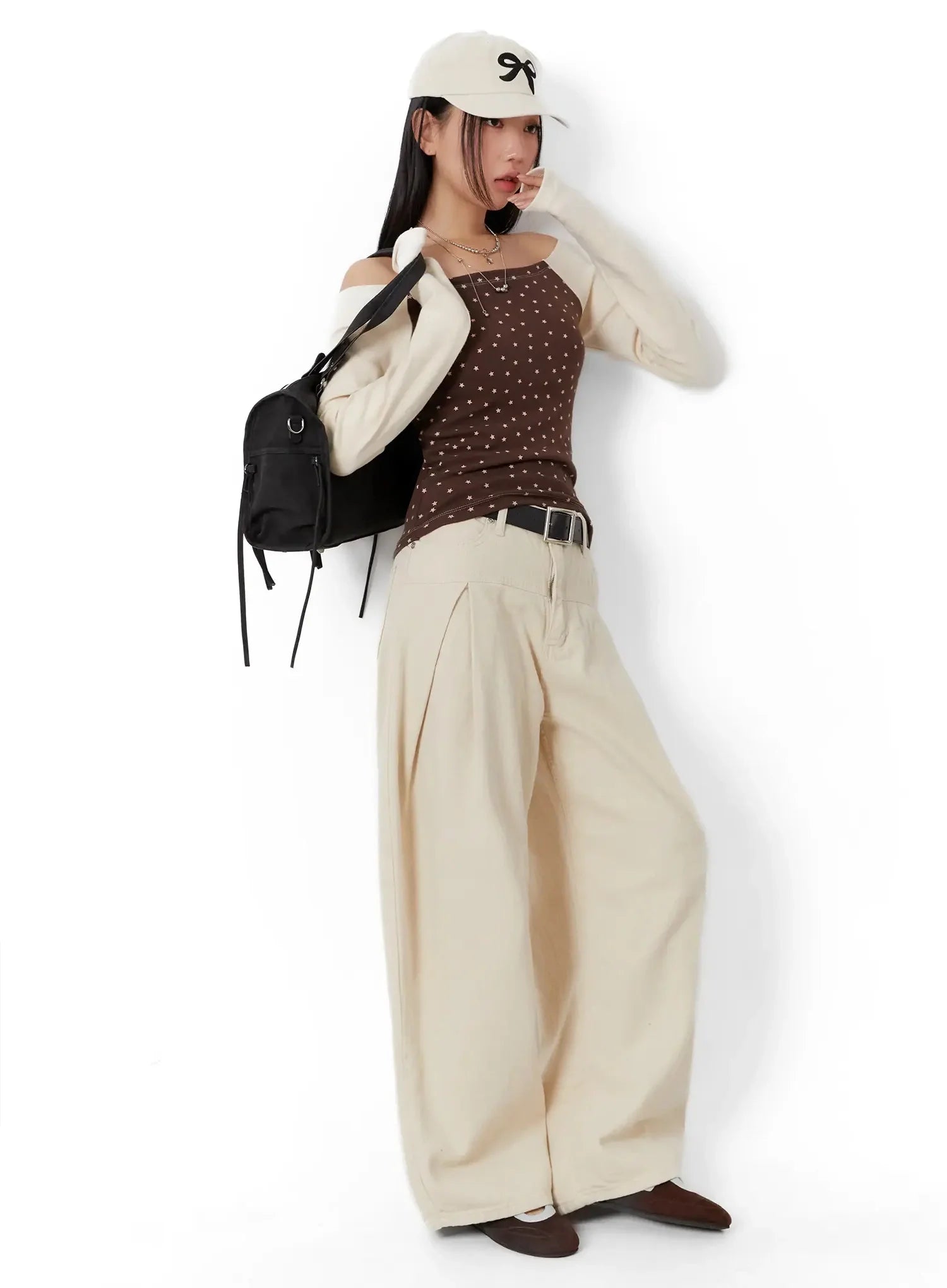 Model is wearing size One Size and the color Light beige.