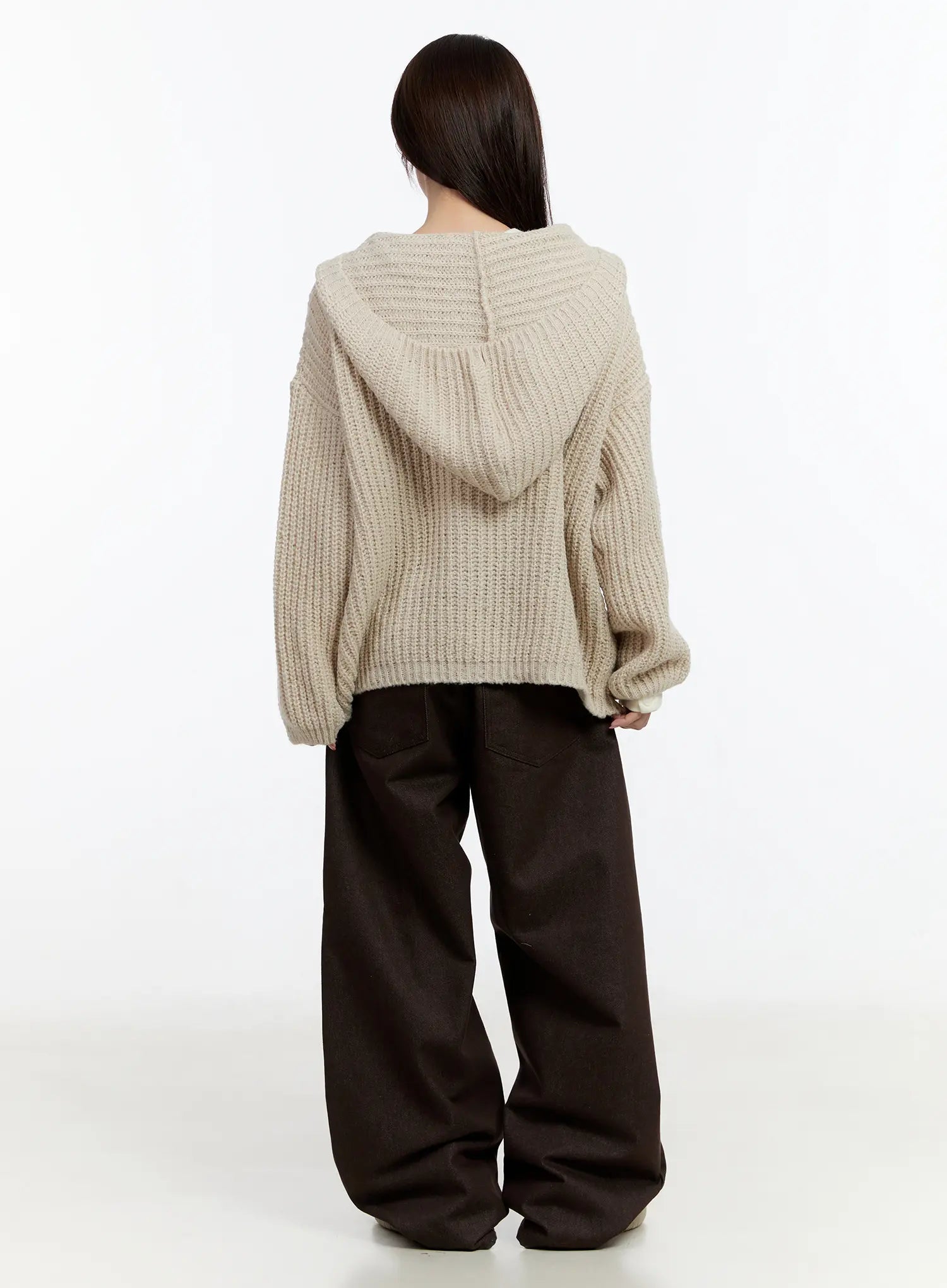 Model is wearing size M and the color Brown.