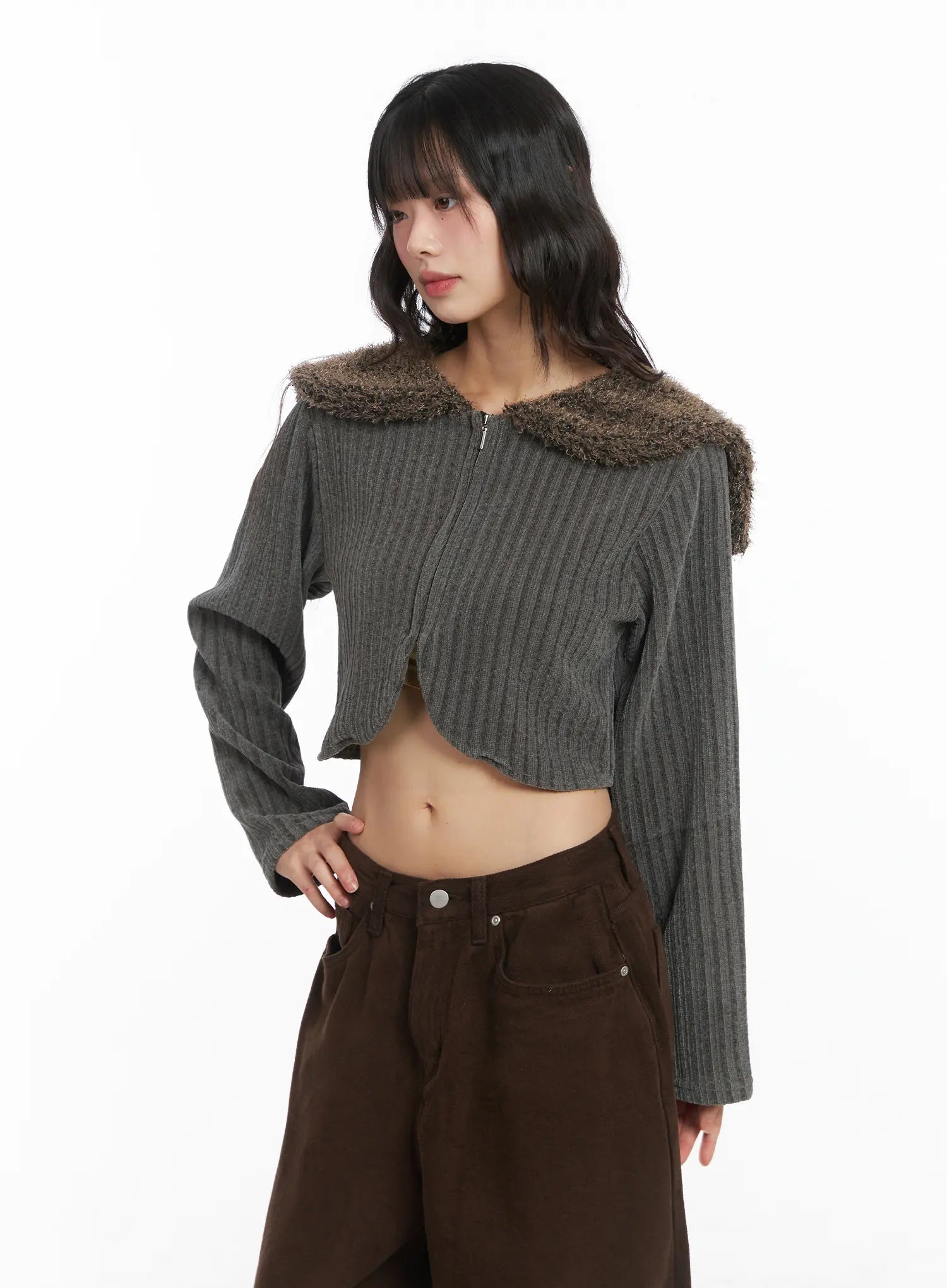 Faux Fur Cropped Cardigan CD531