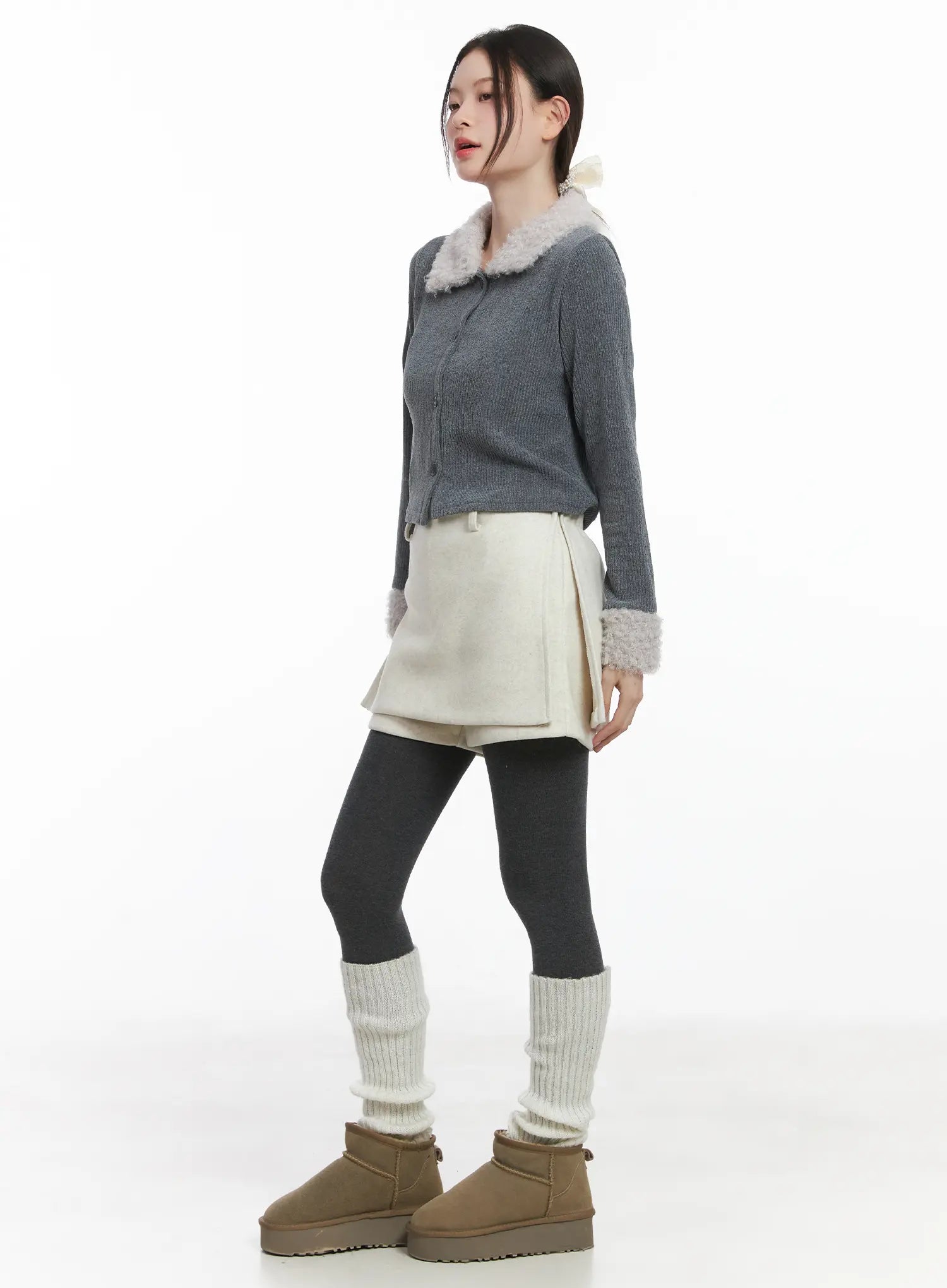 Faux Fur Trim Knit Cardigan CJ506