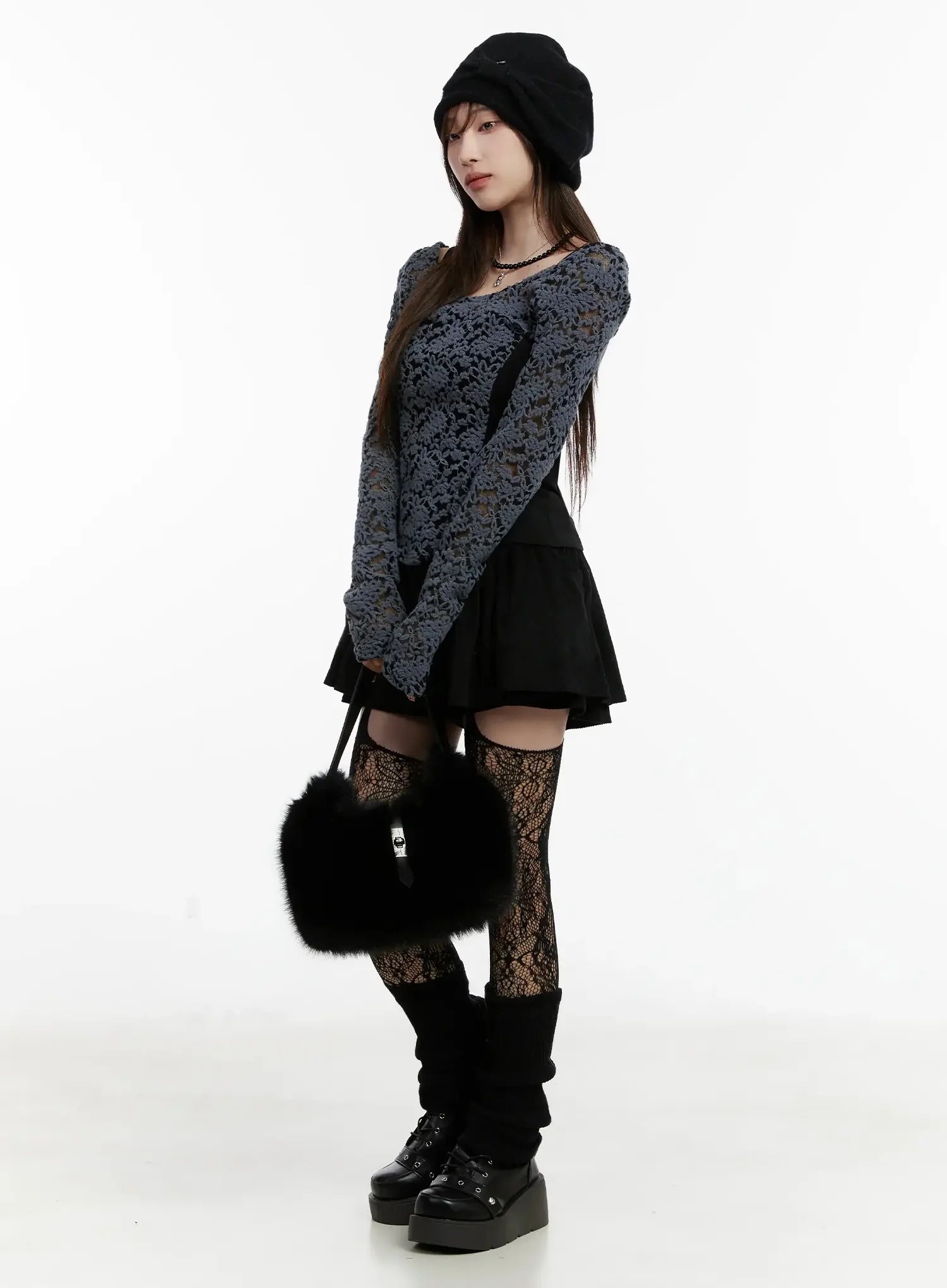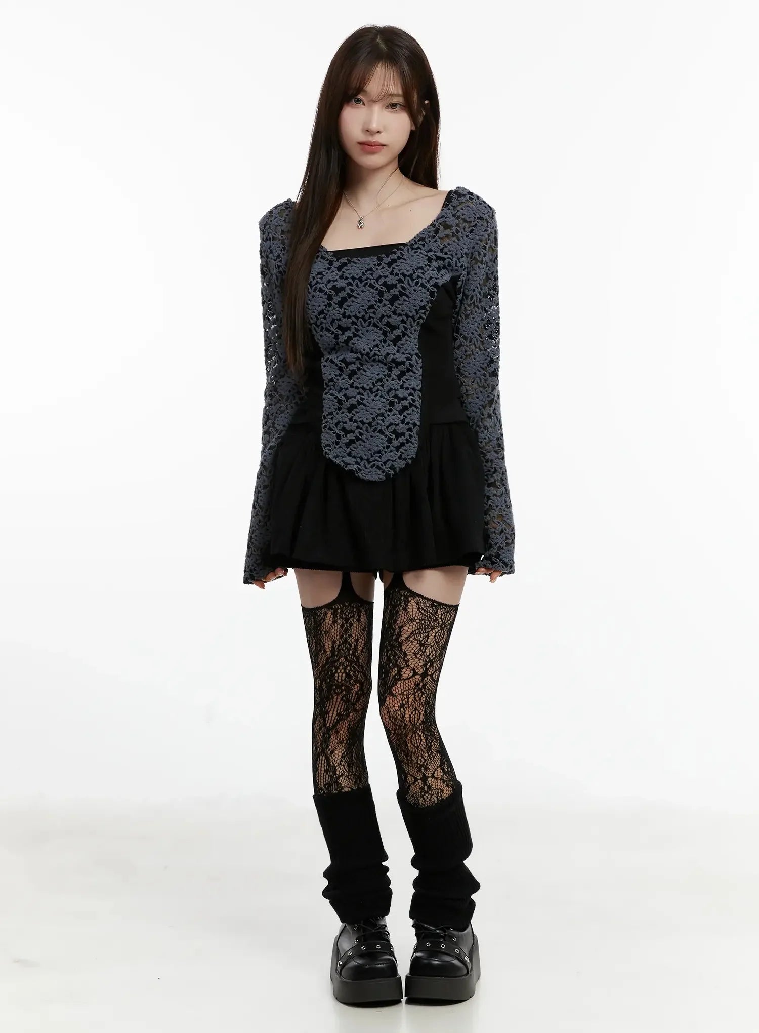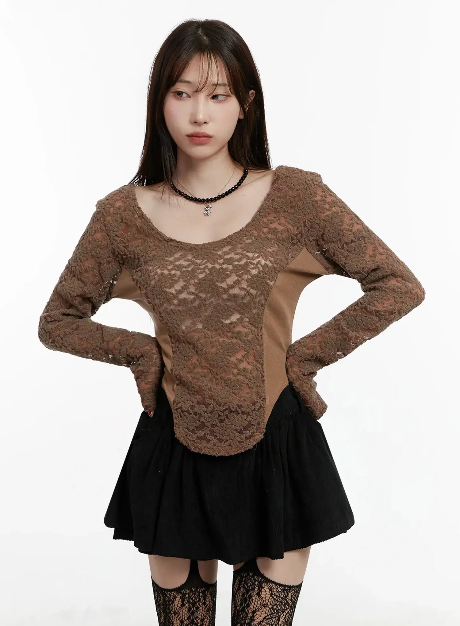 Fleece Lace Long Sleeve Top IJ521