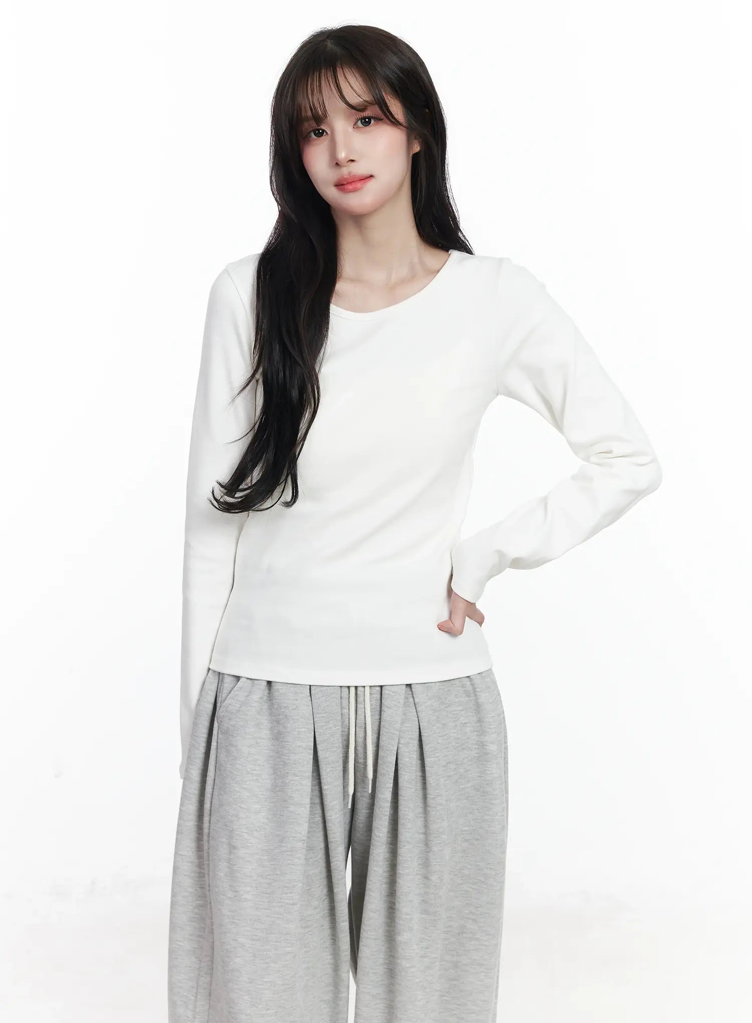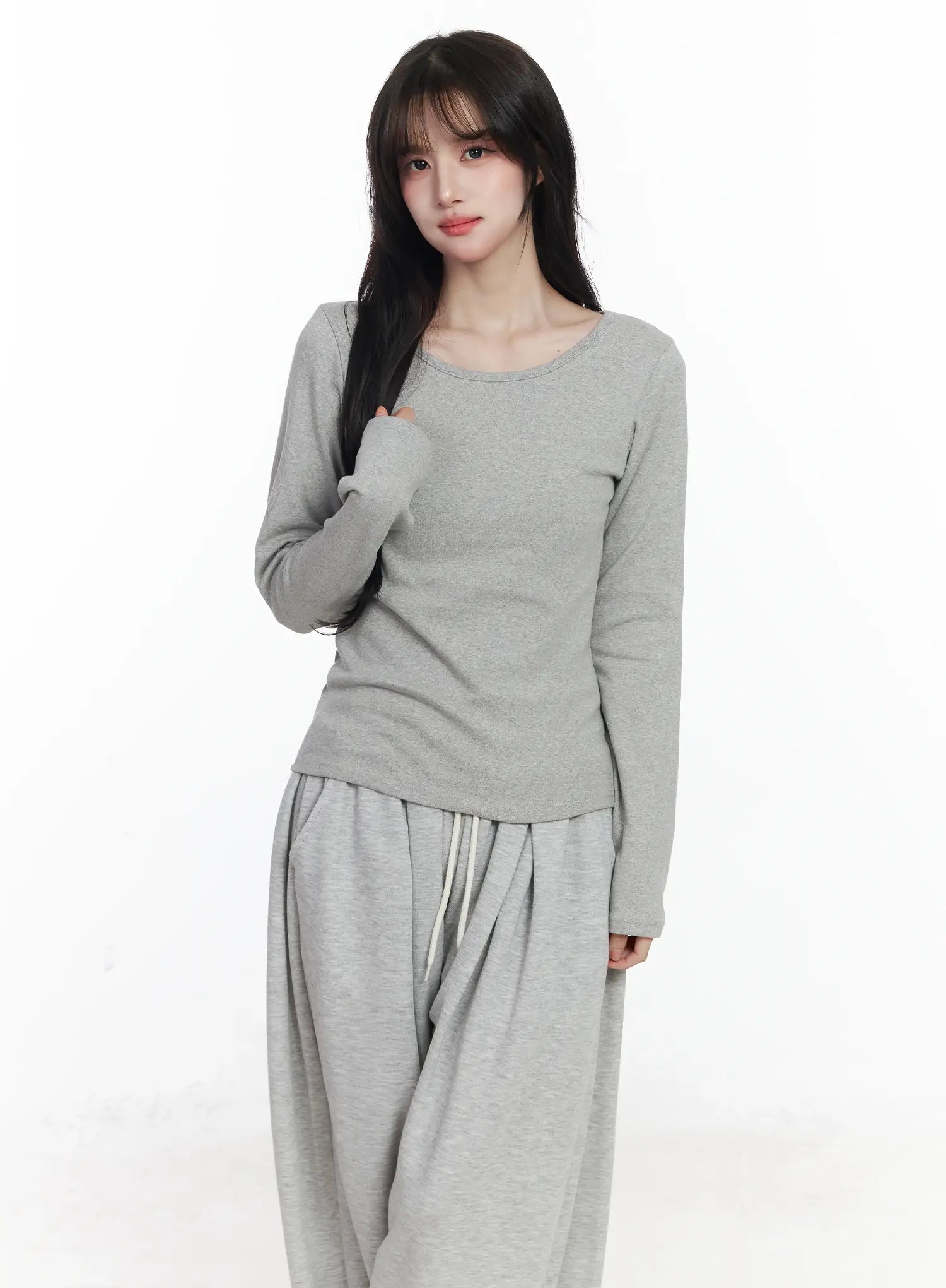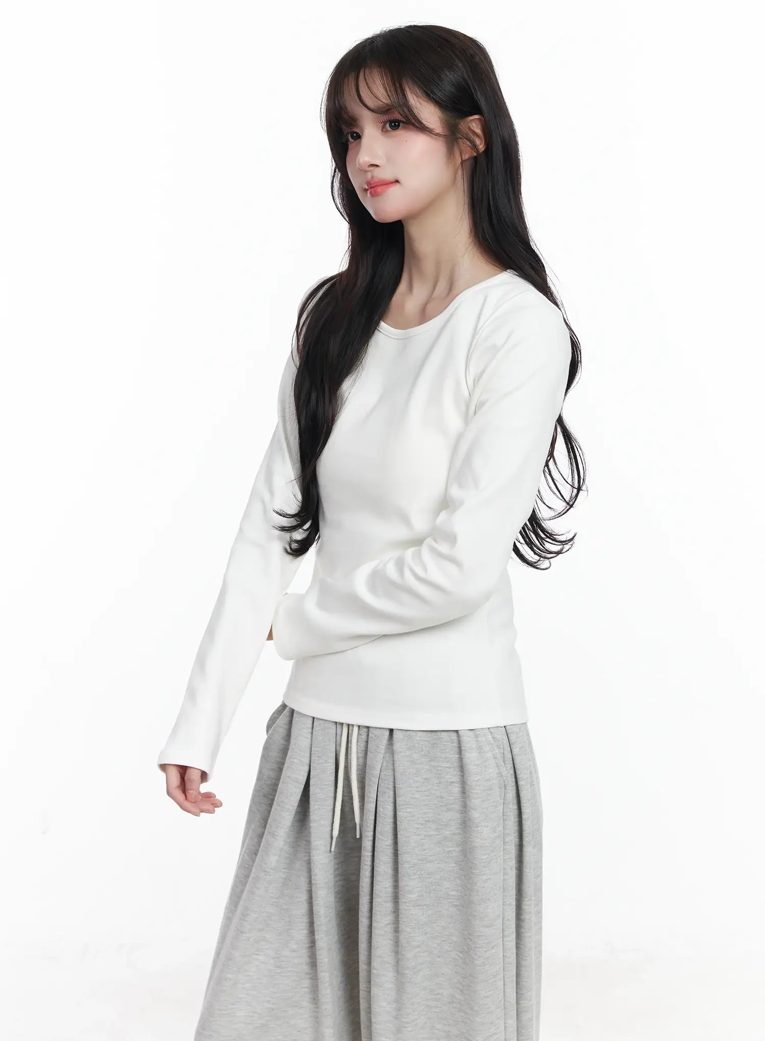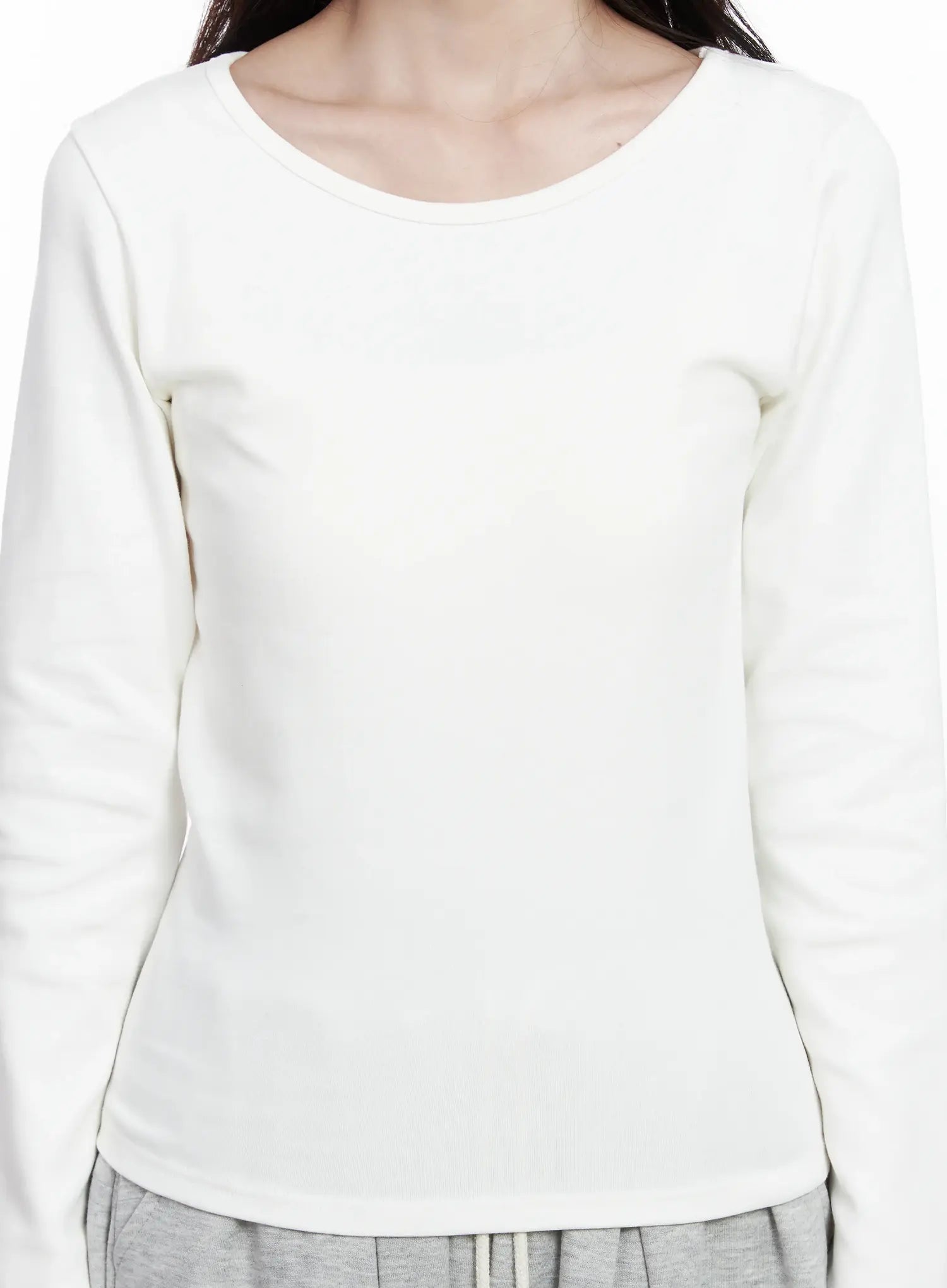 Fleece-Lined Round Neck Long Sleeve IJ529