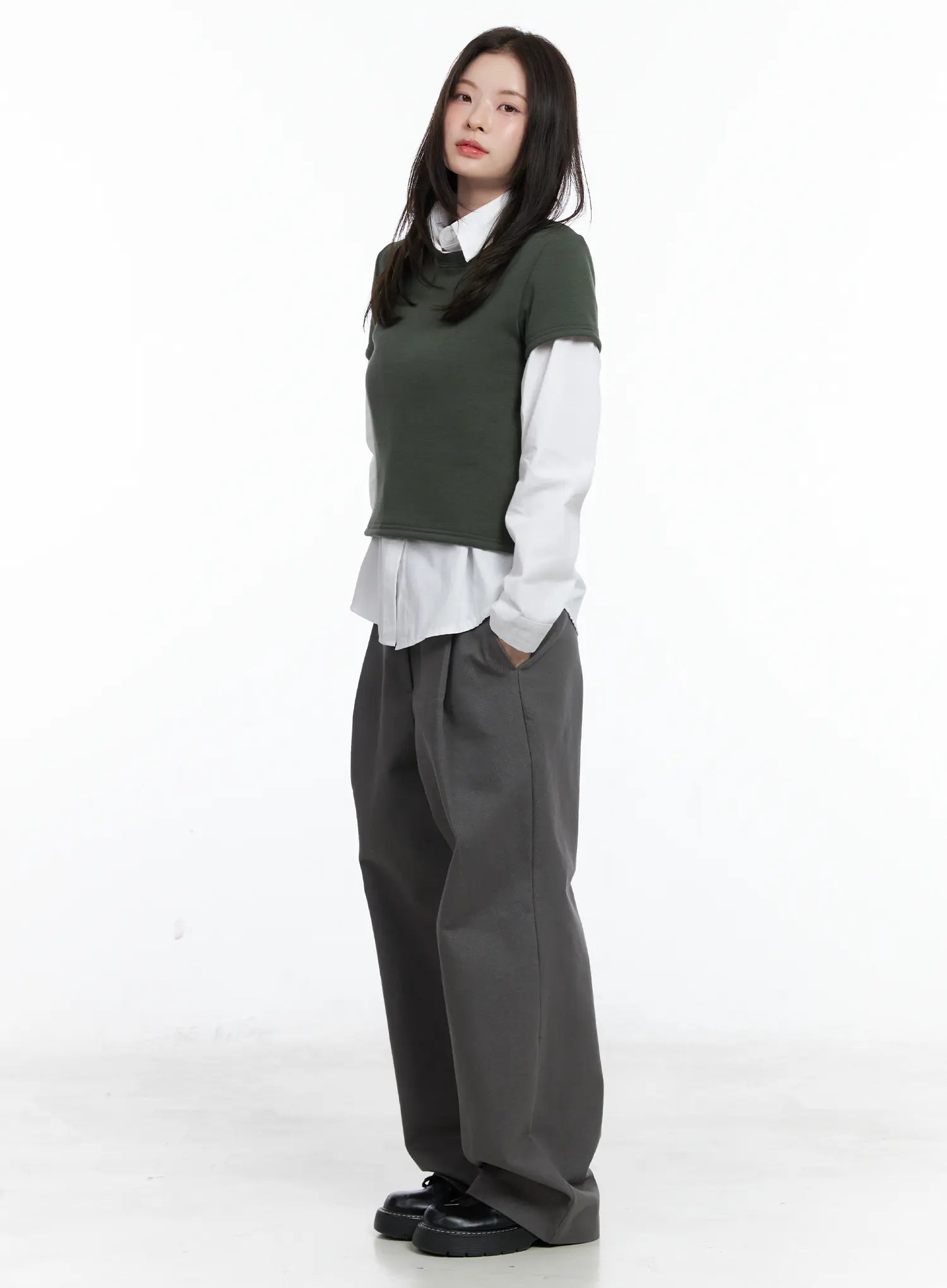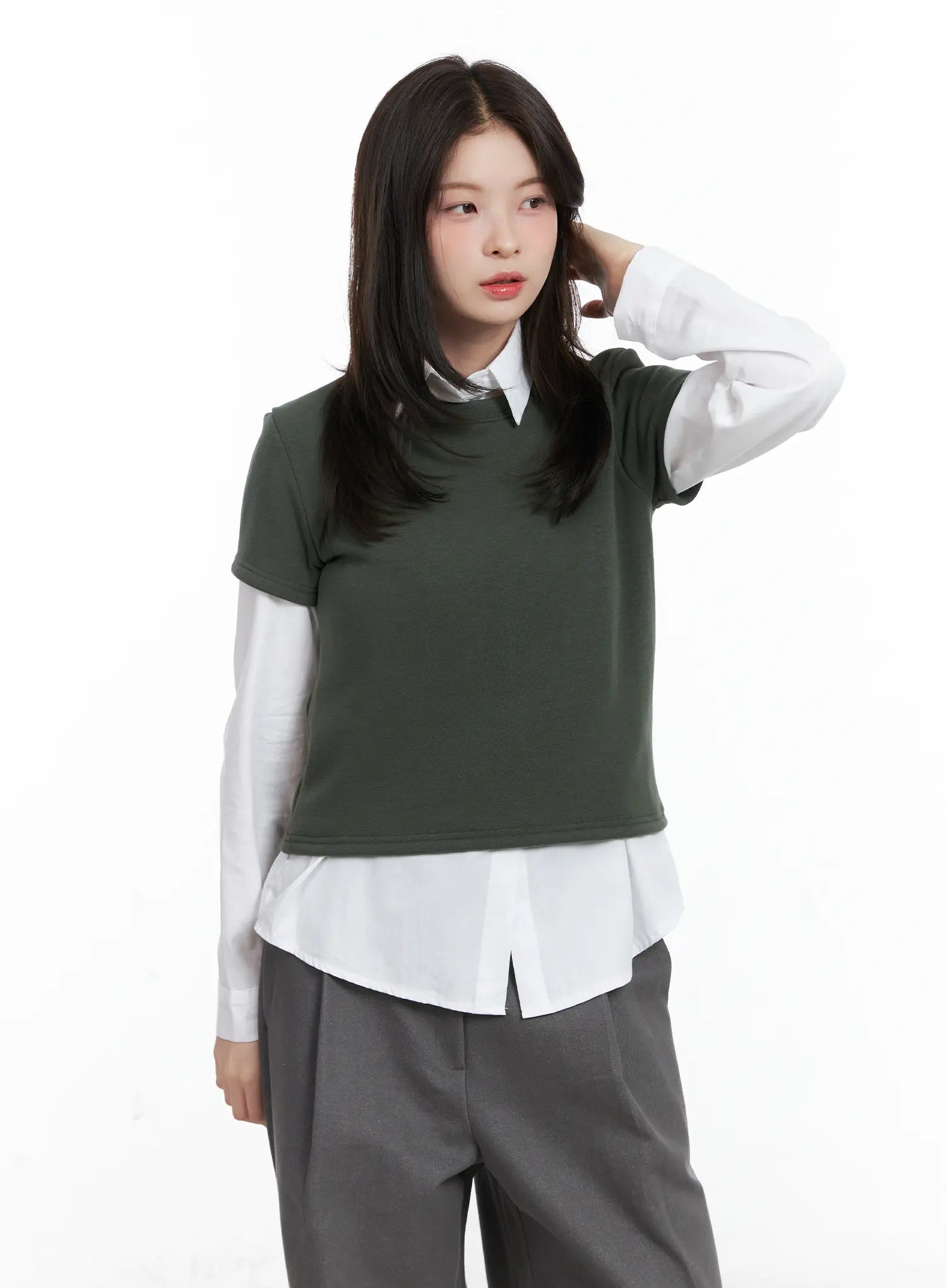 Model is wearing size S/M and the color Dark green.