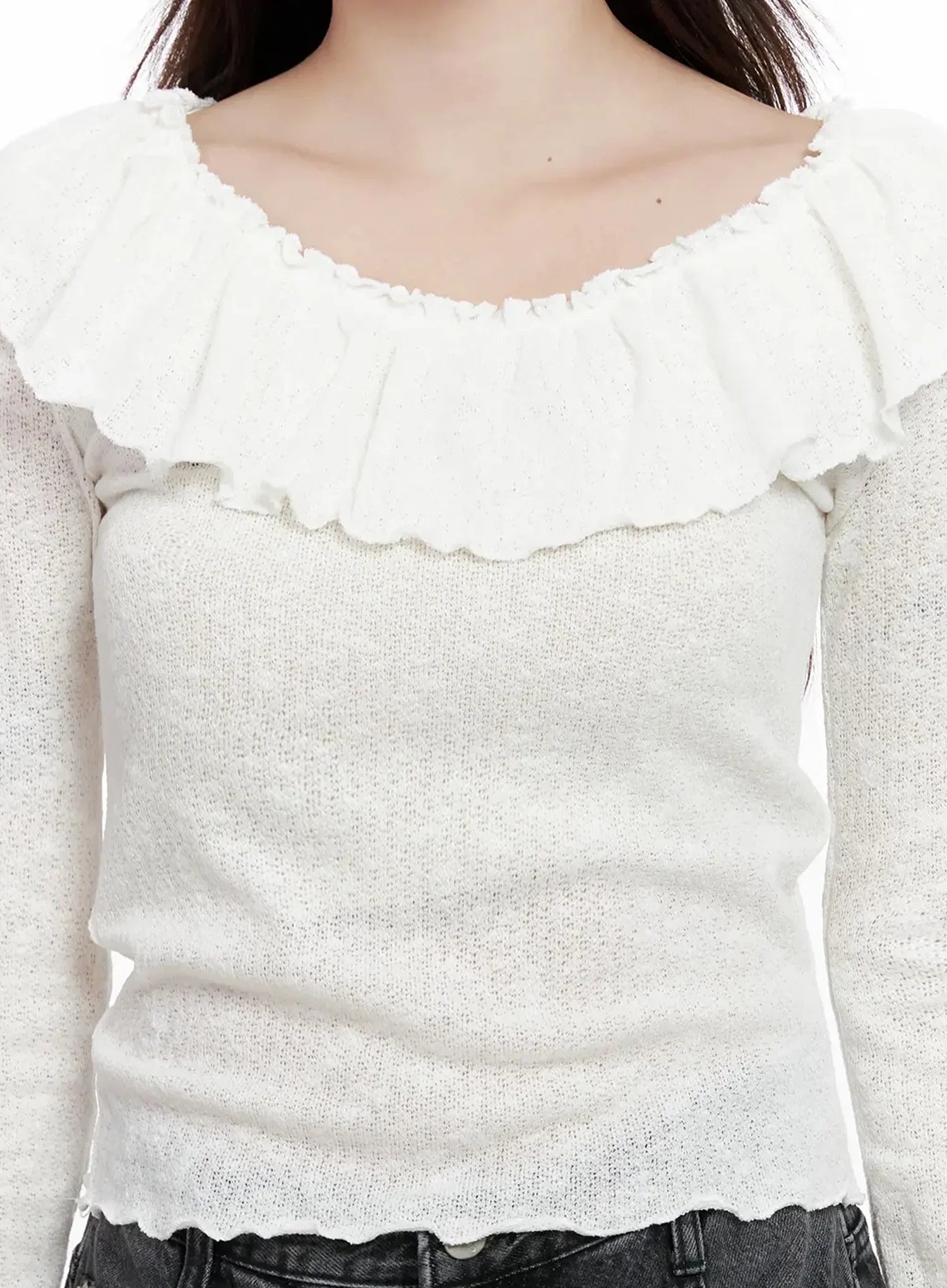 Frilled Off-Shoulder Long Sleeve Top IN514